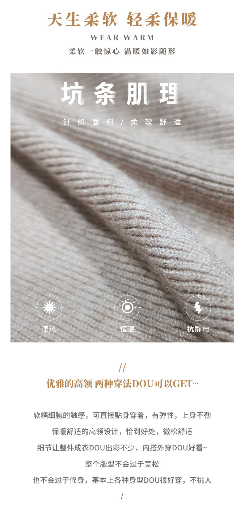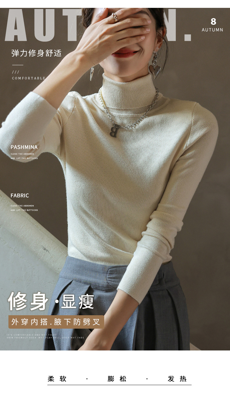 【买2件立减10元】堆堆领高领针织衫 柔滑亲肤 修身显瘦 高弹舒适 春秋冬三季可穿打底 衣橱常备穿搭单品