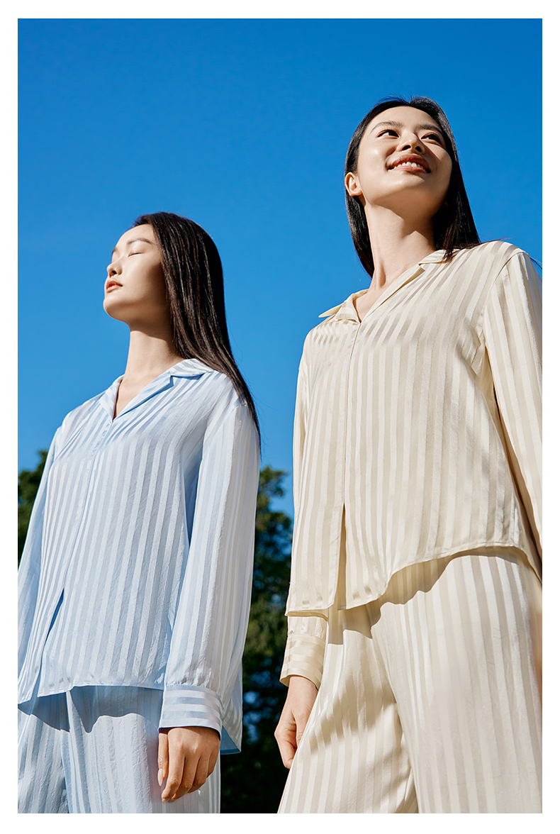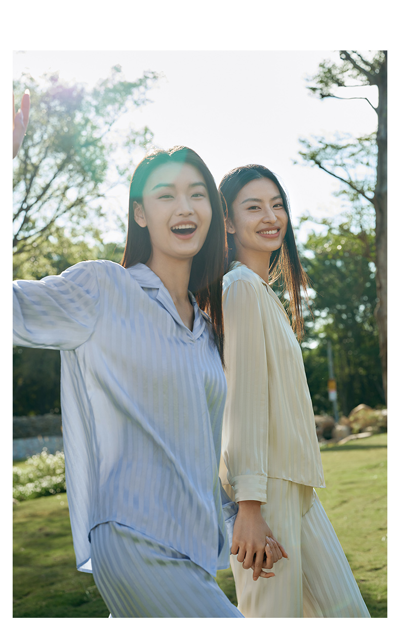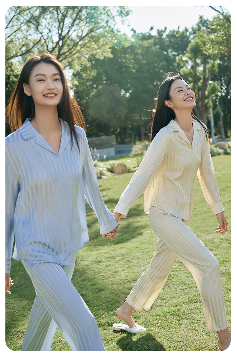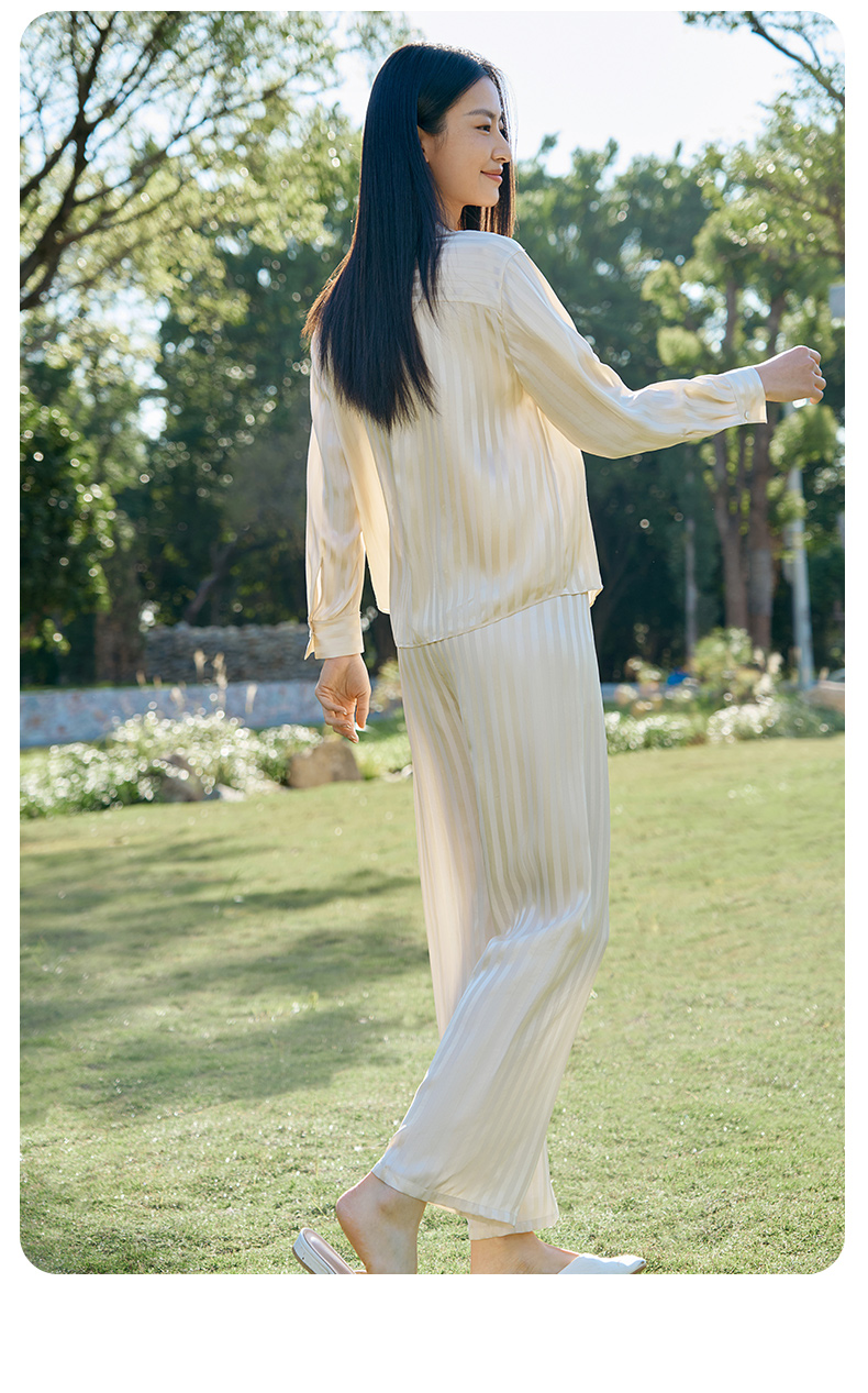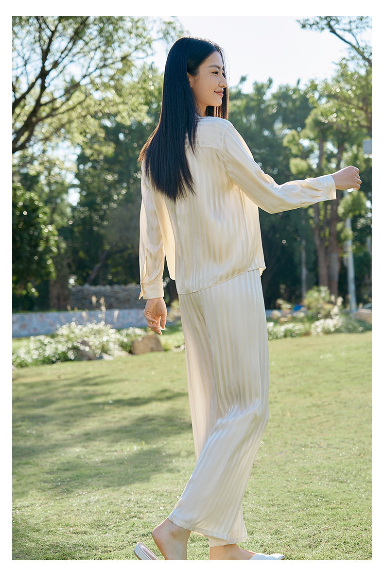 金三塔新品100%桑蚕丝桑波缎条纹真丝睡衣女宽松舒适衣裤套 YSFFA211
