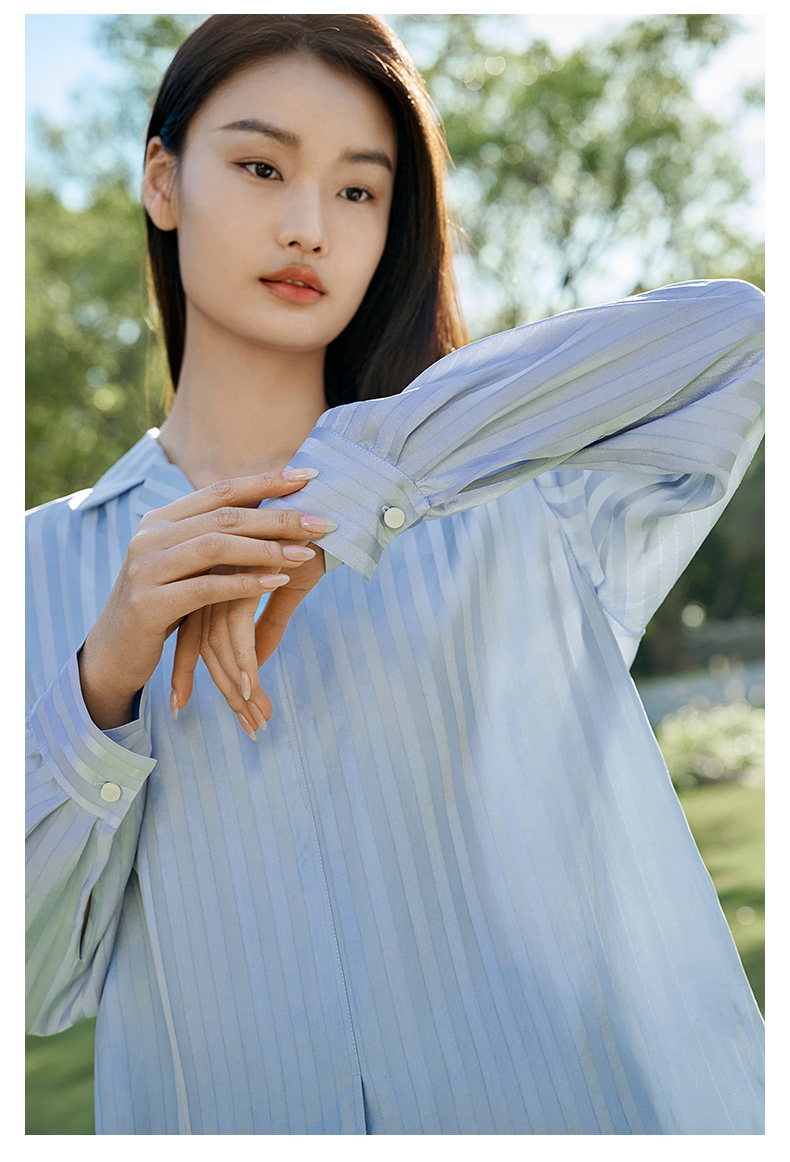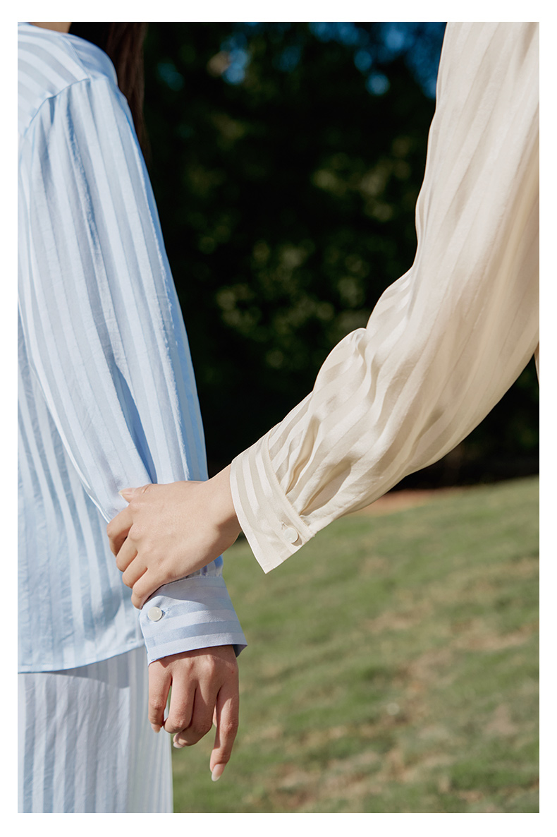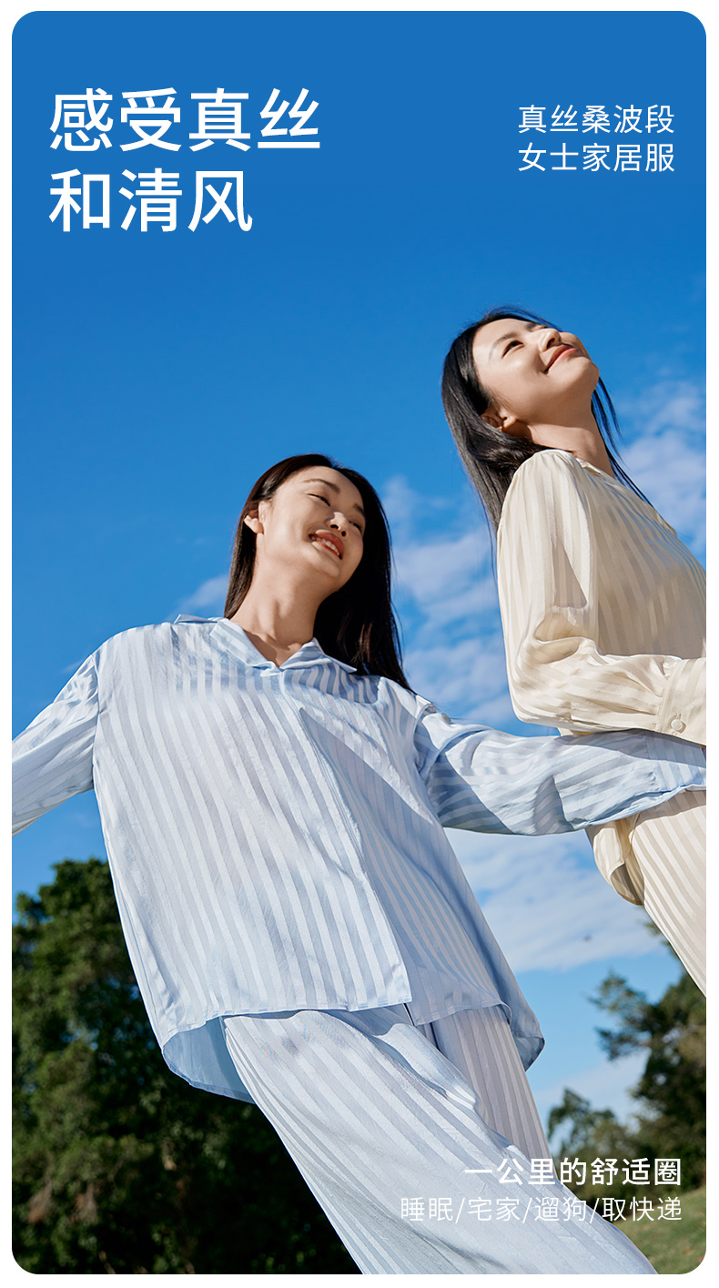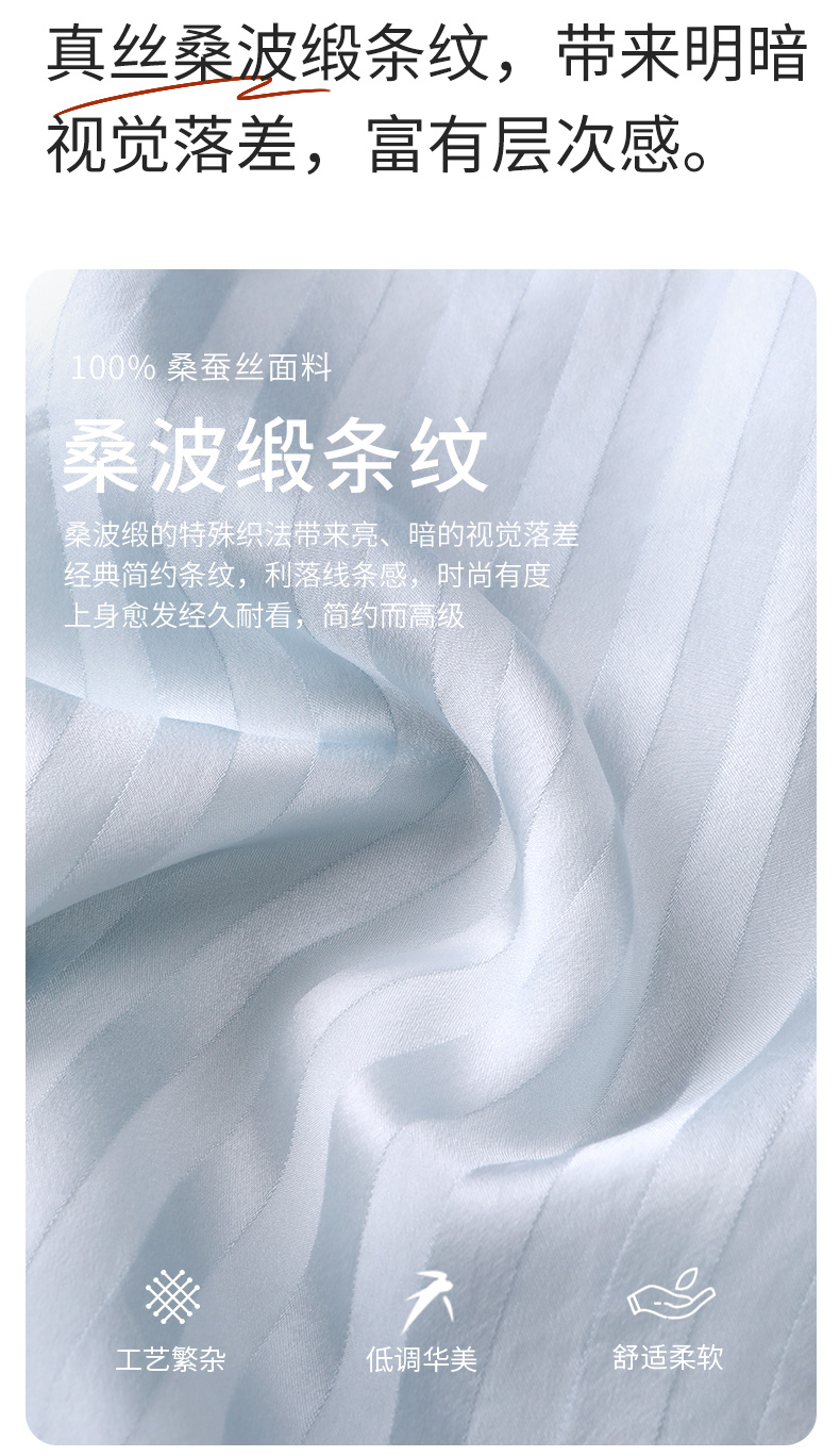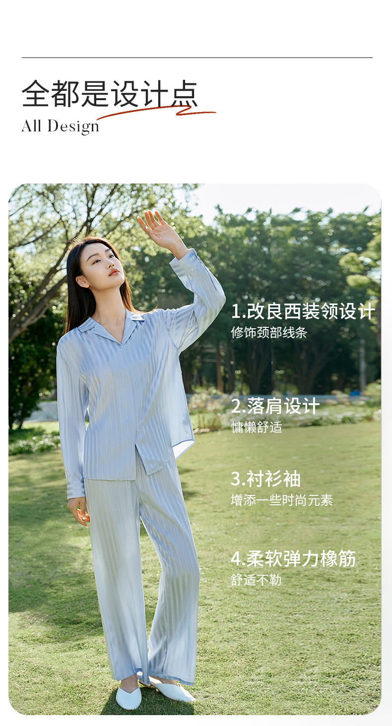 金三塔新品100%桑蚕丝桑波缎条纹真丝睡衣女宽松舒适衣裤套 YSFFA211