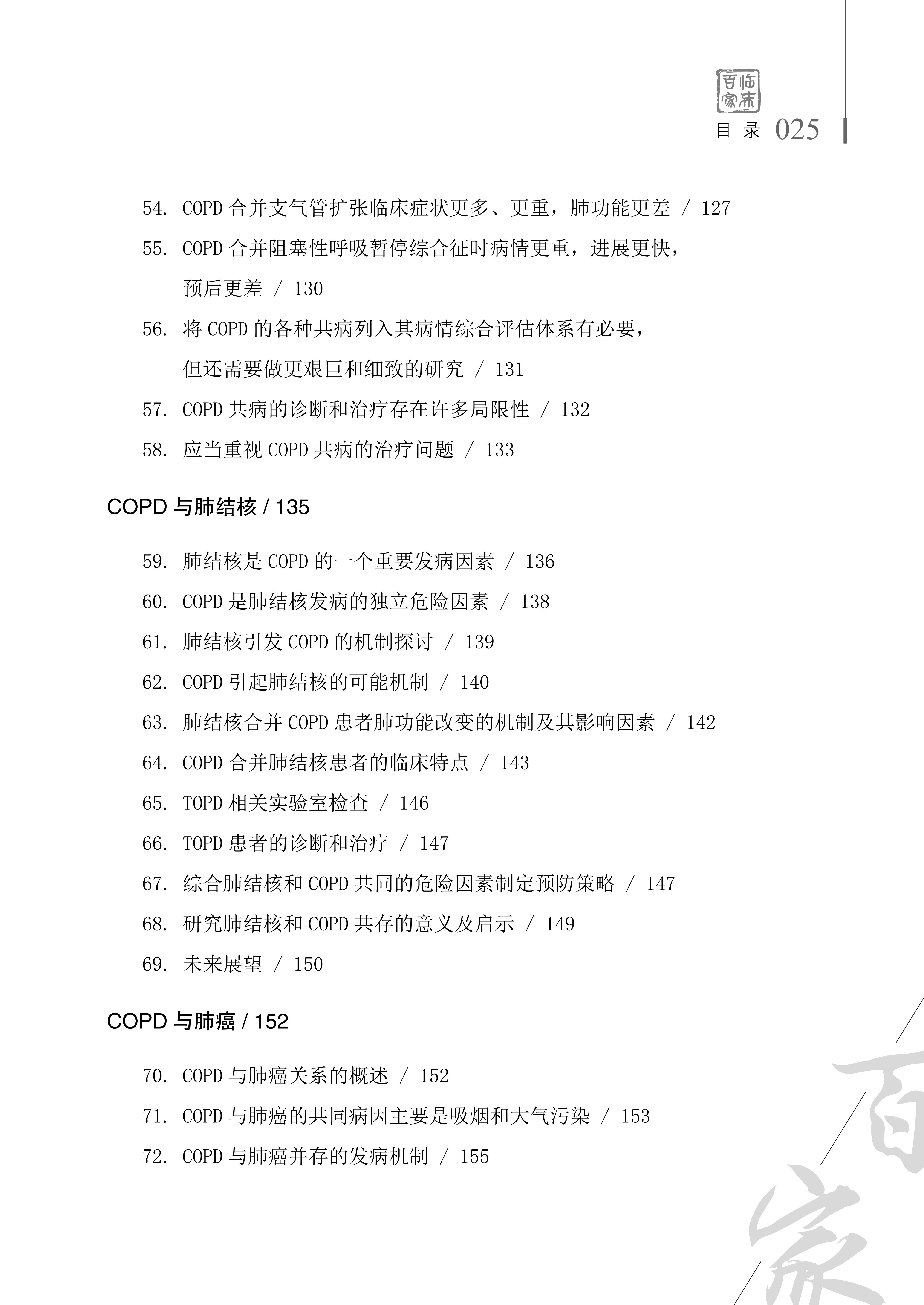 作者从自己的亲身经历出发,娓娓道来,从慢阻肺的治疗现状、病因、发病关键环节和具体机制,特别是卵圆孔未闭在COPD 患者发生缺氧中的地位及其机制,以及COPD与肠道菌群、诊疗标准、早期诊断率等基础研究方面着手,进而探讨了肺功能检查、保留比值受损肺功能、病情综合评估、稳定期COPD的治疗策略、共病,特别是慢阻肺与肺结核、肺癌的关系,合并肌少症、合并多种慢病合理用药、合理氧疗、高流量氧疗、切断迷走神经用于治疗COPD等,分析COVID-19 和COPD的相互影响,还有COPD的预后、患者教育与长期管理、中医及卫生经济学对慢阻肺诊断和治疗的影响,更是紧跟时代,探讨AI/ML在COPD 诊疗中的应用,学习《慢性阻塞性肺疾病诊治指南》2021年修订版,学习2023年版GOLD的若干思考。本书是作者多年致力于呼吸系统疾病研究的真实记录,更是体现着个人的独到见解,着实珍贵。