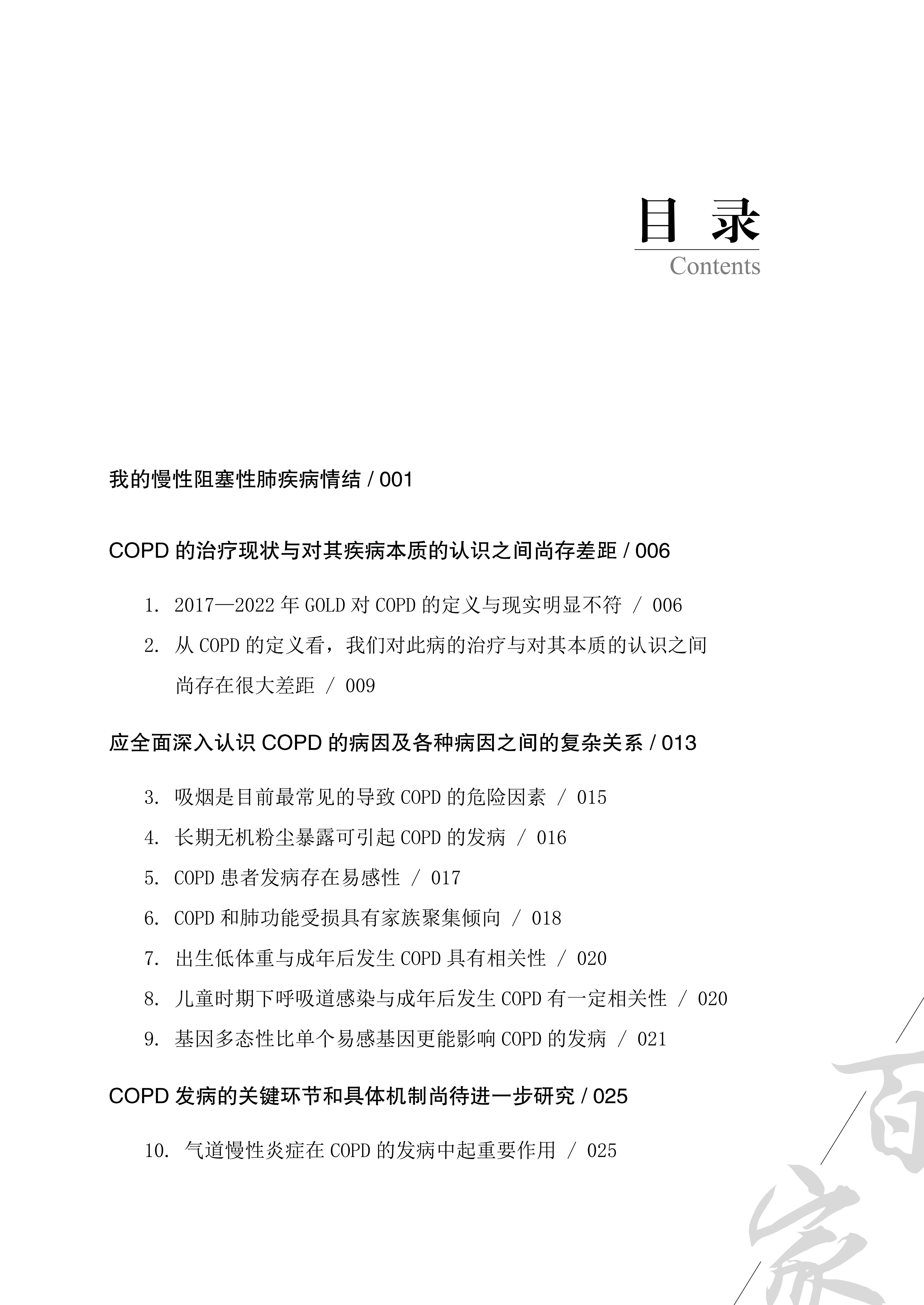 2018年初,《慢性阻塞性肺疾病何权瀛2016观点》荣获医师报“2017中国好书(自然科学类)”,此后何权瀛教授又出版了《慢性阻塞性肺疾病何权瀛2019观点》。迄今为止,COPD研究随着2019—2023版GOLD与指南的发布而产生了诸多新的变化。2023年初,作者在紧跟GOLD和国内指南之后,完成了对最新版指南的总结,《慢性阻塞性肺疾病何权瀛2023观点》应运而生。