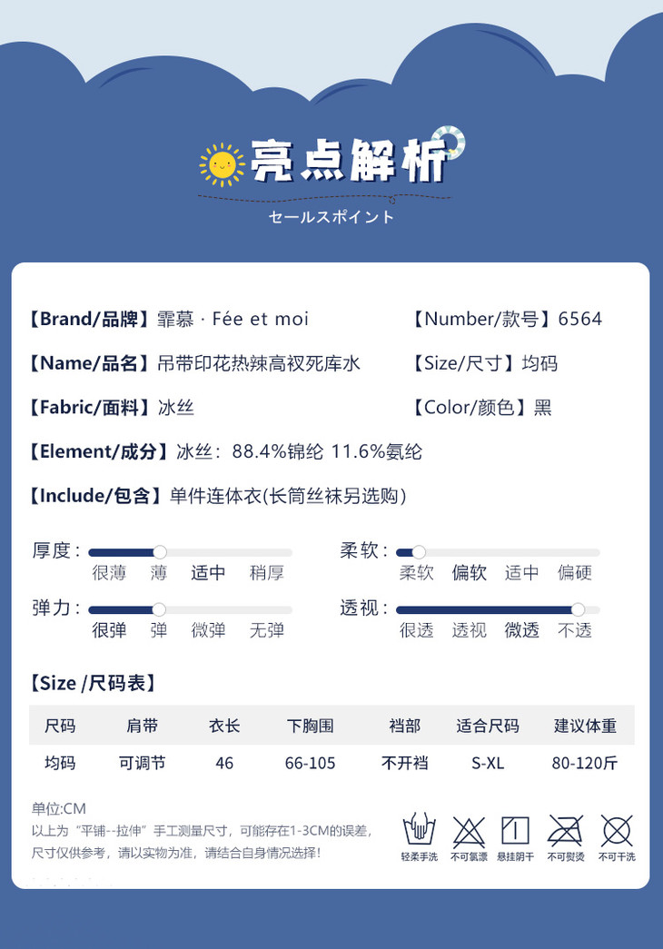 内衣新品 吊带印花热辣高衩死库水 号6564