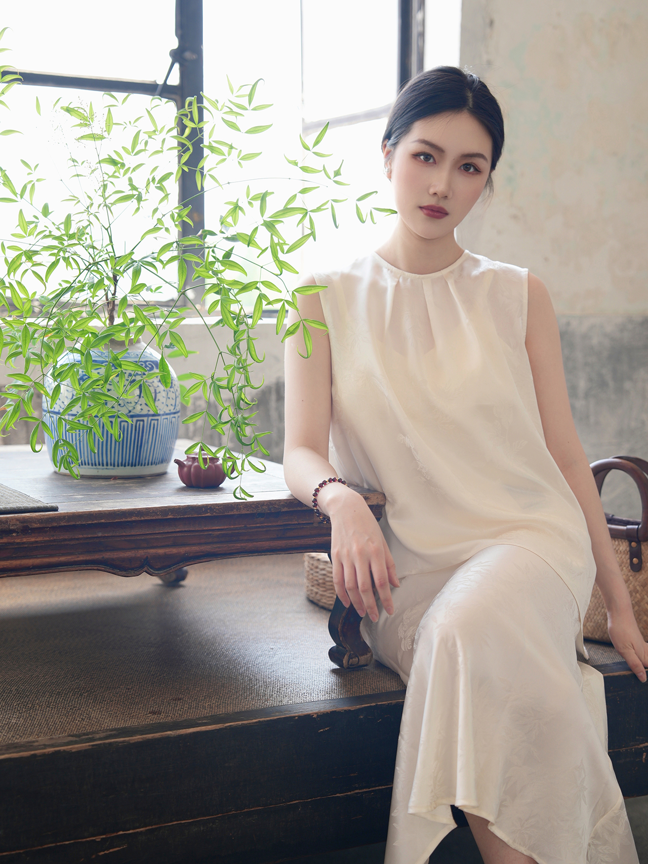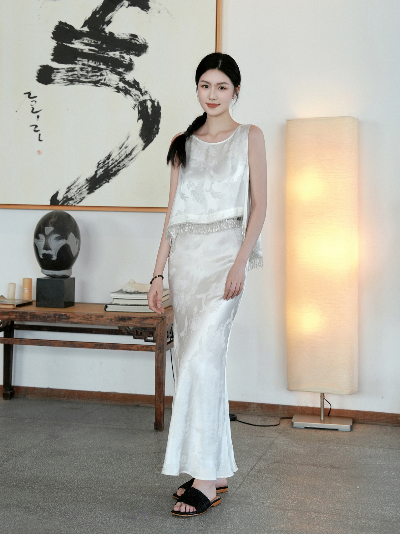 盛唐牡丹| 散花纹真丝提花斜裁背心