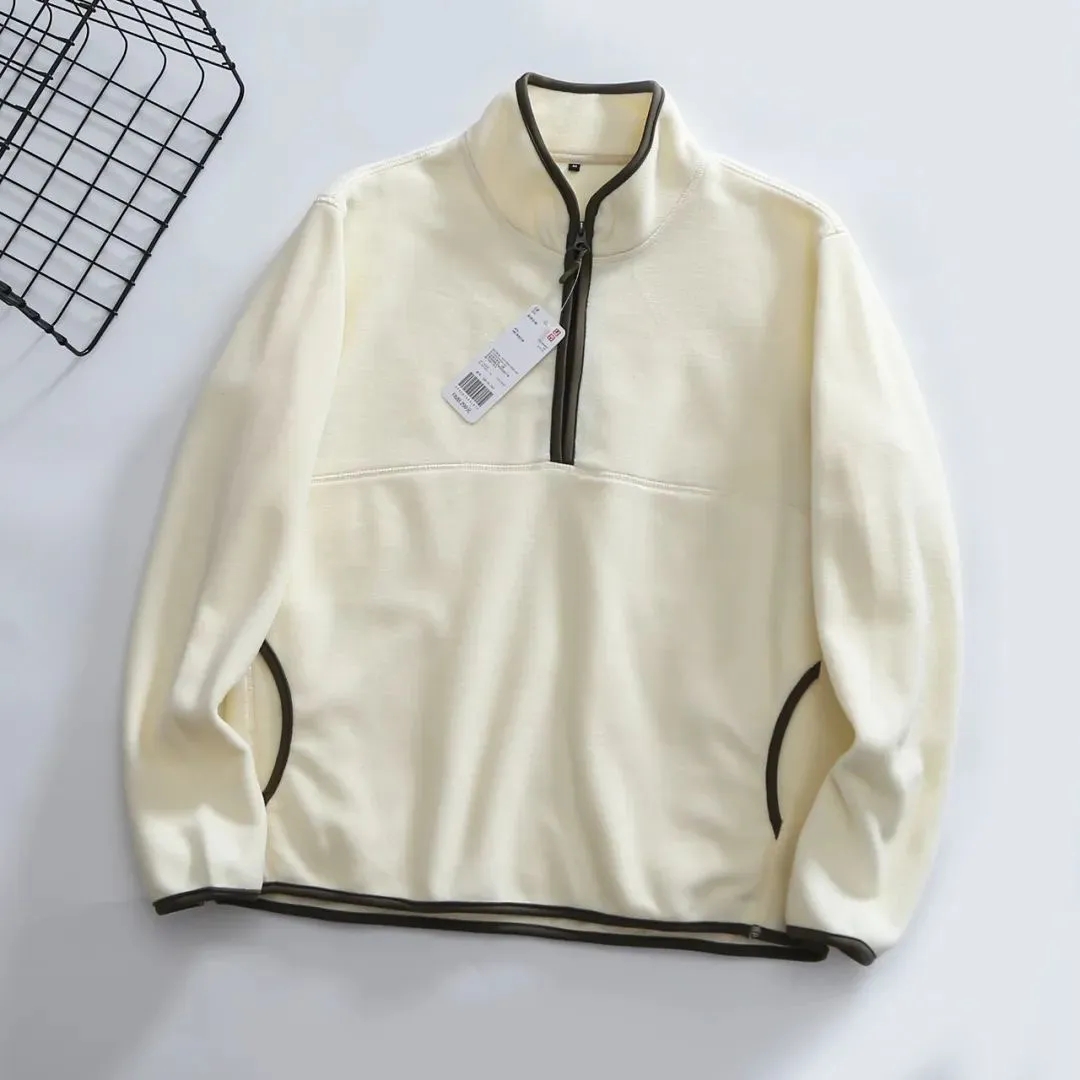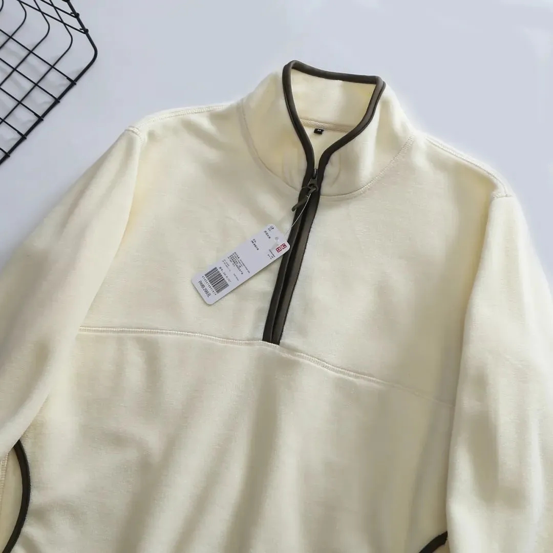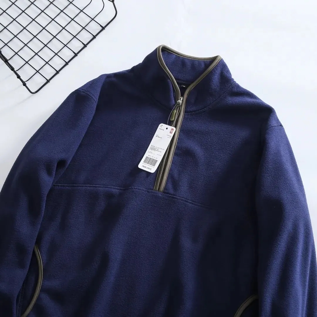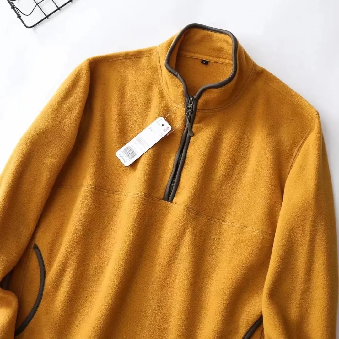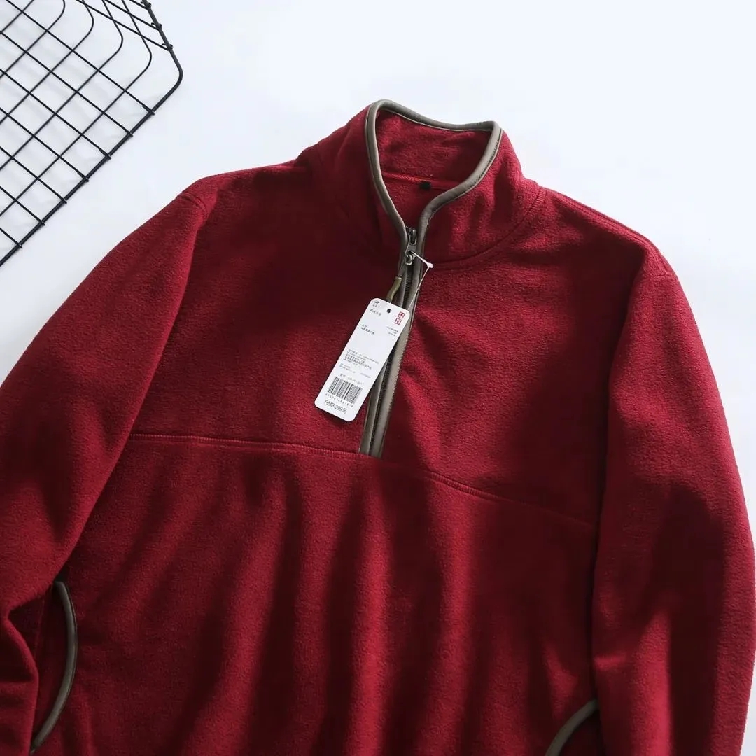 通过将单纱线更换双纱加捻线进行织造,减轻里侧起毛和掉毛现象.高弹快干运动拉链保暖(长袖 秋冬)男装卫衣,面料升级加绒加厚。