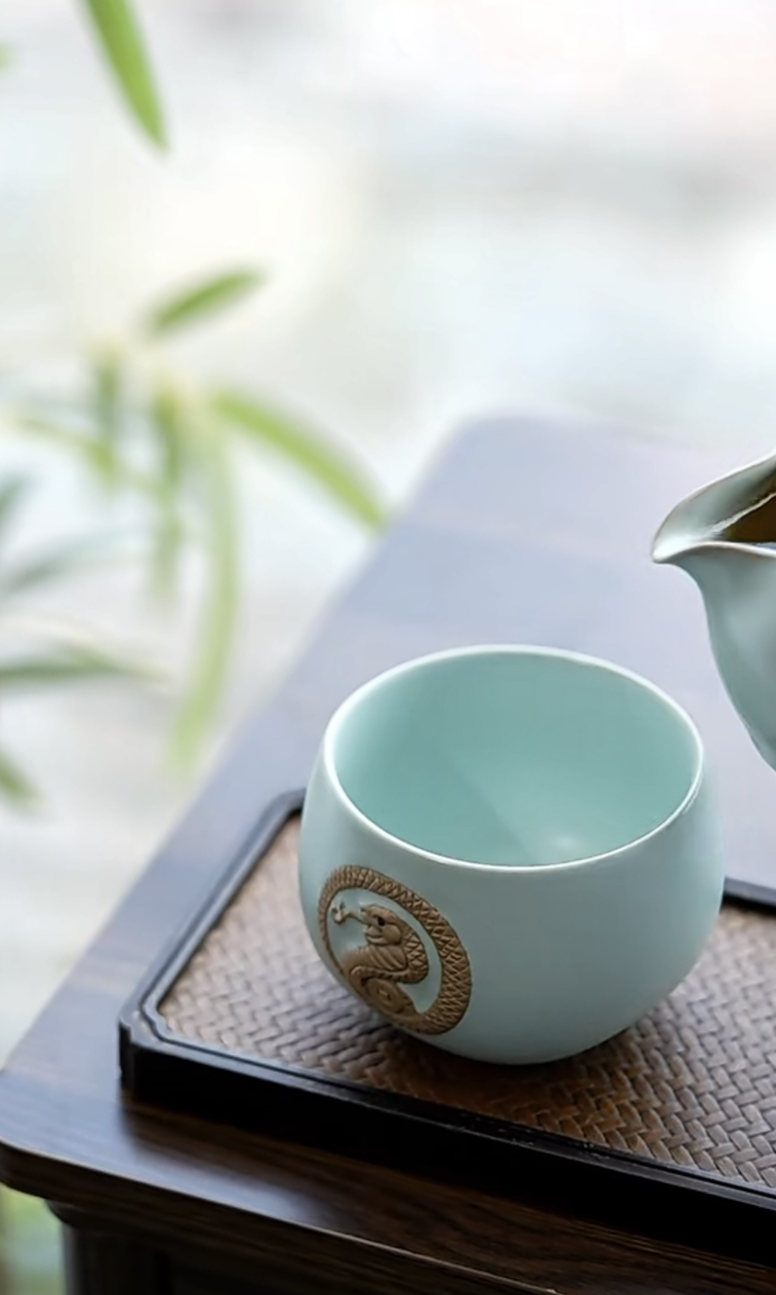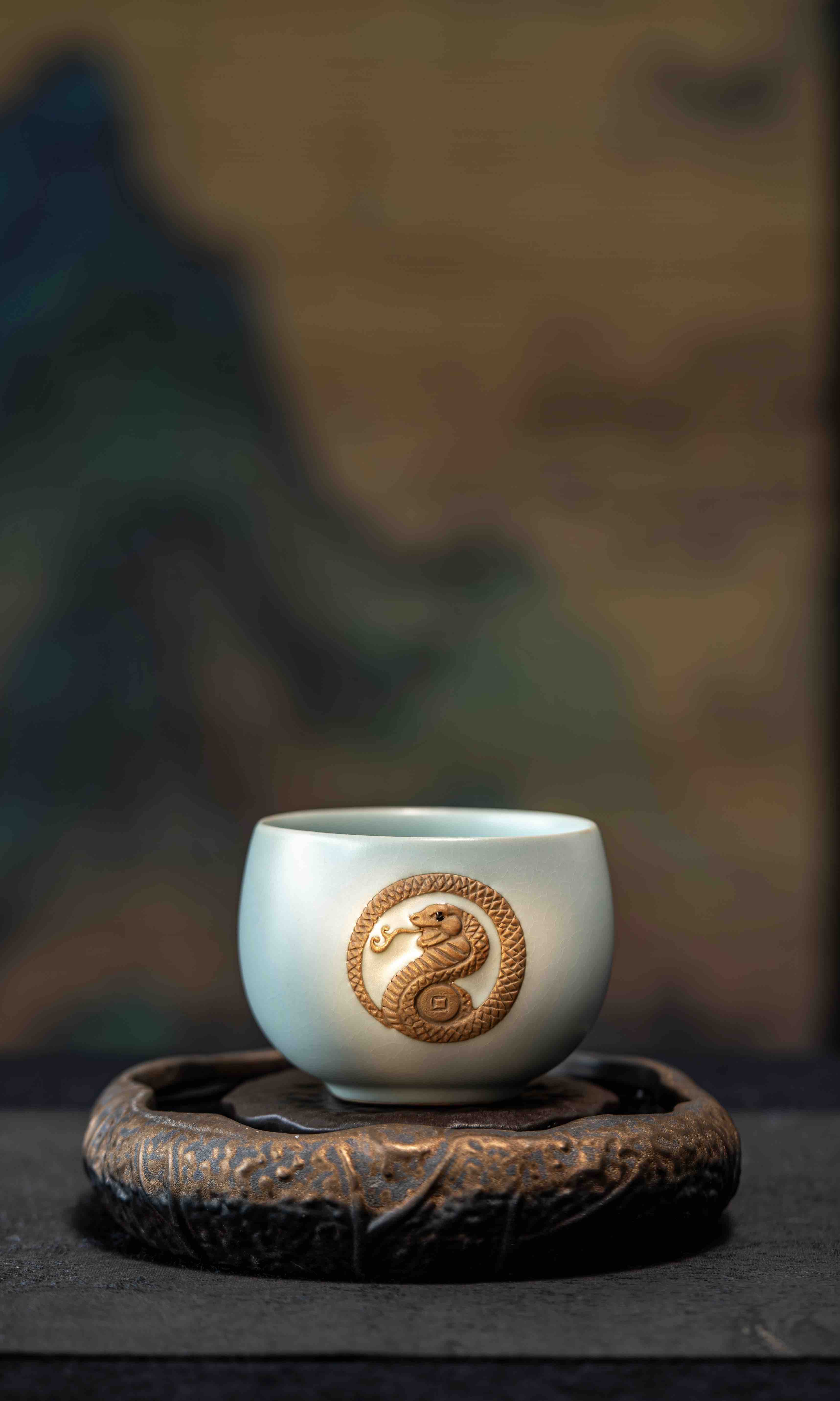 茶器|东道汝窑【灵蛇献瑞】蛇年生肖A杯(天青)