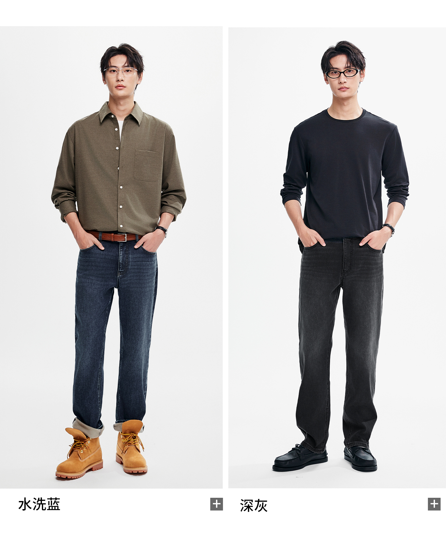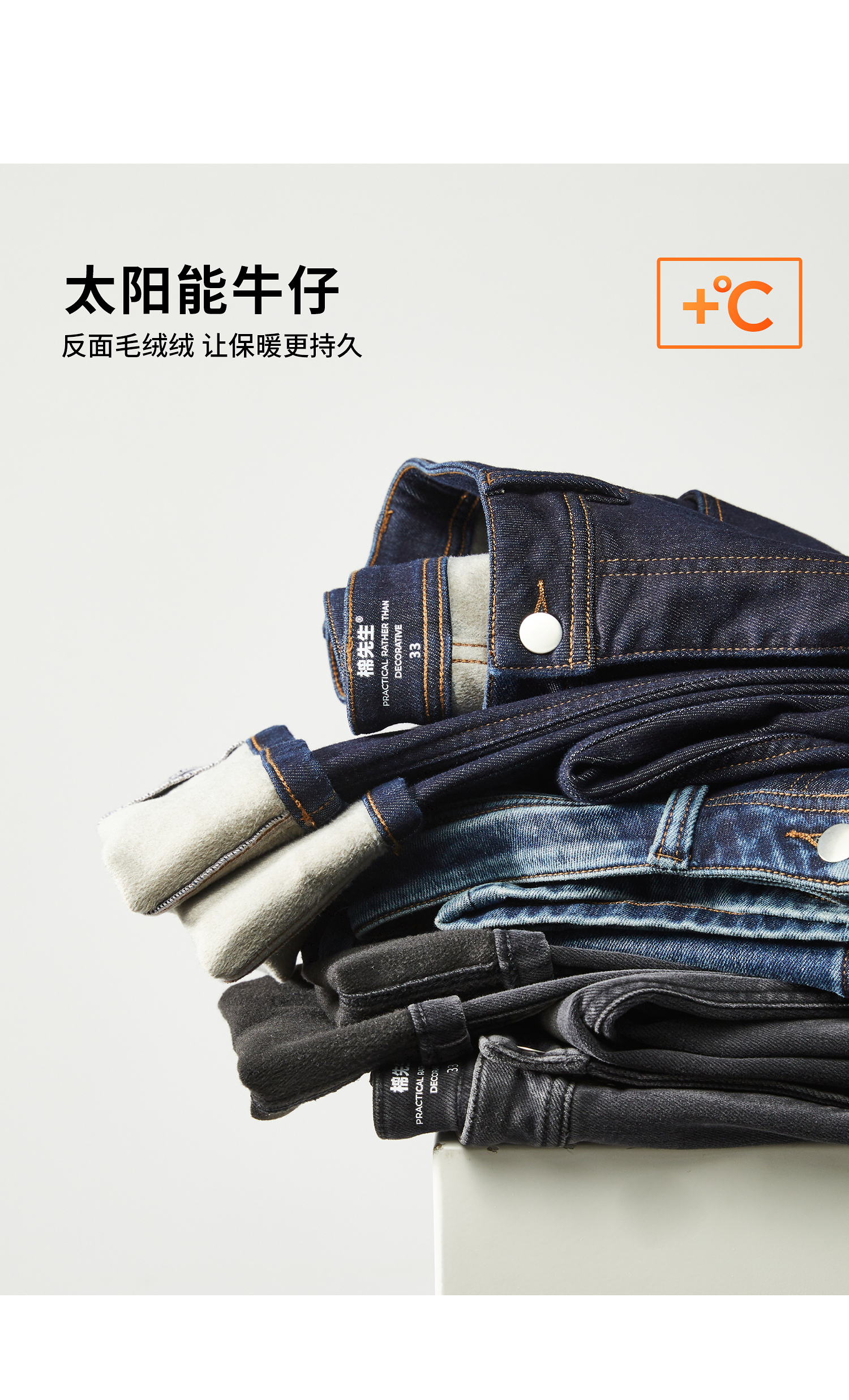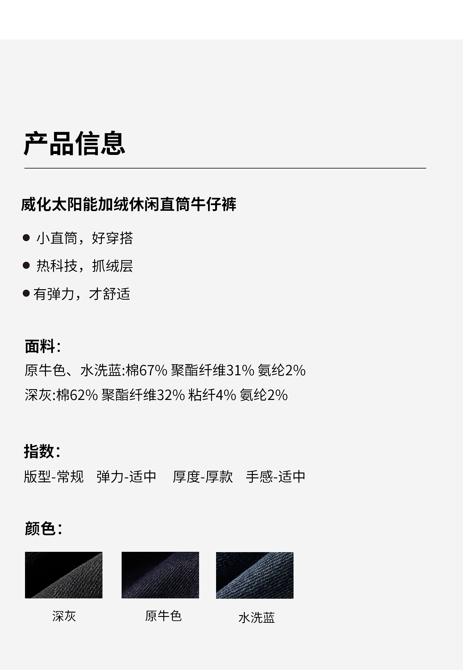 棉仓367819005-威化太阳能加绒休闲直筒牛仔裤
