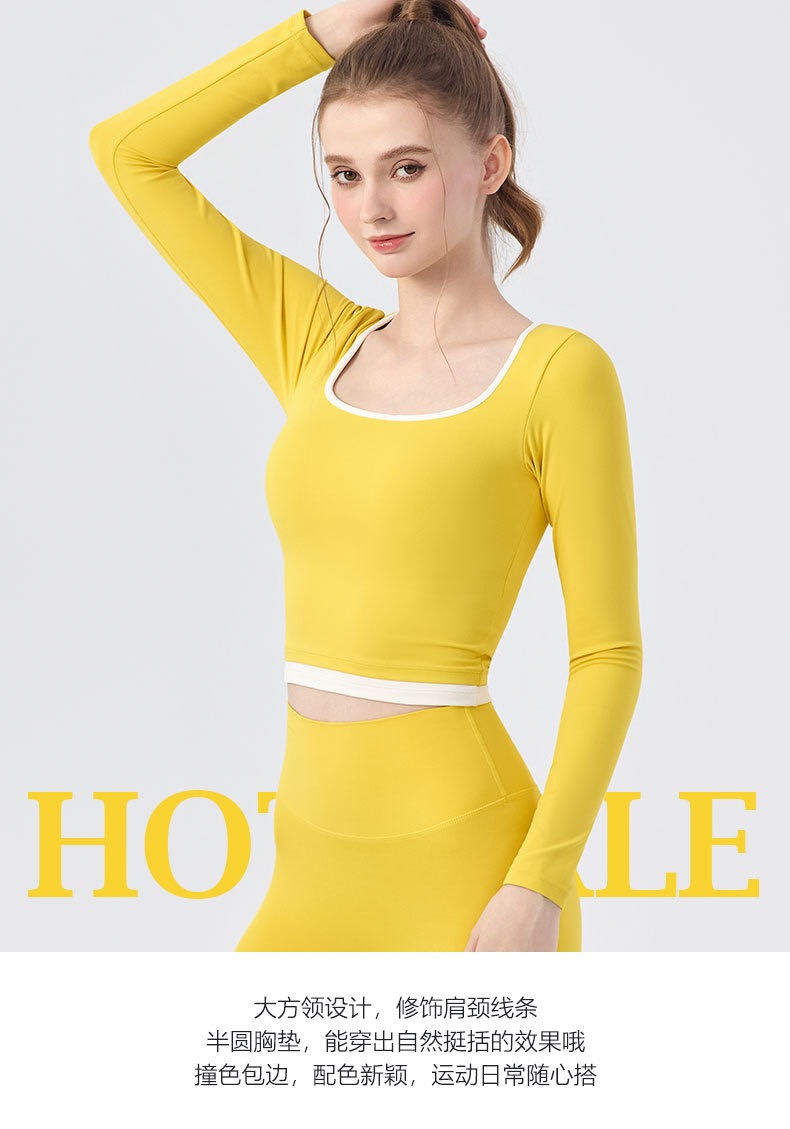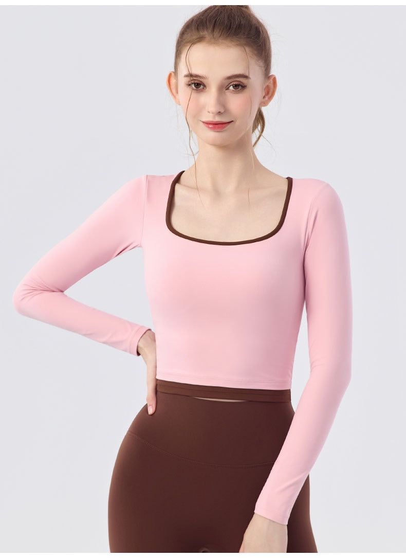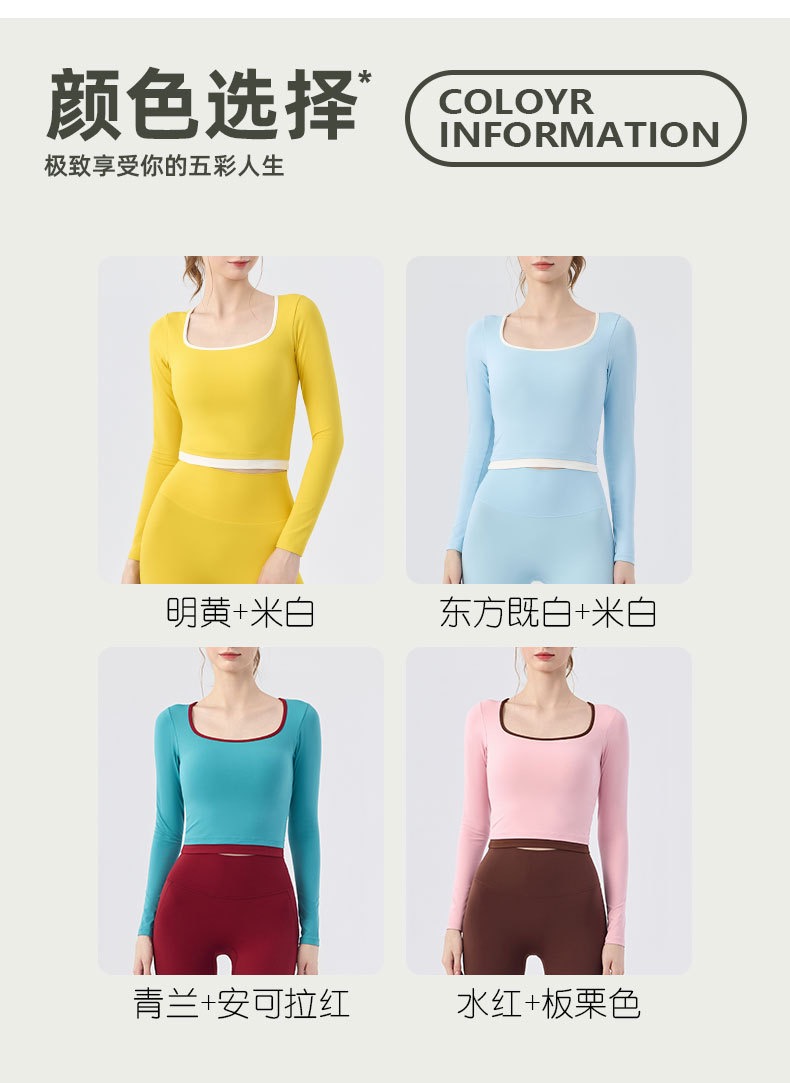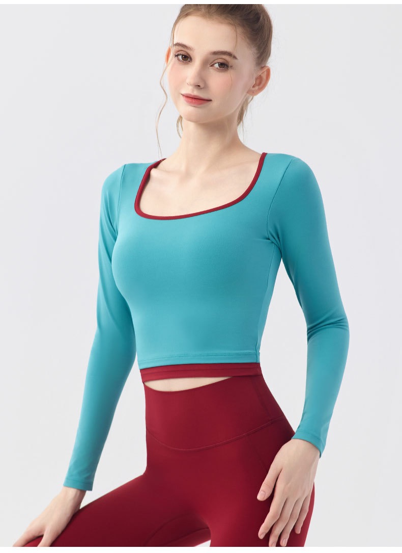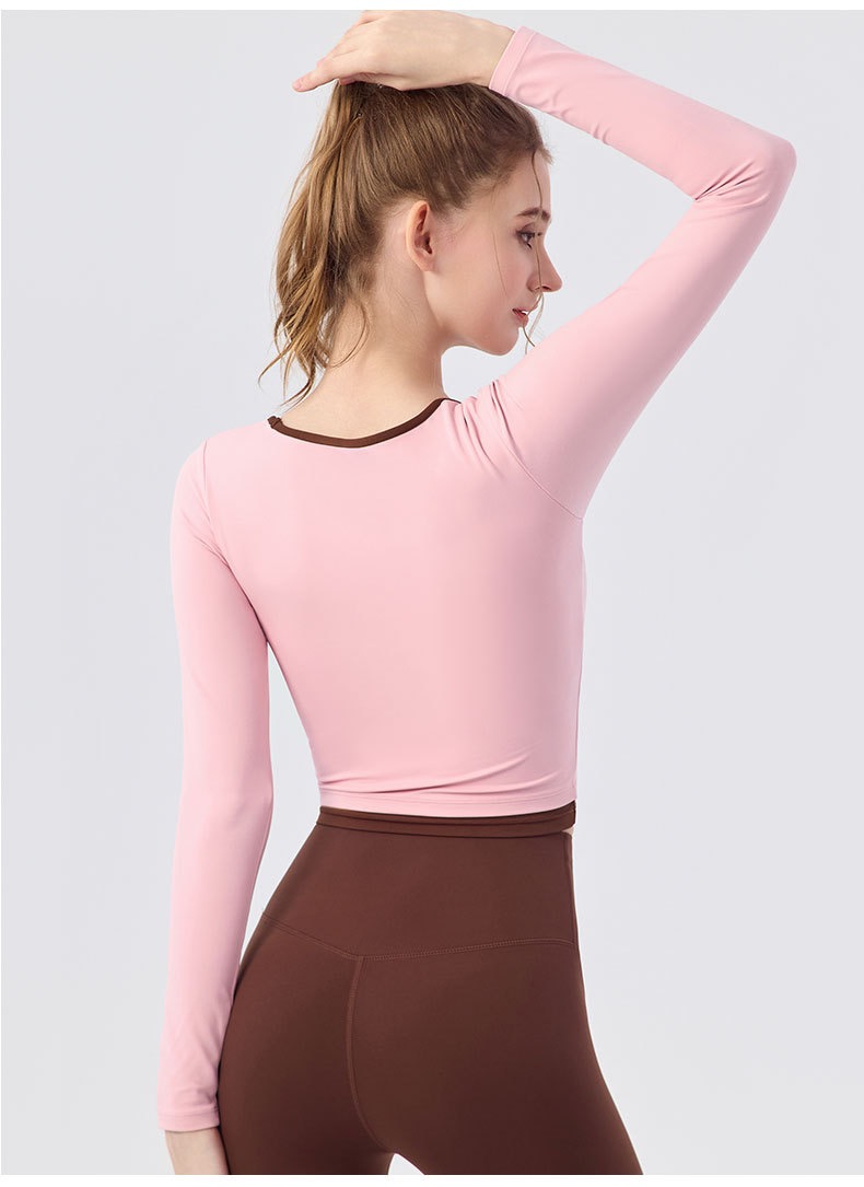 【新款】秋季撞色瑜伽服女带胸垫圆领长袖BMMZ-377