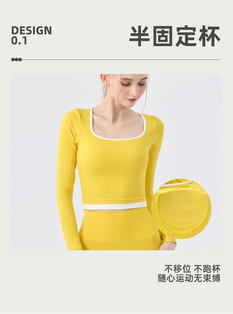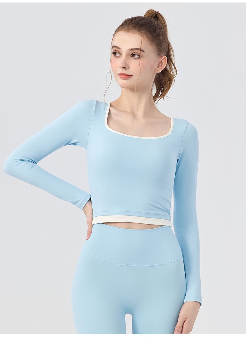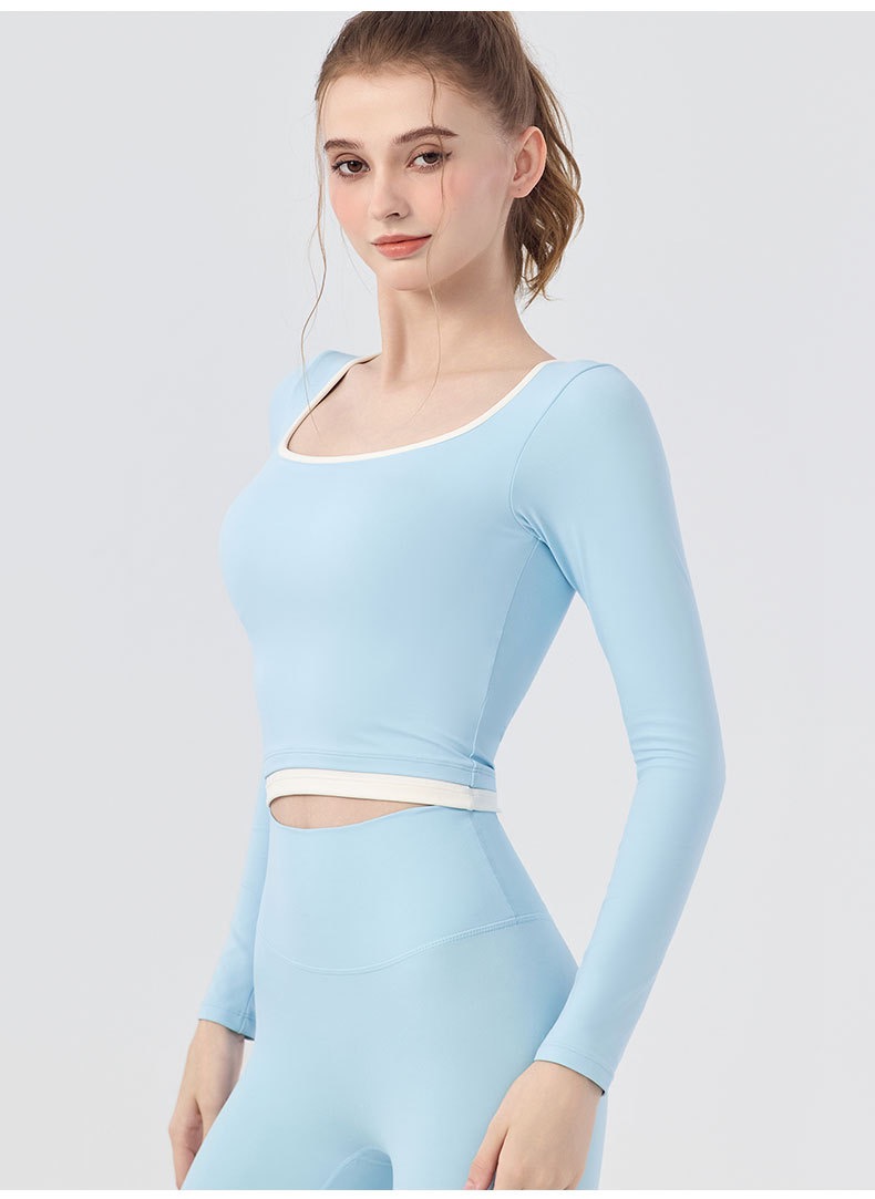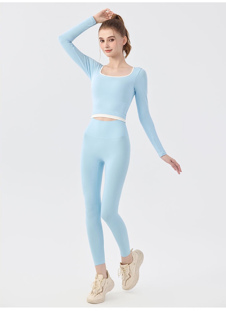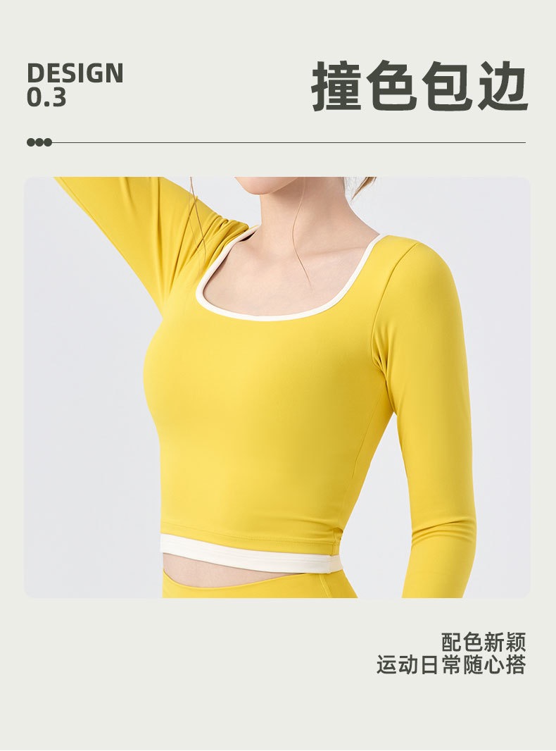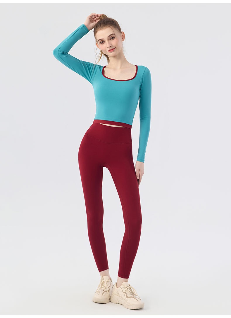 【新款】秋季撞色瑜伽服女带胸垫圆领长袖BMMZ-377