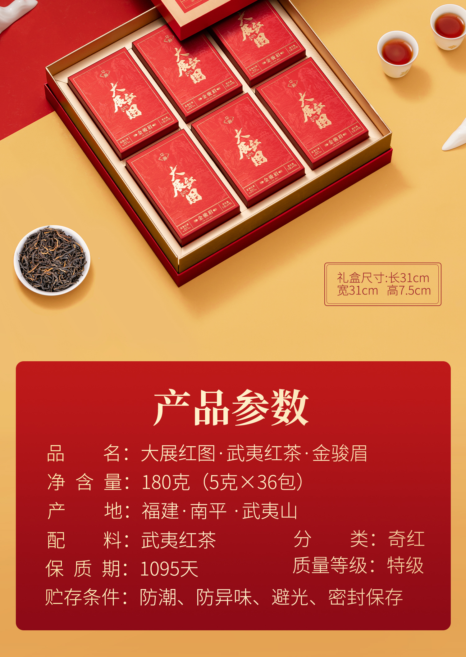 【年货茶礼】茶叶 红茶 金骏眉 浓香型 武夷红茶 茶饮 大展宏图 华源 180g
