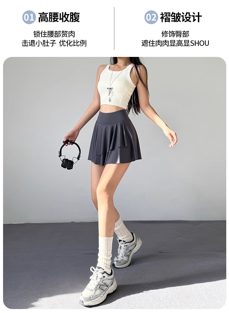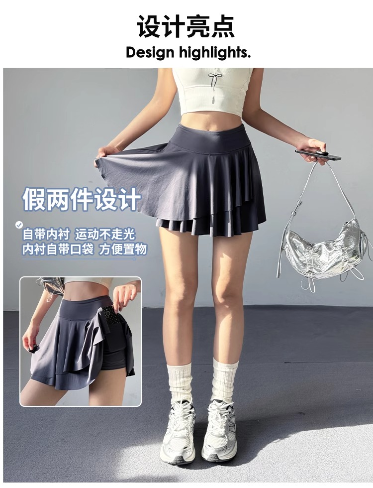 跃牌【安琪拉系列】凉感防晒瑜伽短裙带口袋显瘦透气跑步健身网球裙DQ-011