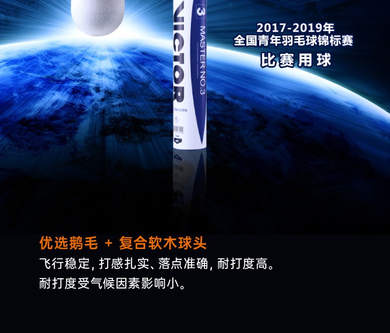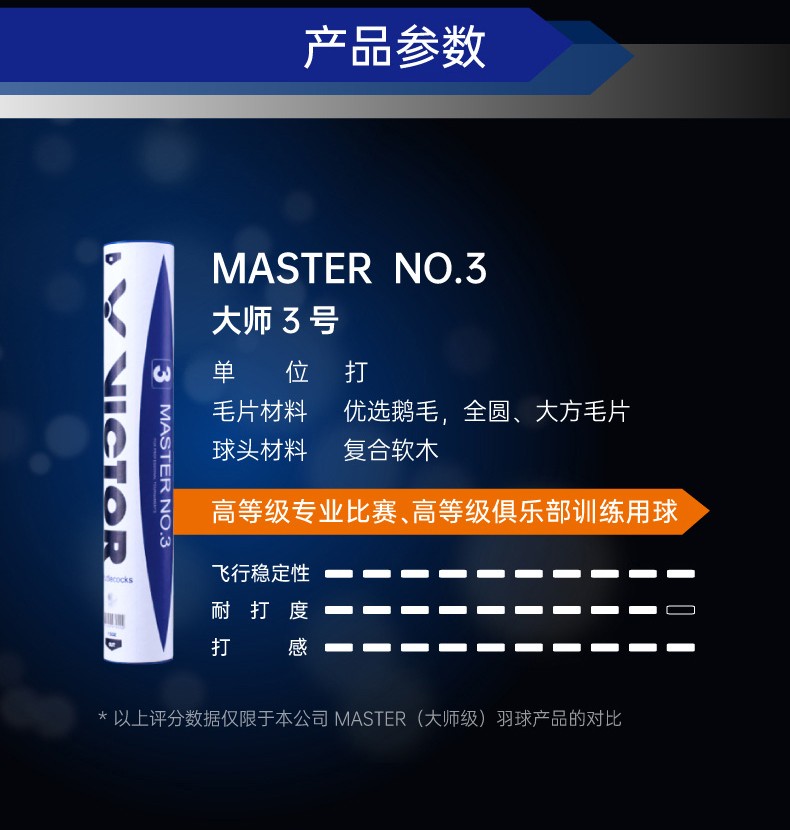 威克多VICTOR胜利羽毛球大师3号鹅毛 MS3 耐打稳定