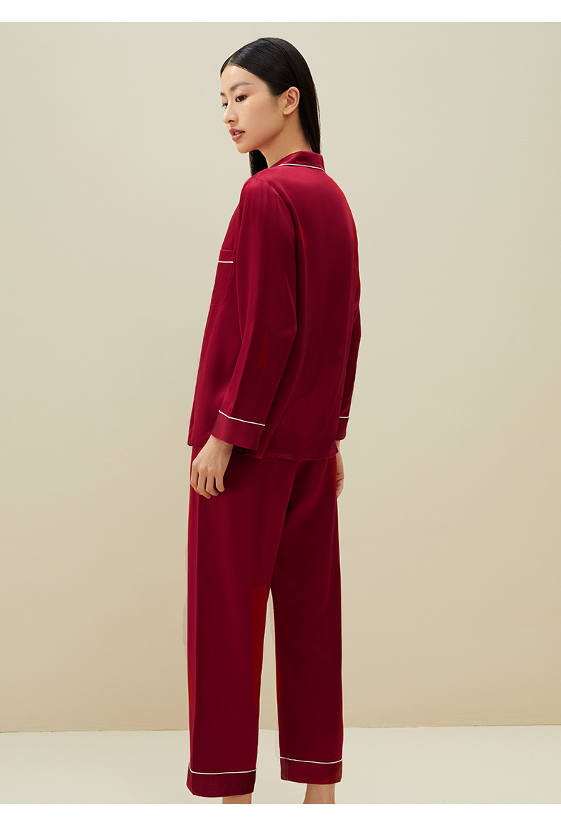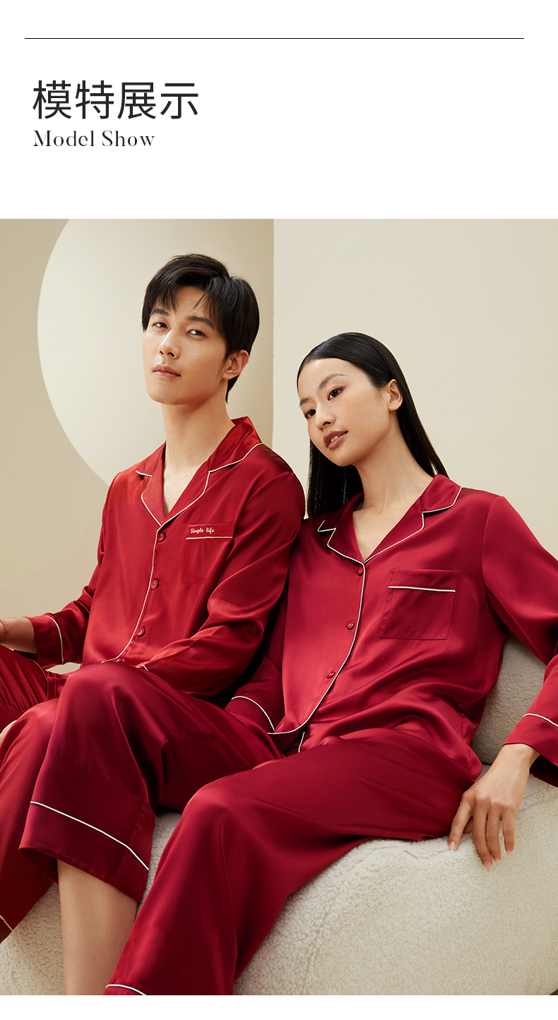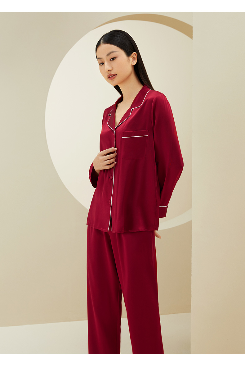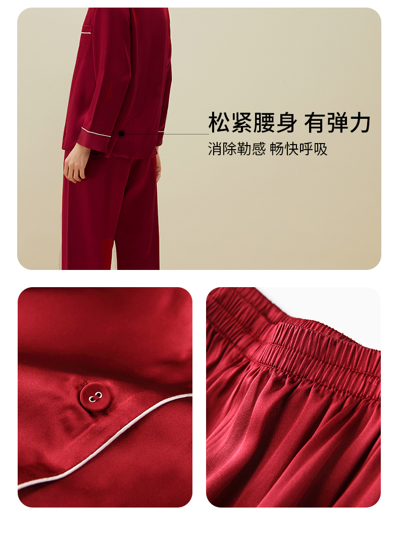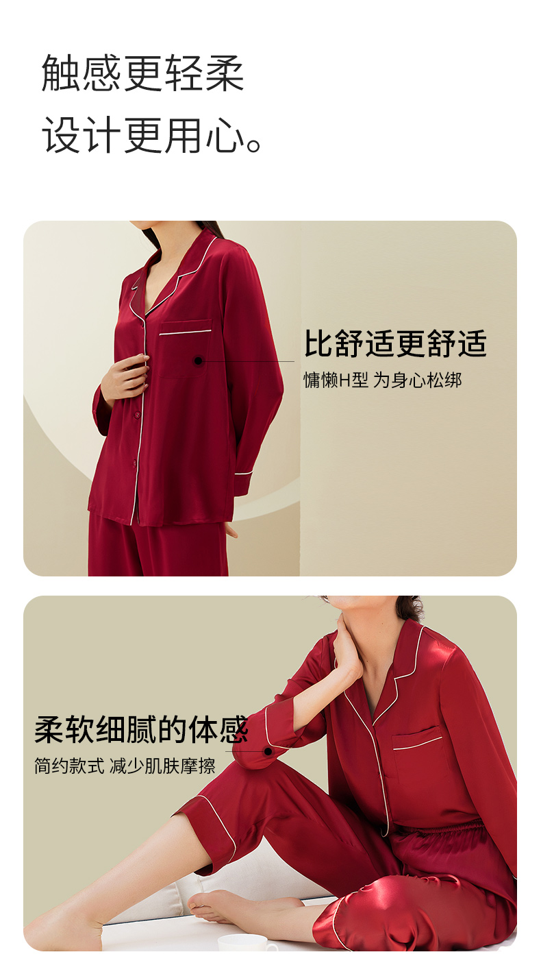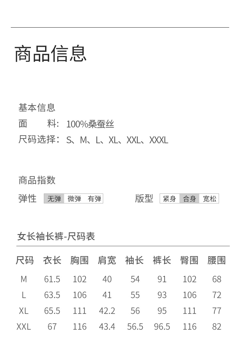 金三塔重磅真丝睡衣女长袖两件套100%桑蚕丝宽松可外穿丝绸家居服基础套装 YSF9B212/YSMAA201(限价款)