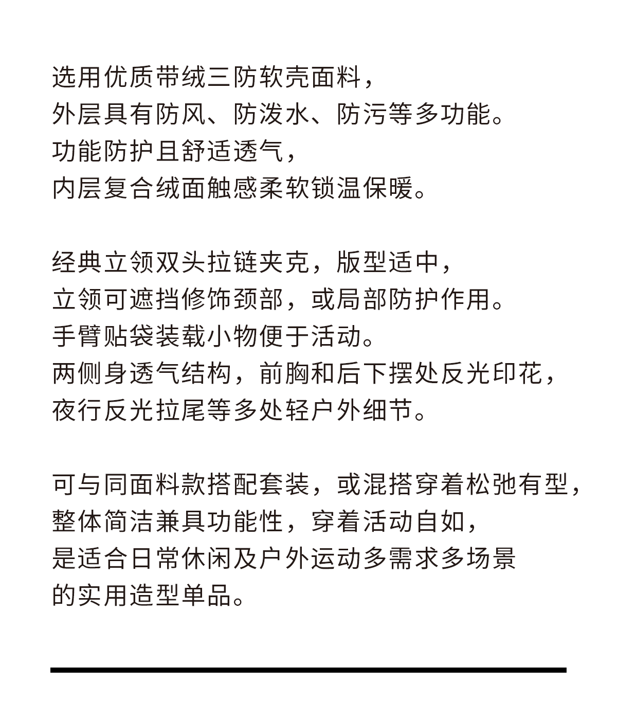 吃茶去chichaqu25秋冬户外三防防风防泼水带绒软壳立领冲锋夹克