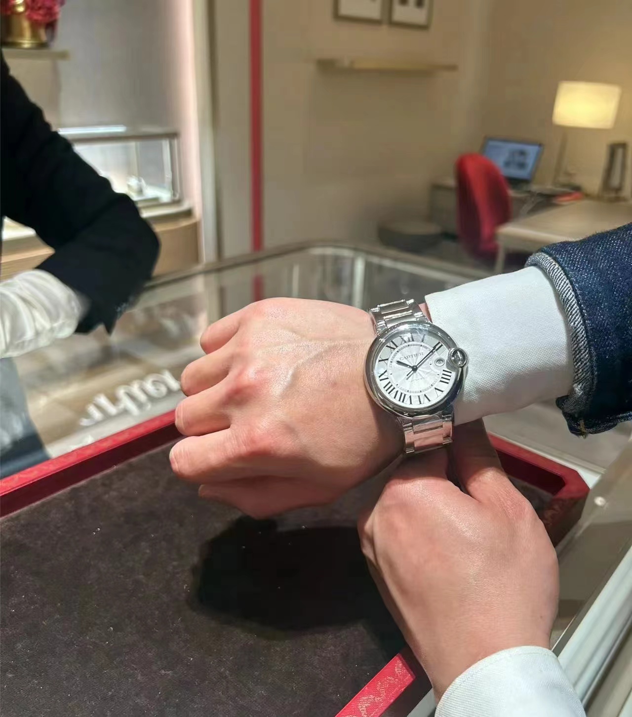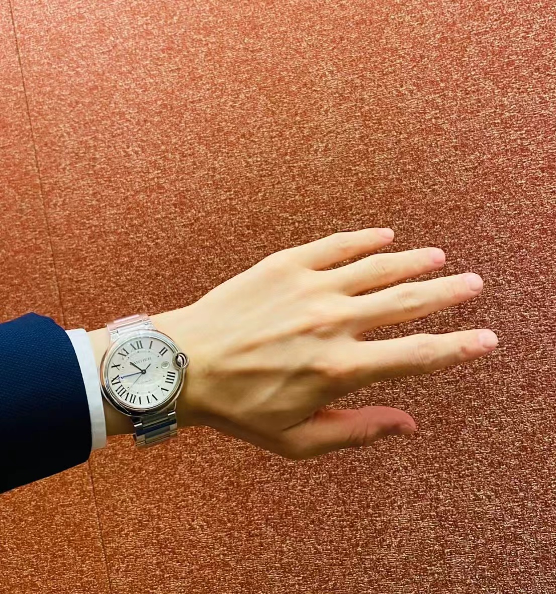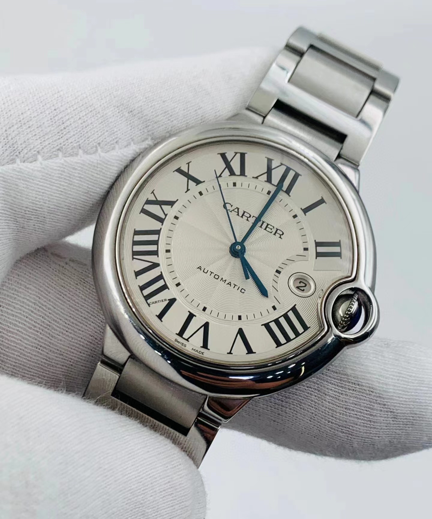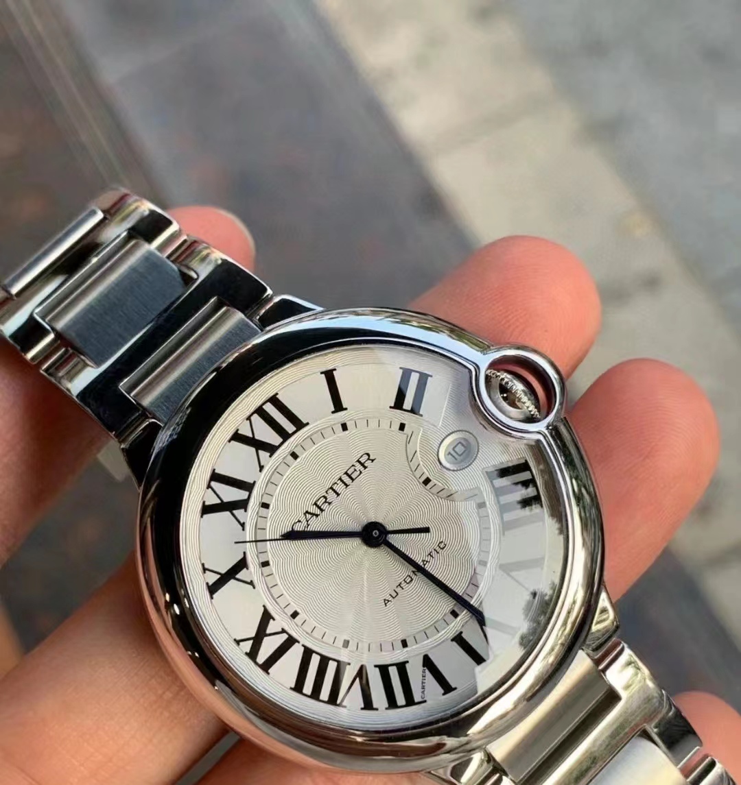 卡地亚蓝气球男士42mm,是一块万能风格,可商务可休闲,香港订单,进口机芯,蓝宝石表盘,钢链,原装进口电池。