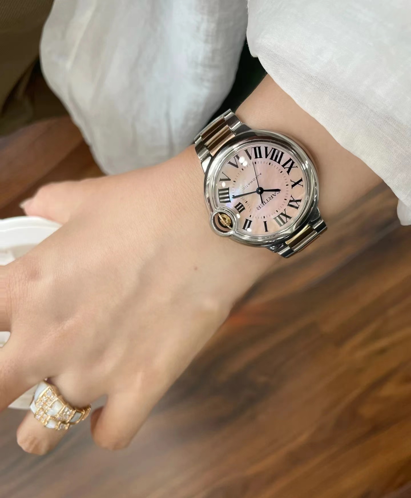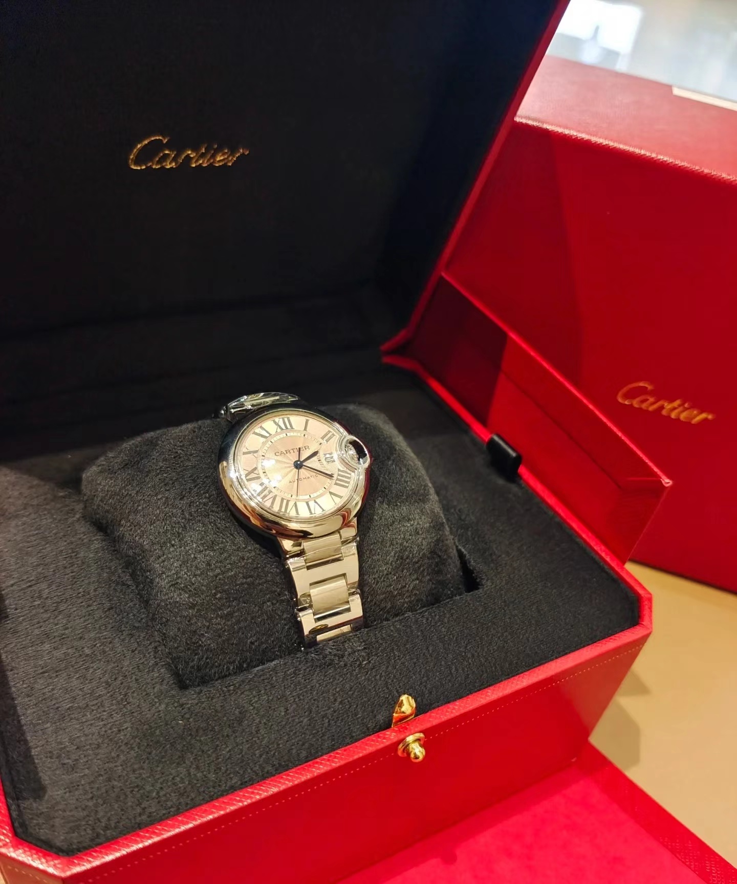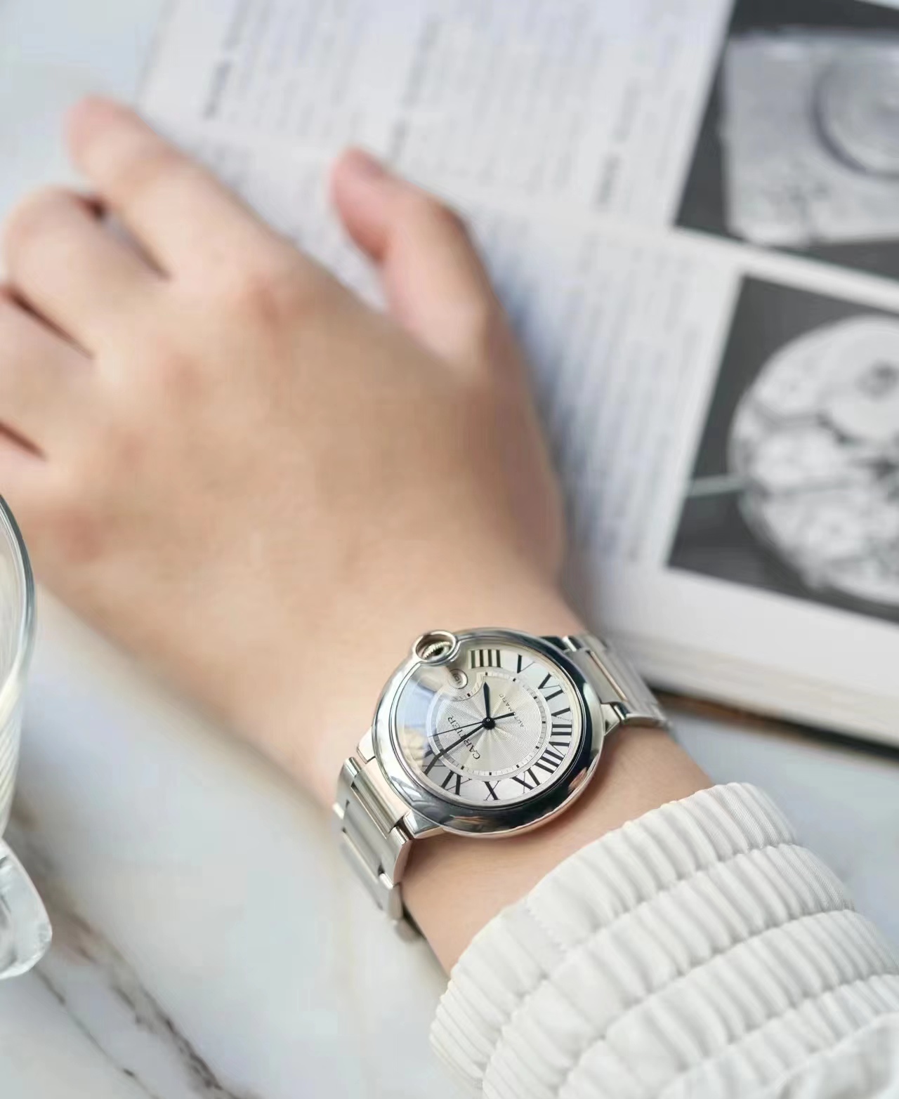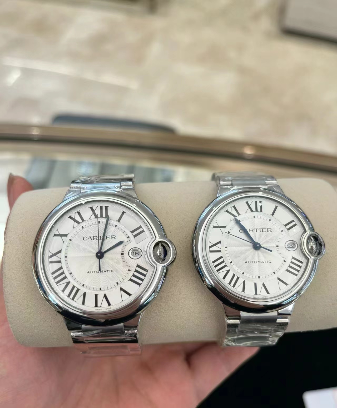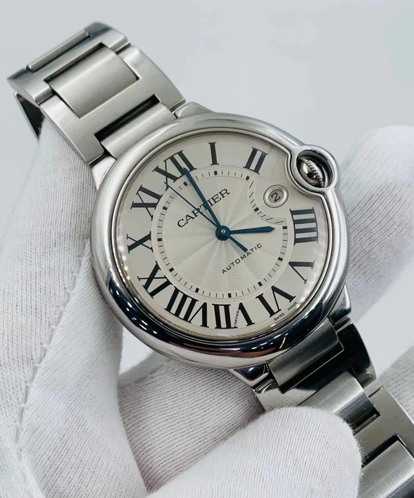 卡地亚蓝气球男士42mm,是一块万能风格,可商务可休闲,香港订单,进口机芯,蓝宝石表盘,钢链,原装进口电池。