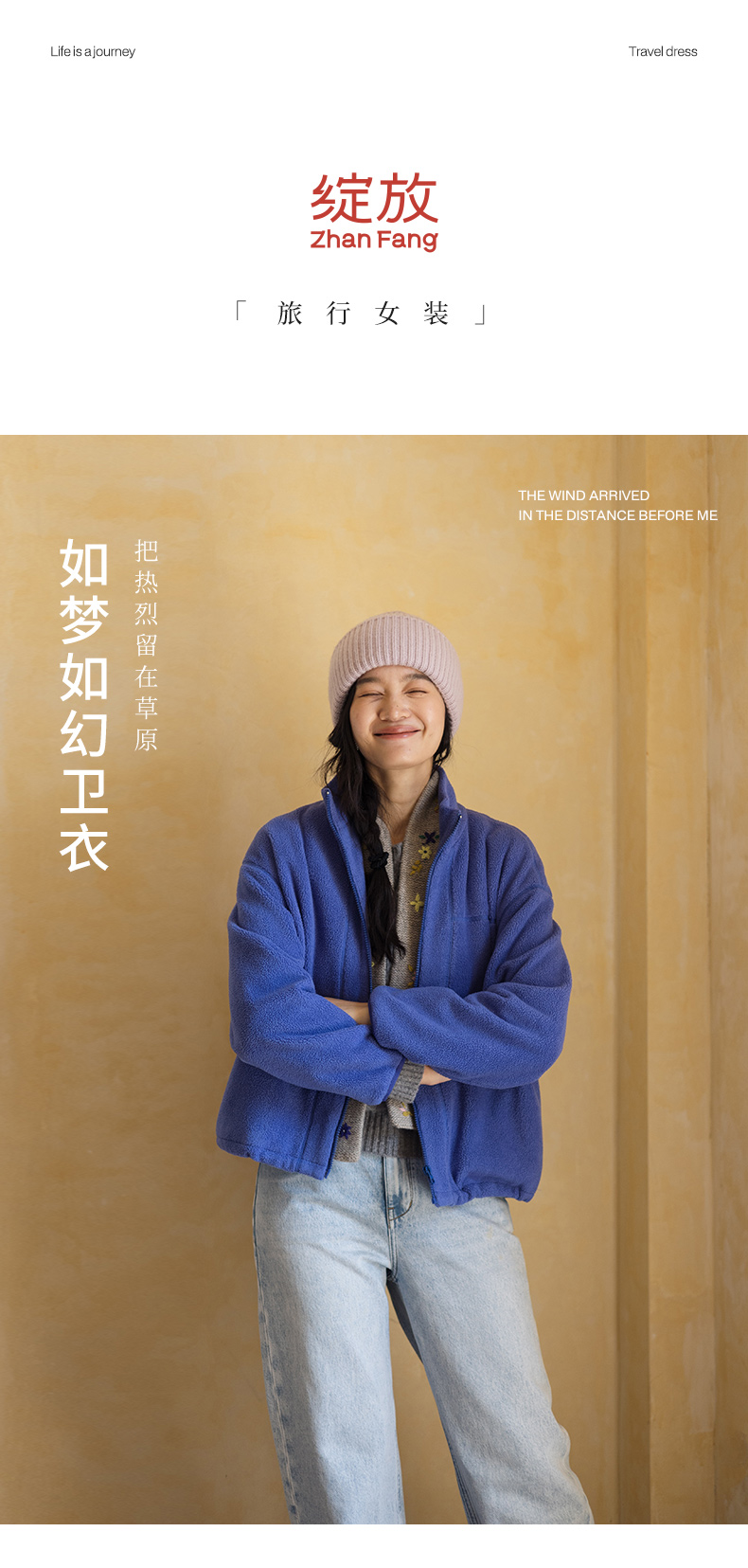 特绽放662朵/暖暖卫衣·棉针织摇粒绒立领长袖下摆抽绳开襟外套女
