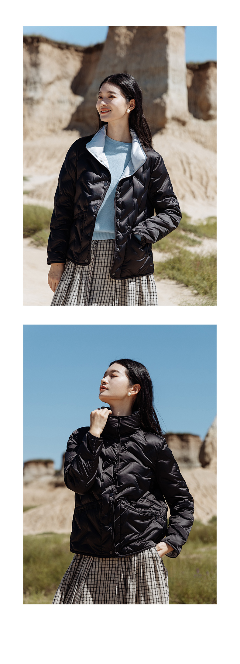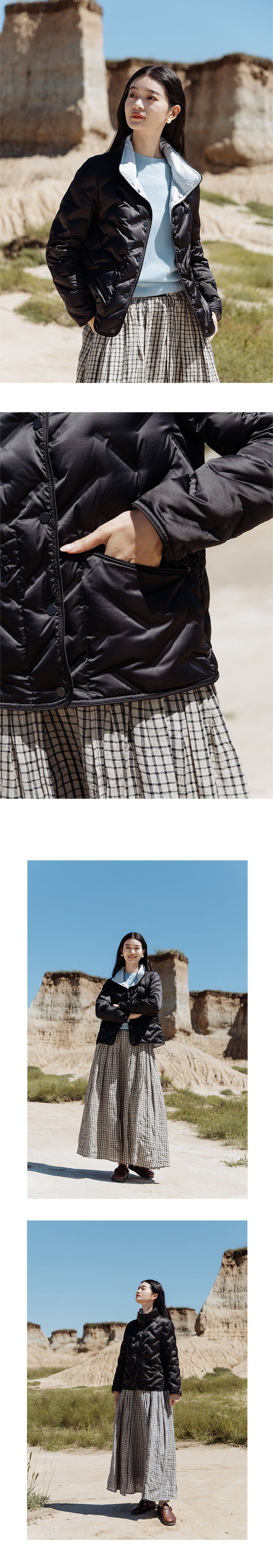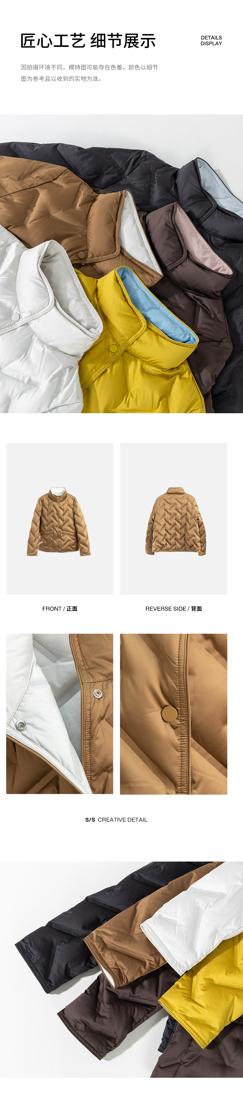绽放545朵/多色双面穿半高领百搭95白鹅绒短款羽绒服女秋冬新款