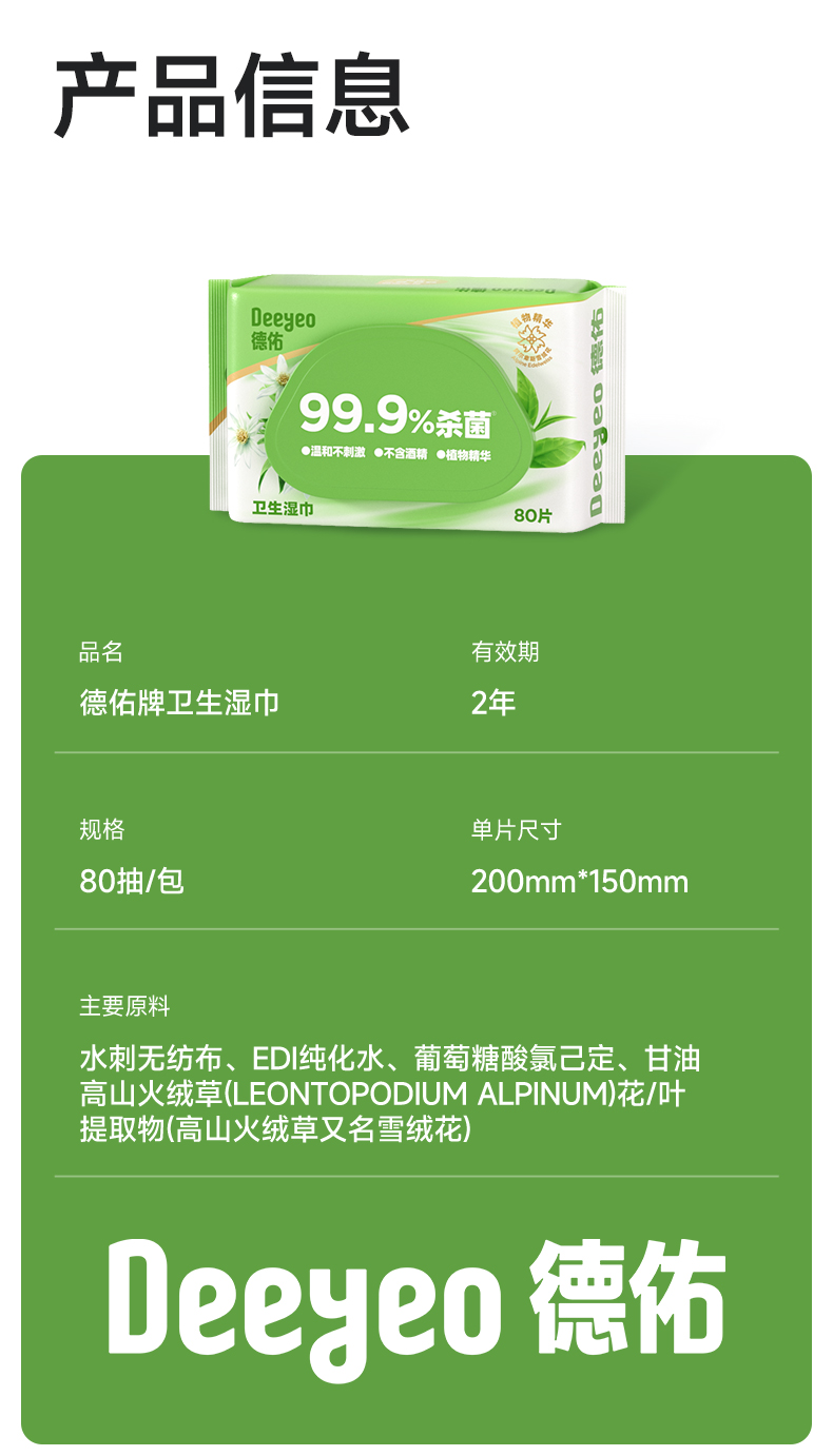 【GX】德佑卫生湿巾80片*4包