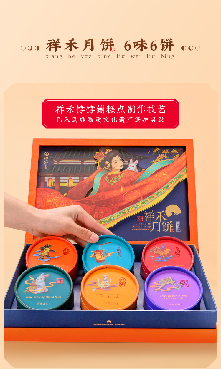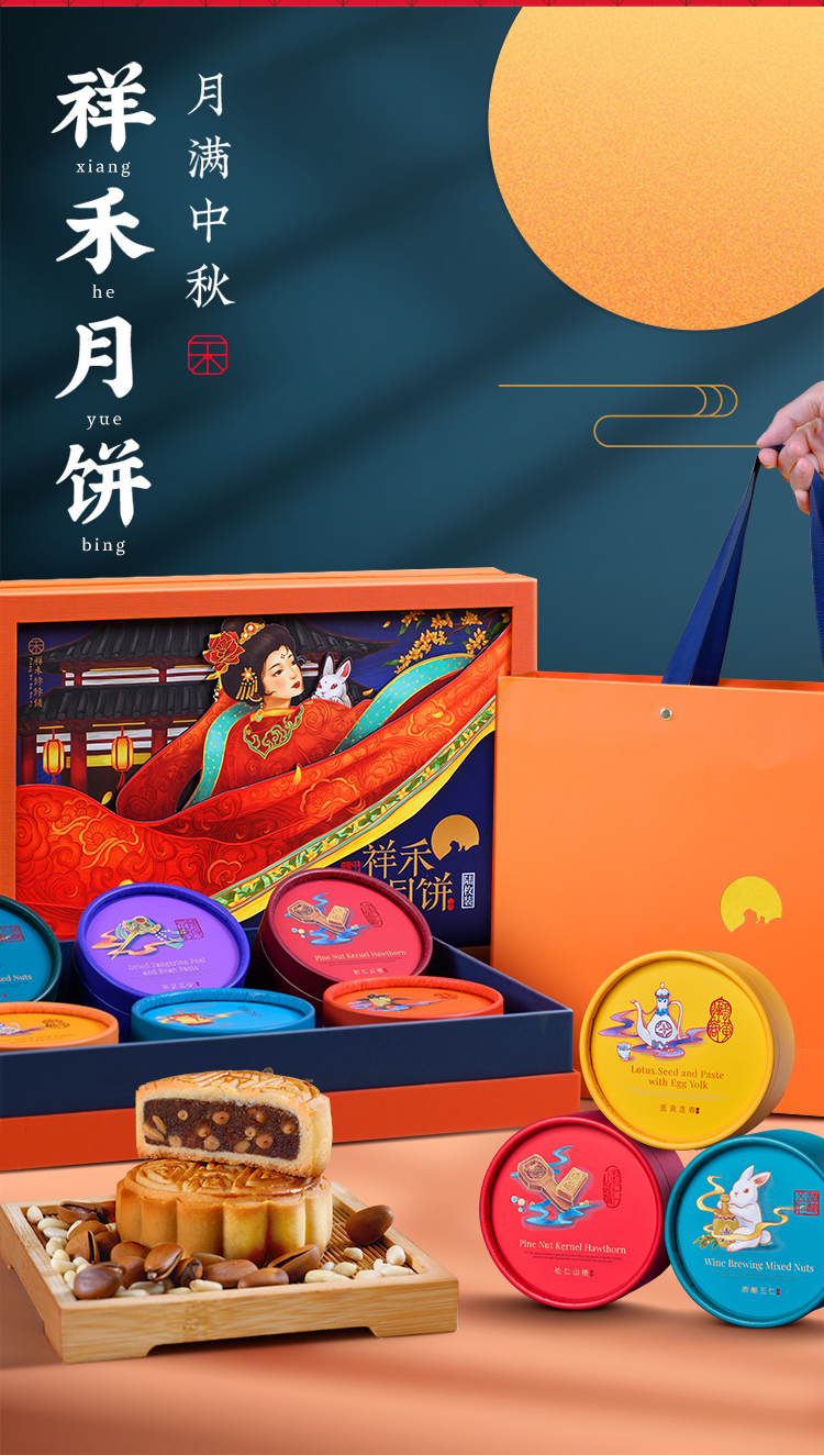 祥禾饽饽铺国潮月饼广式五仁蛋黄莲蓉豆沙山楂中秋礼盒装团购送礼