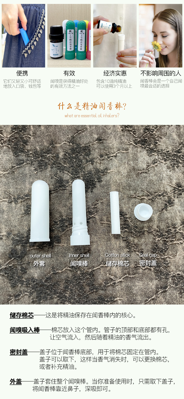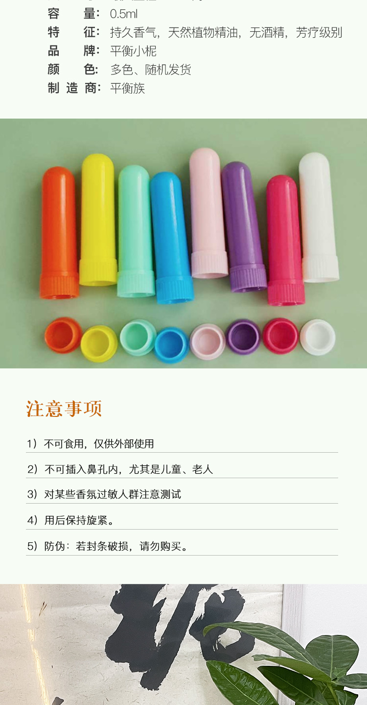 平衡小柅 精油专用 芳香精油闻香棒 鼻吸棒 精油鉴定棒