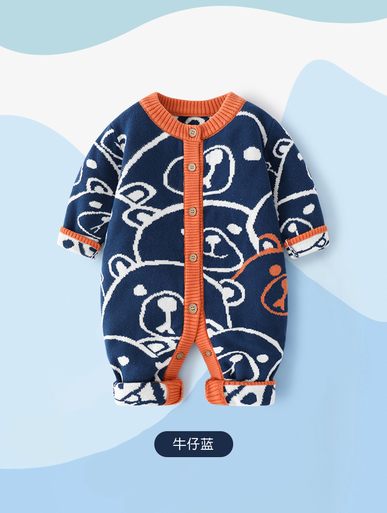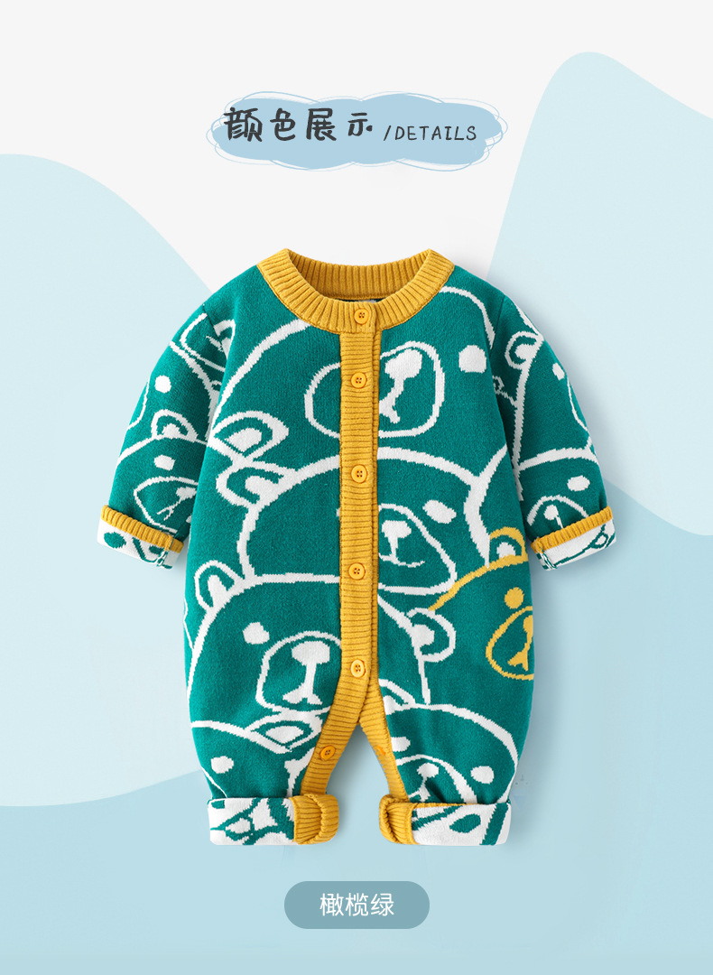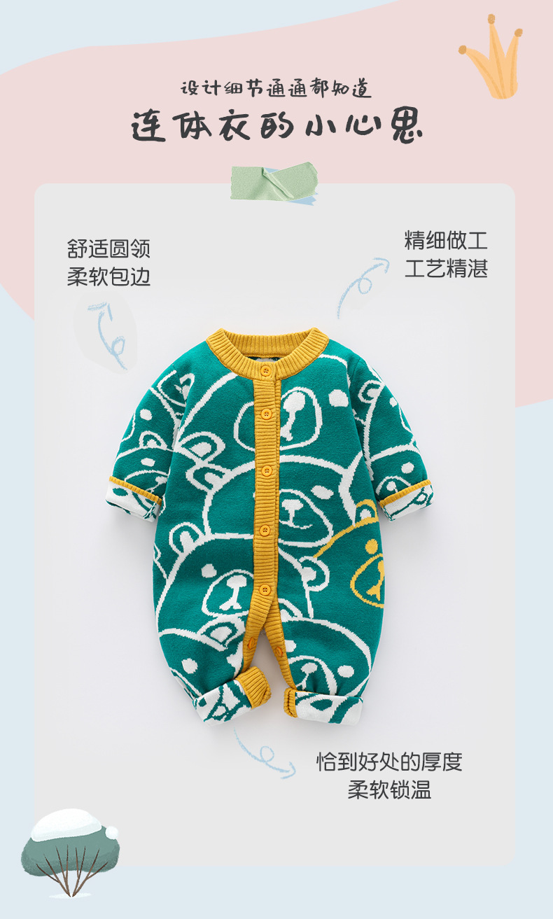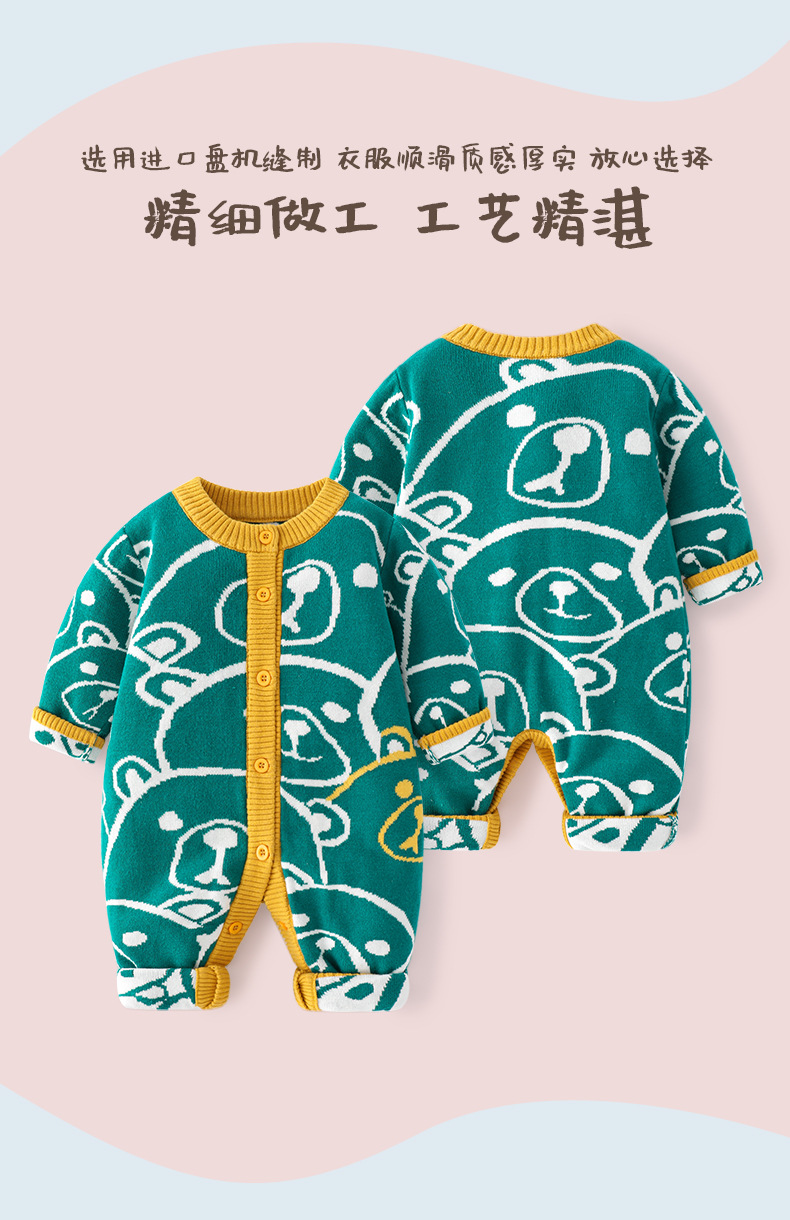 【可爱满熊连体衣 舒适保暖】巴布雨新款纯棉新生儿A类衣服秋冬款针织双层婴儿连体衣宝宝爬服