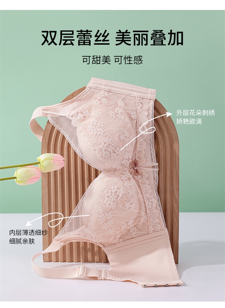 雅黛丽内衣女小胸聚拢显大蕾丝文胸无钢圈收副乳防下垂胸罩