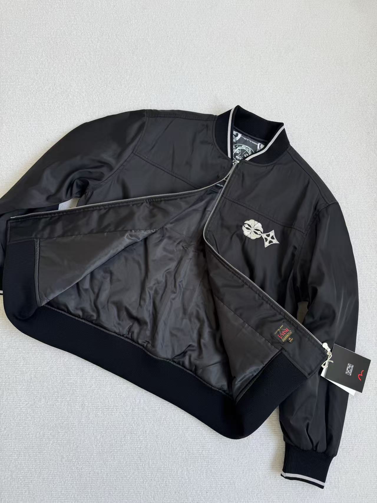 配备防伪标识,很有质感的棒球服!~这款飞行夹克它后面绣有图案仙鹤图案的嵌条大好而嵌条大M内有饰有海鸥和智慧之论的刺绣,能为这款夹克增添独特的魅力(醉大穿220斤)