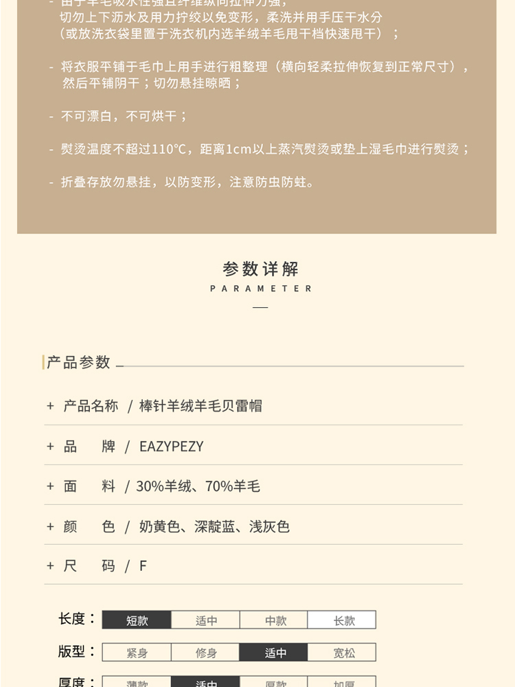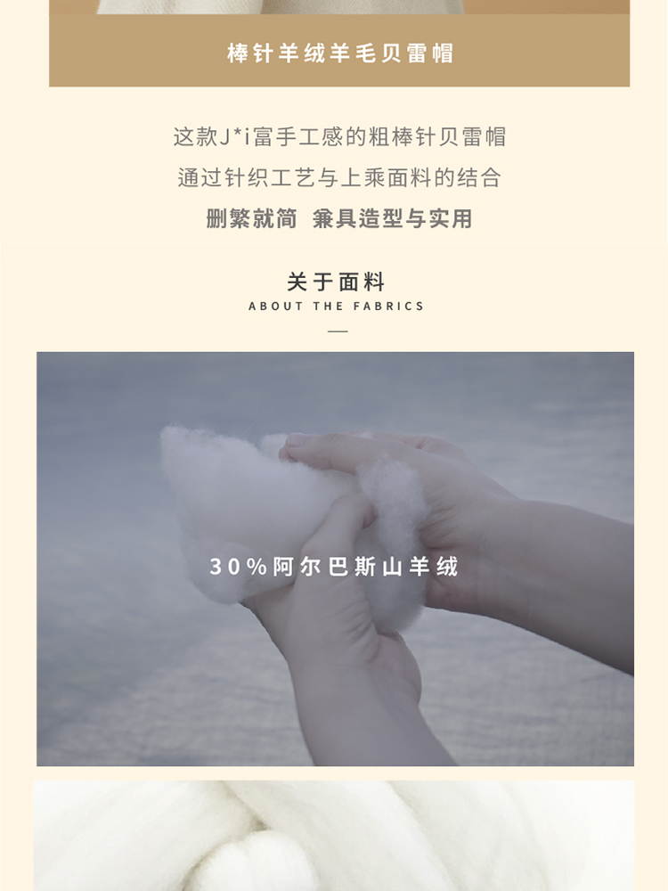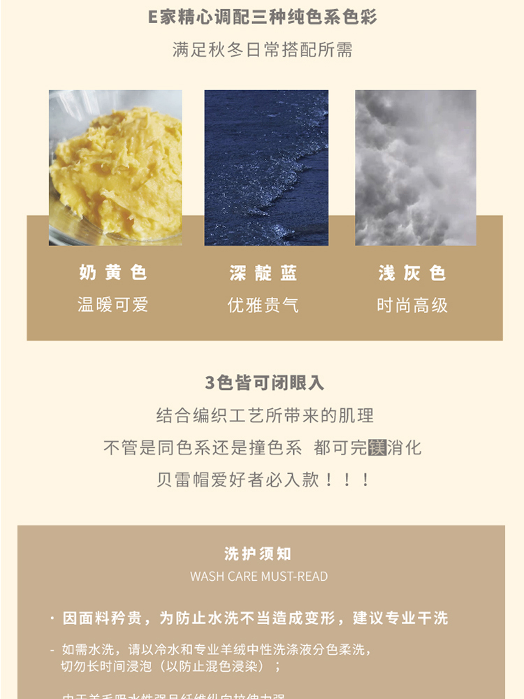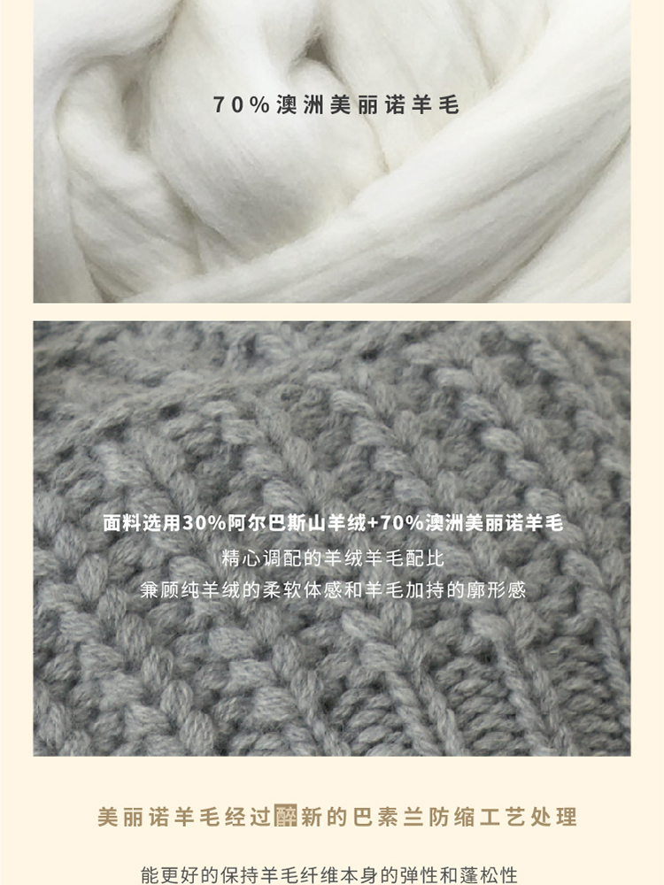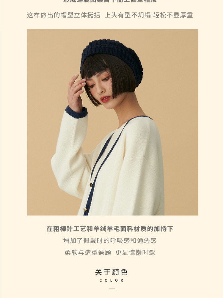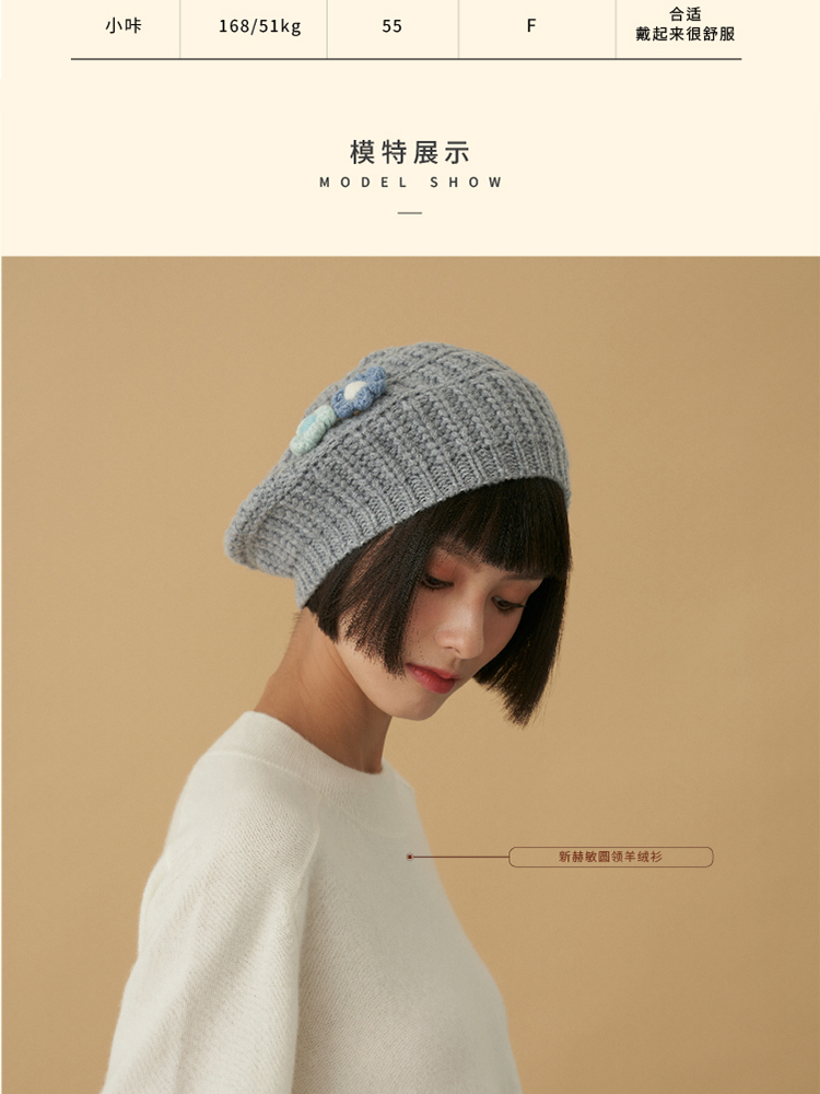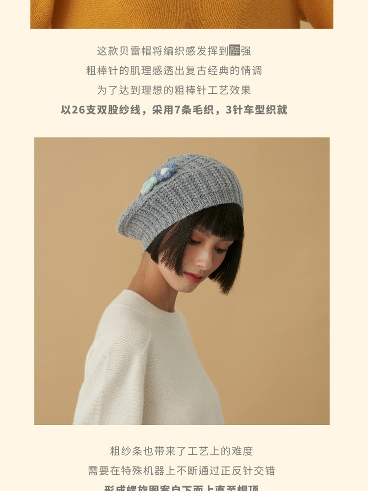 EAZYPEZY 棒针羊绒羊毛贝雷帽