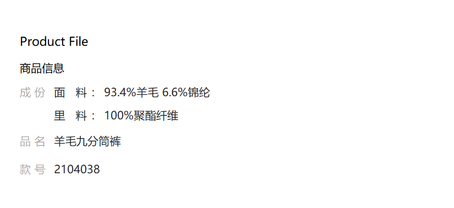 定制—温暖冬日—高级灰绵羊毛九分直筒裤- 显瘦阔腿裤 2104038