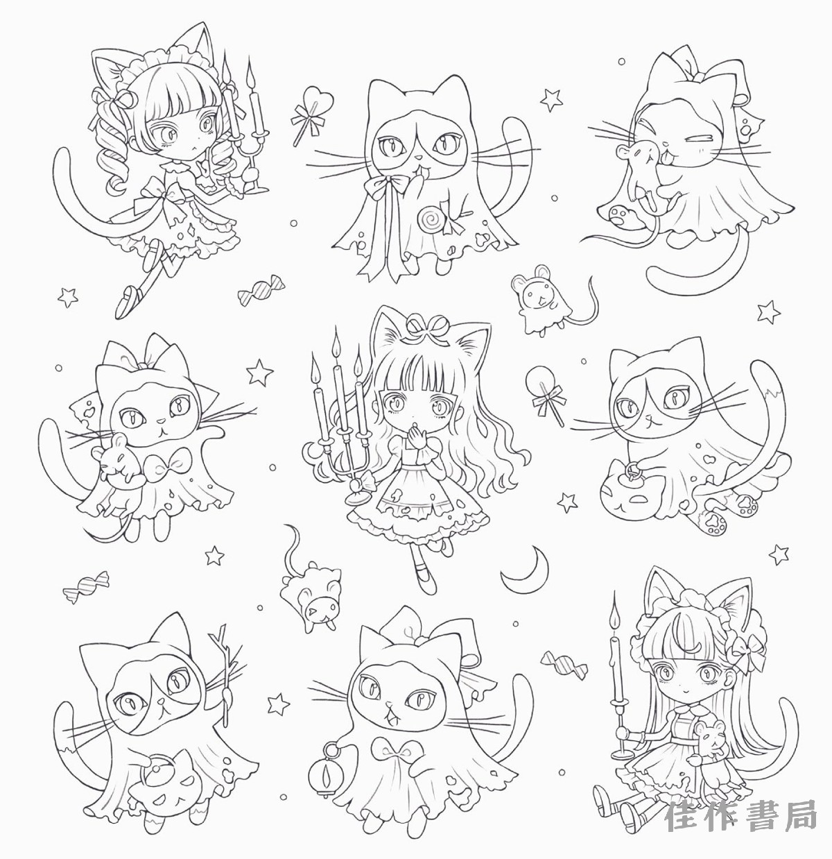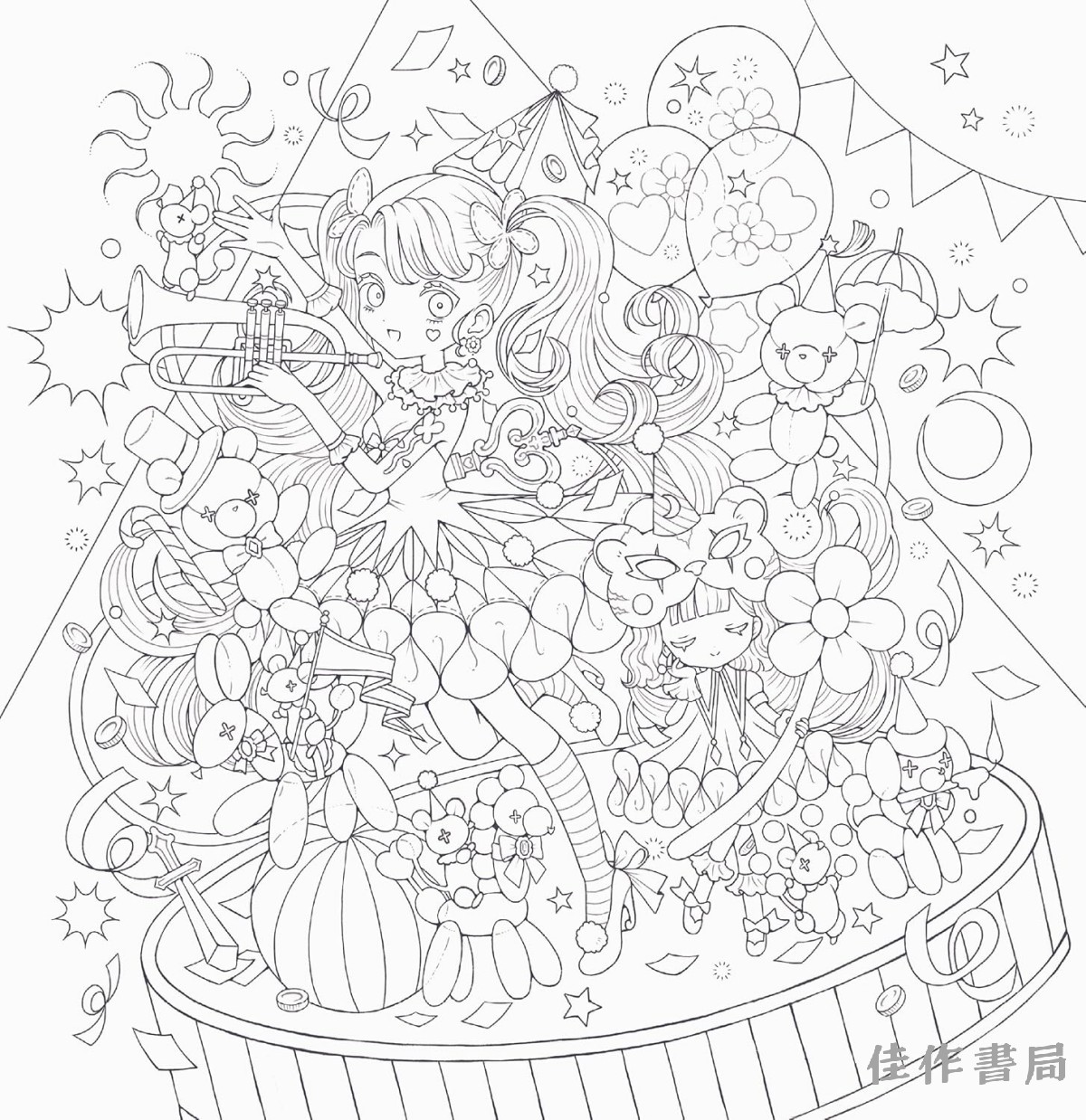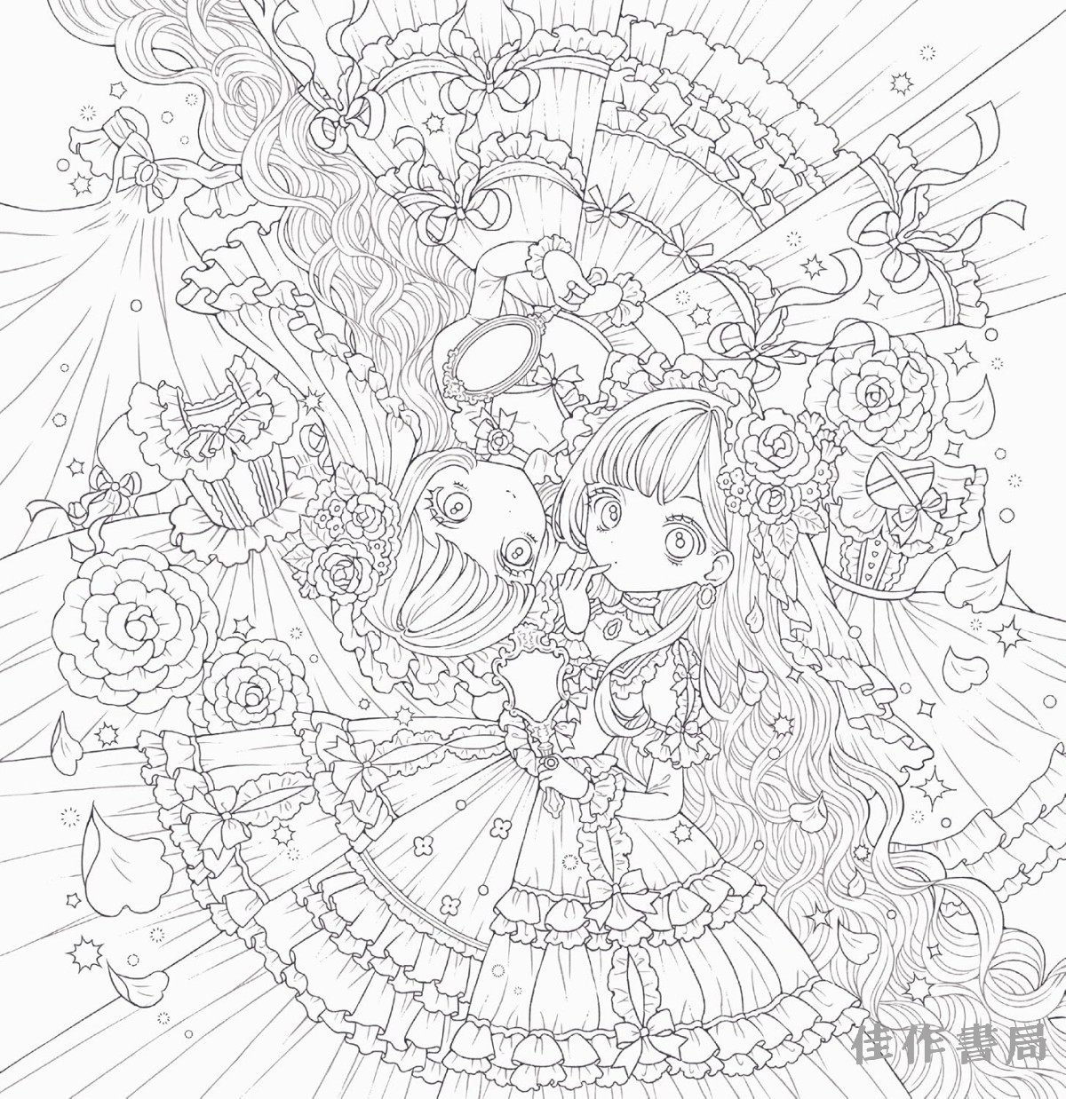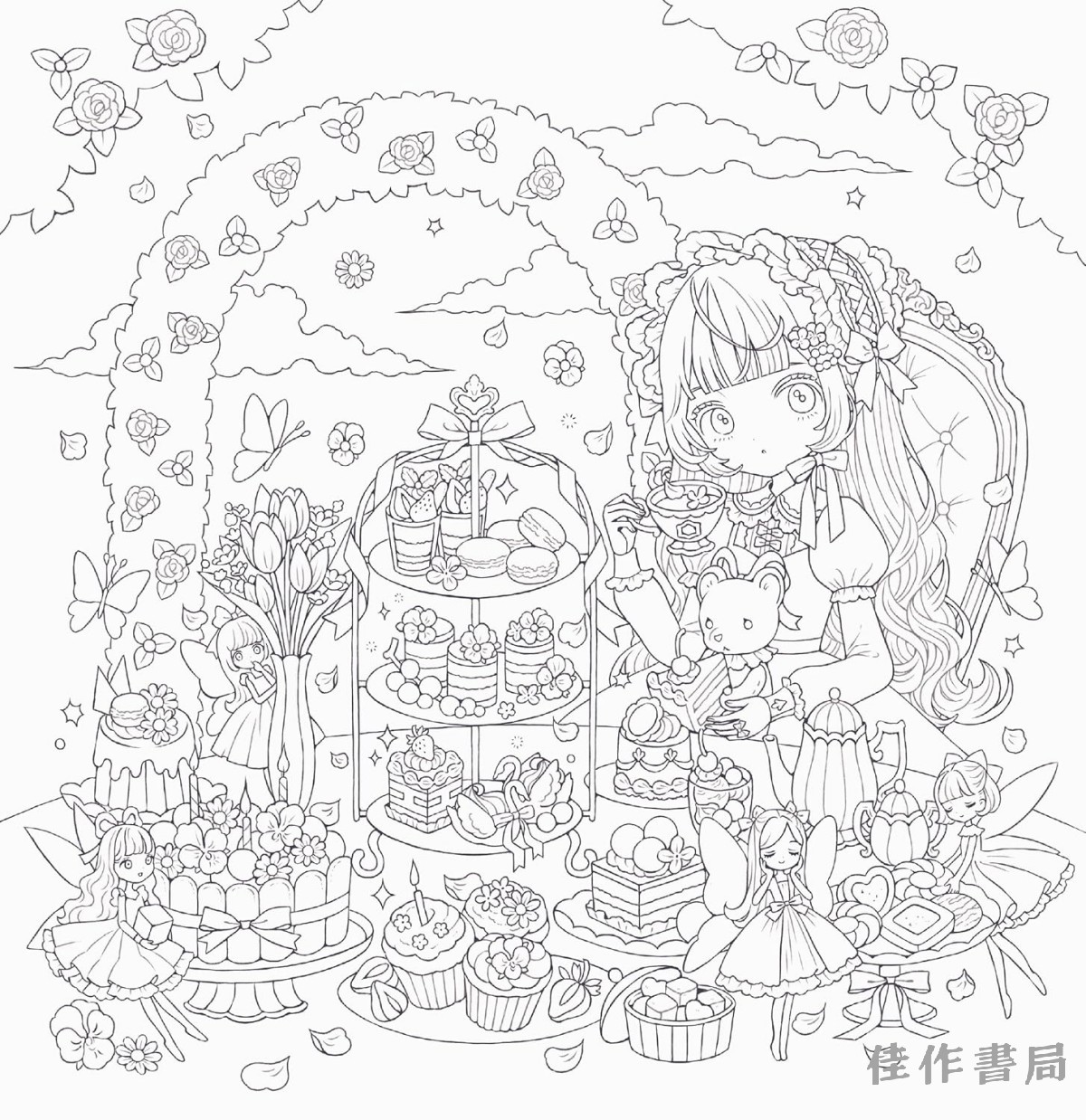 这是插画家伦敦·西罗崎的作品,他擅长玩偶插画和服装设计。这本书收录了30幅艺术作品,灵感源自哥特式和洛丽塔女孩略带阴暗神秘的世界,还有可爱的动物、万圣节等元素。涂色页采用穿孔设计,方便撕下。书的末尾,除了5张色彩样本页(供涂色新手参考配色和方法),还介绍了彩色铅笔和丙烯颜料的使用技巧。