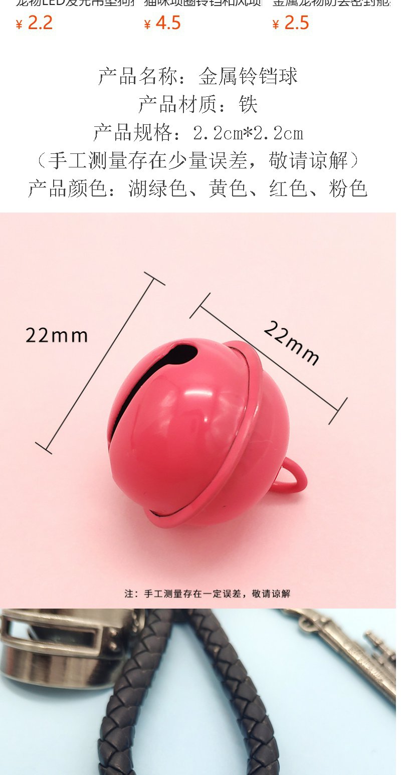 宠物项圈铃铛 狗狗猫咪脖圈装饰品 糖果色DIY宠物配饰配件随机1个