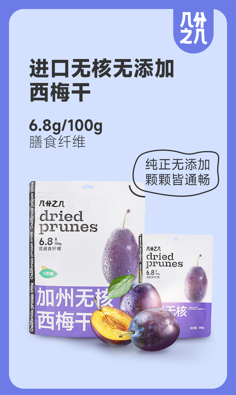 [屁侠推荐] 几分之几 美国加州进口无核西梅干 50g/500g/包 个大肉厚 开袋即食