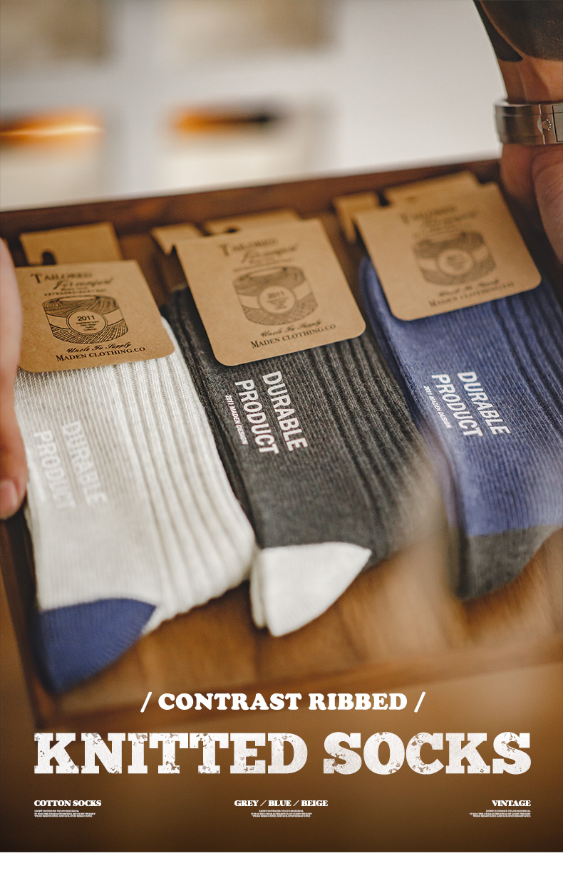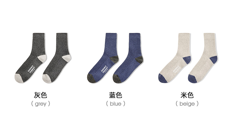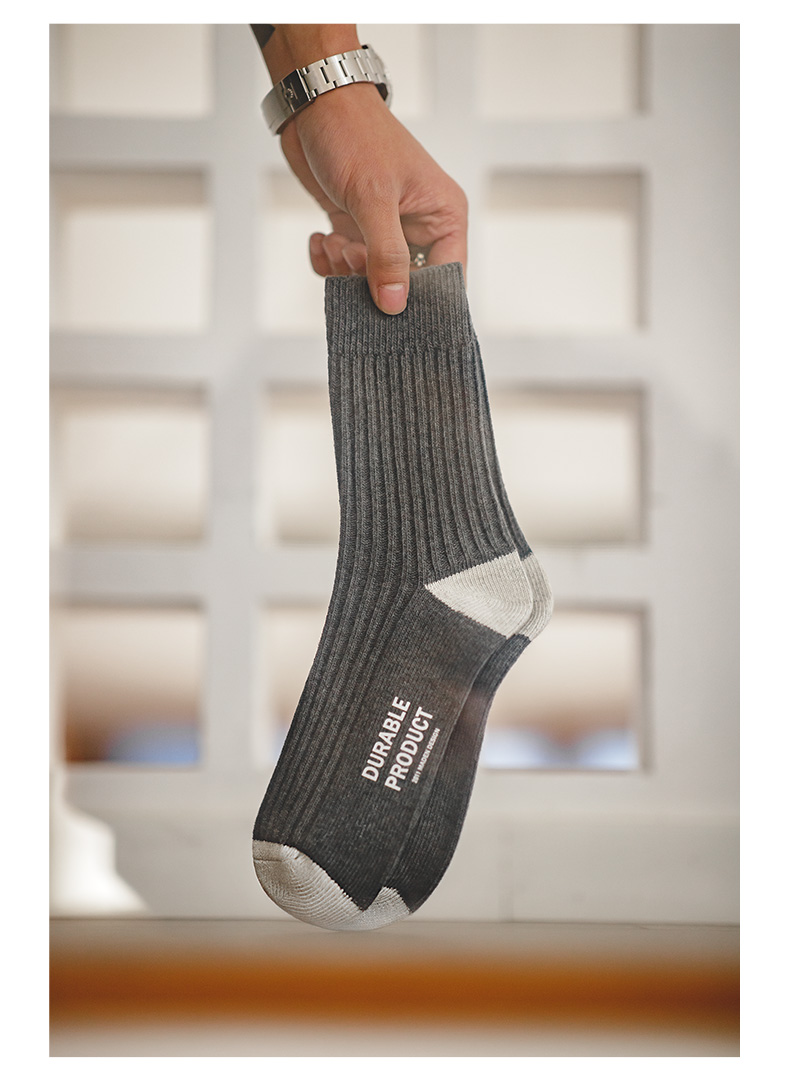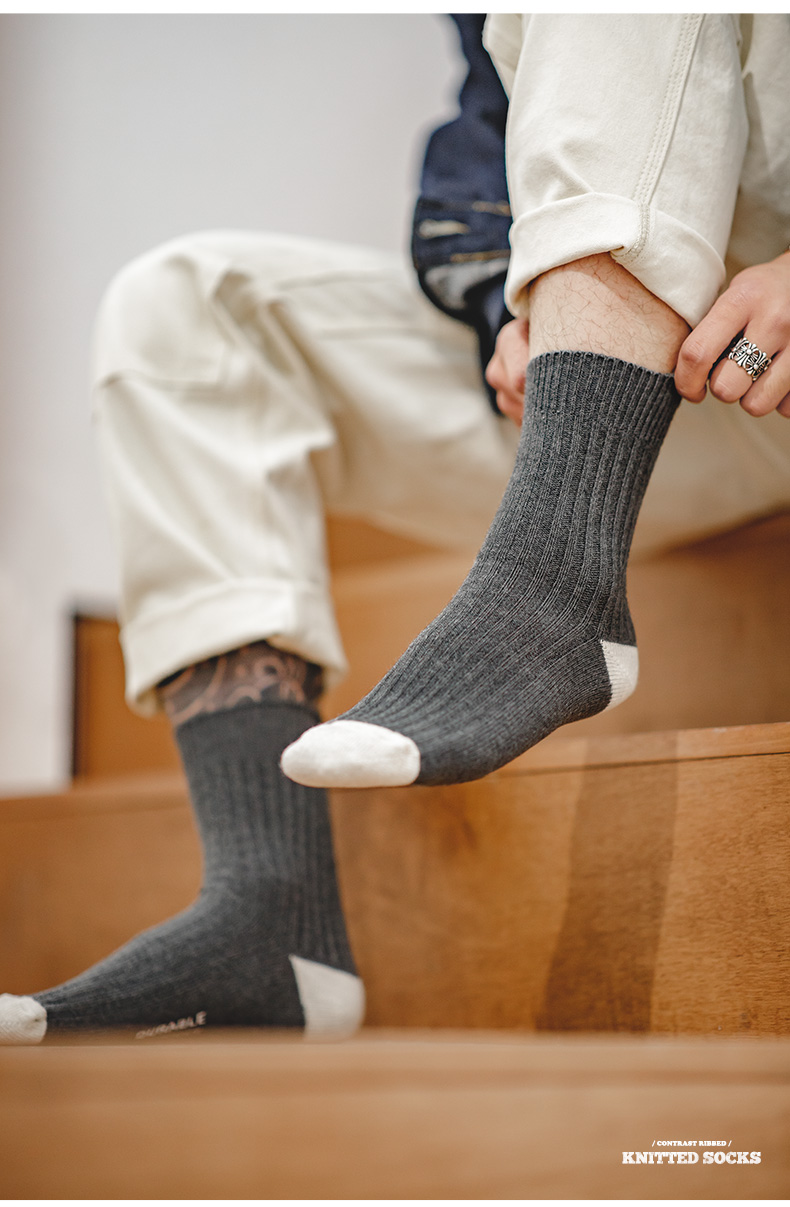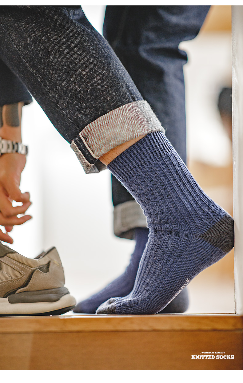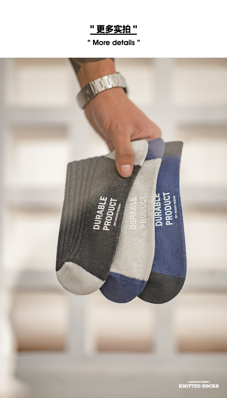 工装优选 美式休闲撞色花纱针织中筒袜三色坑条粗线长袜子男春秋