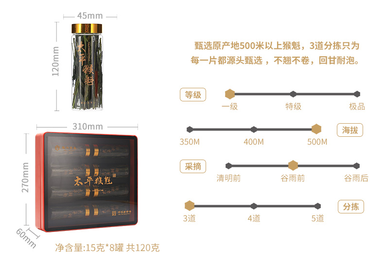 2025新茶上市徽六手工一级太平猴魁绿茶茶叶徽小六礼盒120g节日送礼