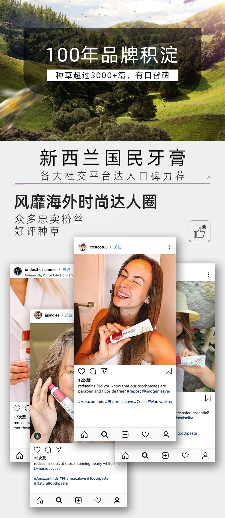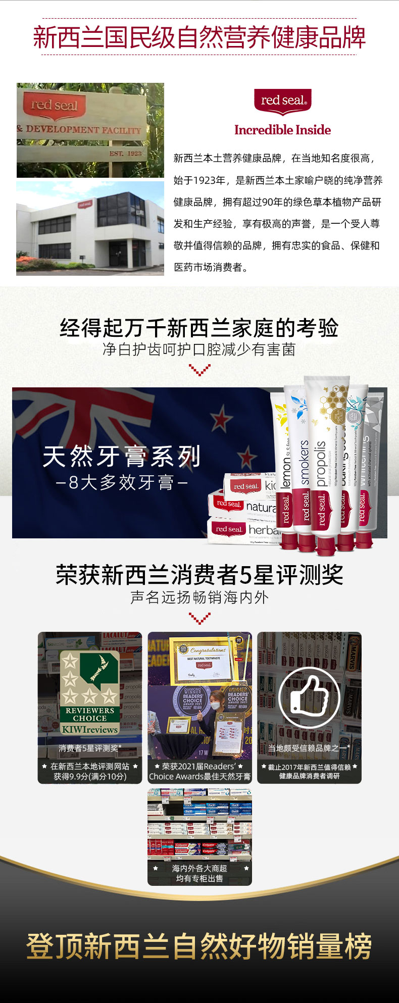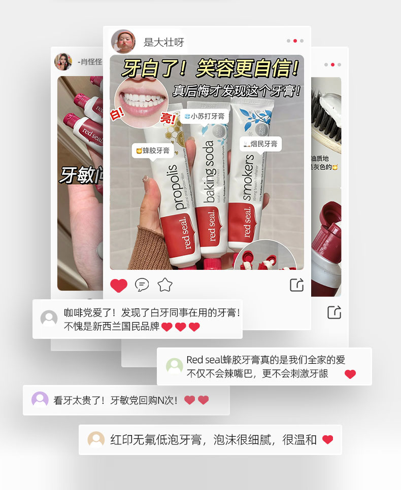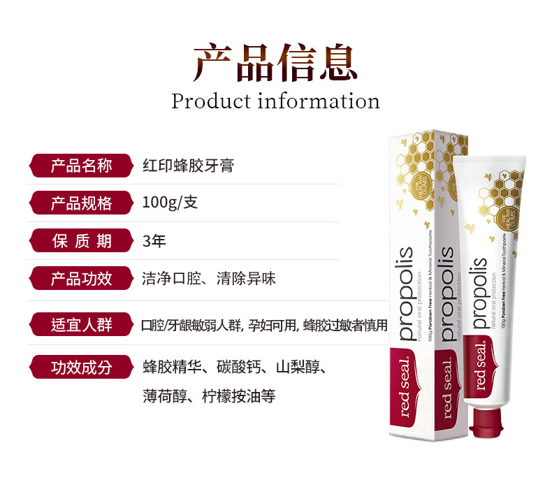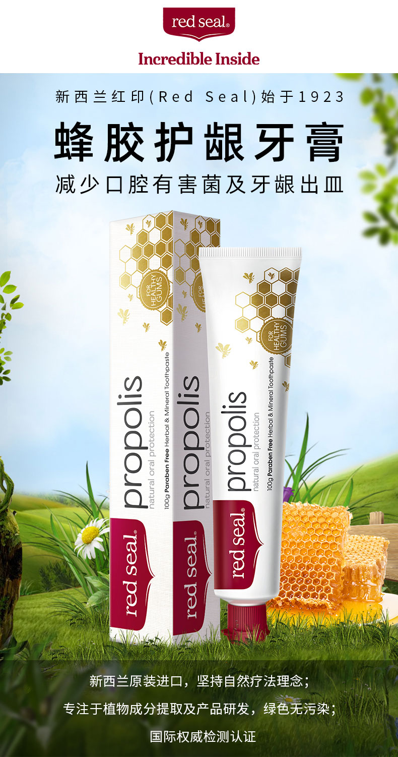 新西兰red sea 红印牙膏 蜂胶味 110g 有贴中标