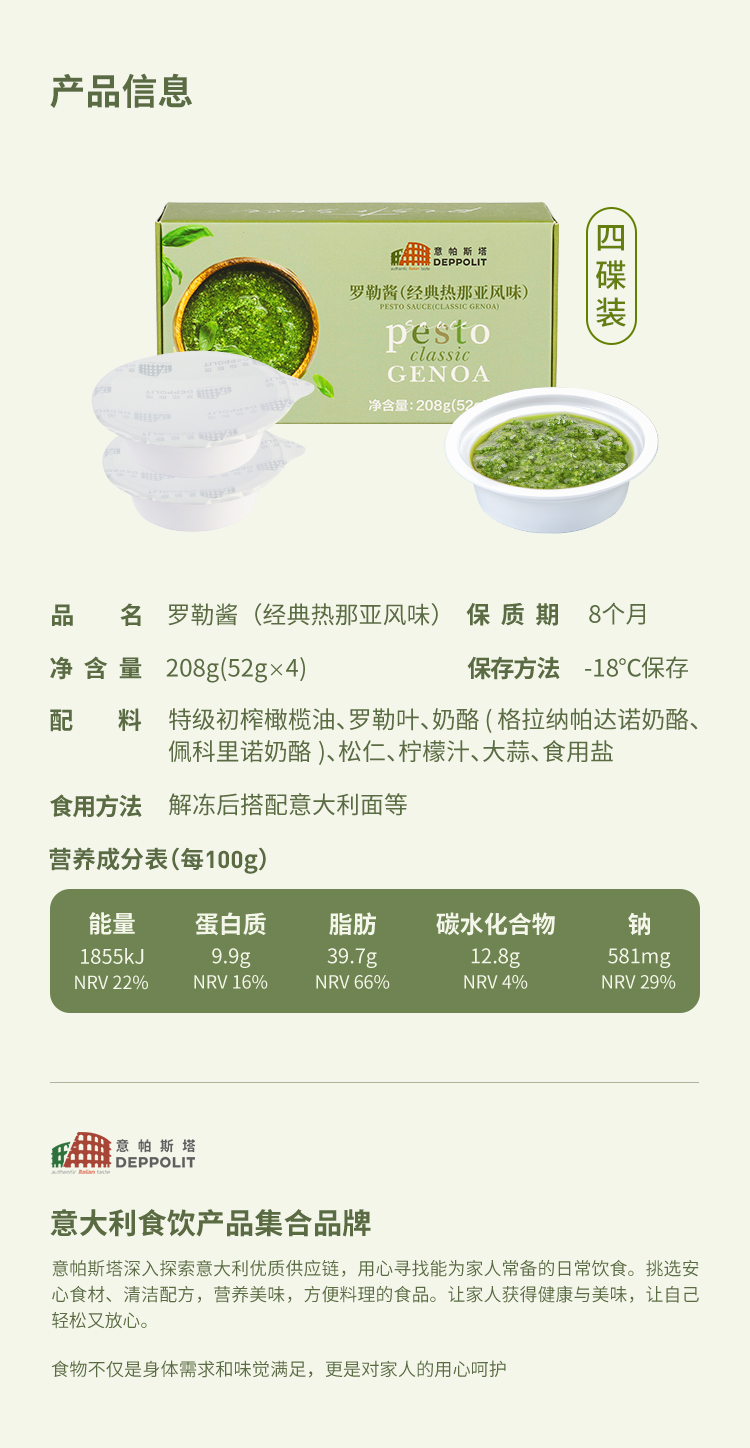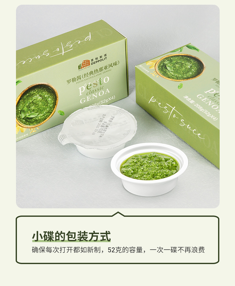 [屁侠推荐] 意帕斯塔 罗勒酱 经典热那亚风味 鲜食口感 需冷冻保存 小碟包装 52g*4碟/盒
