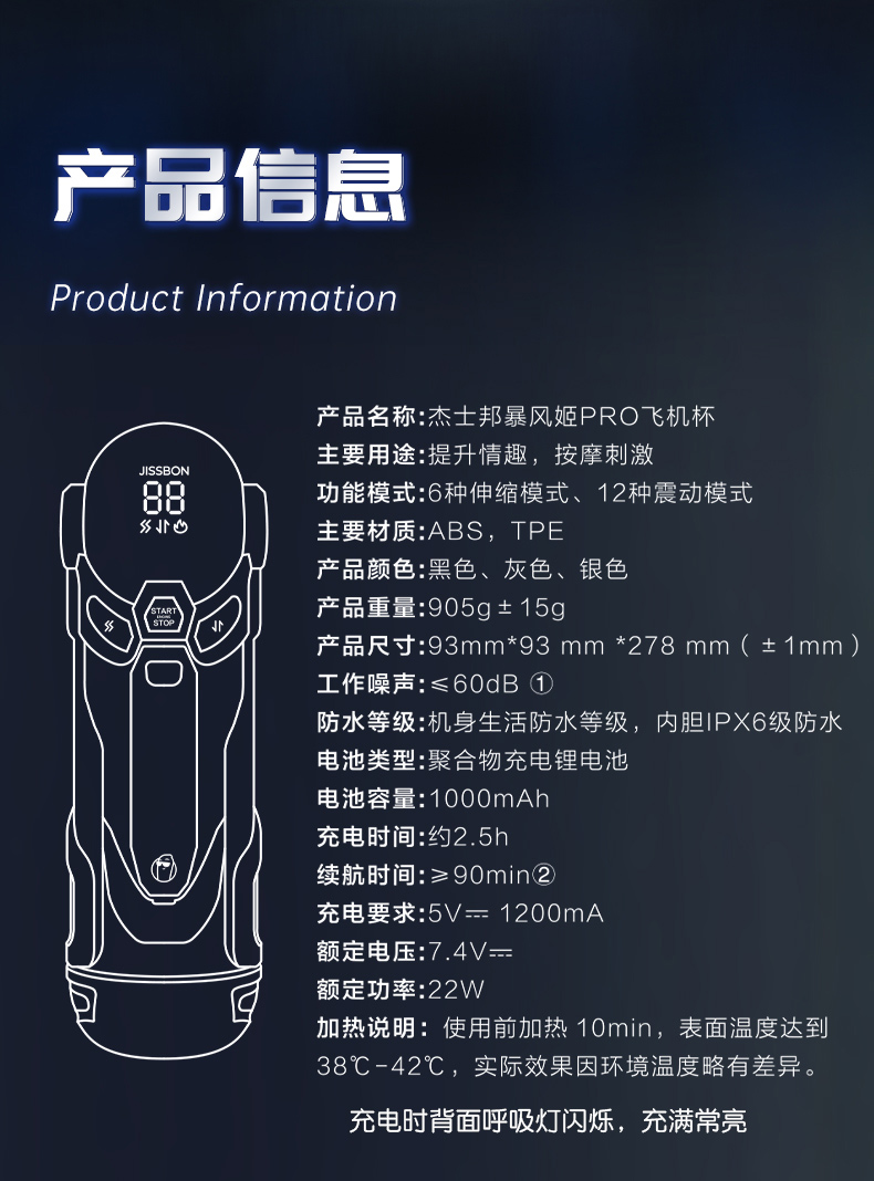 杰士邦暴风姬pro全自动伸缩爆吸加温飞机杯