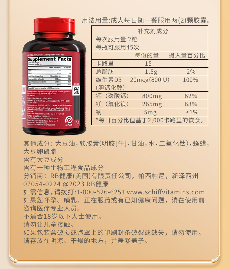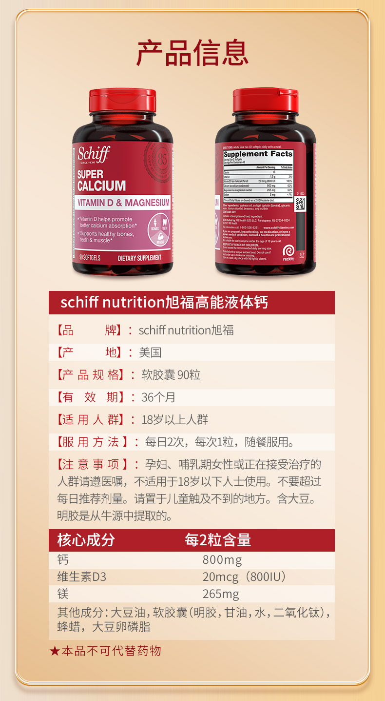 美国进口Schiff nutrition高能液体钙 吸收钙利用钙