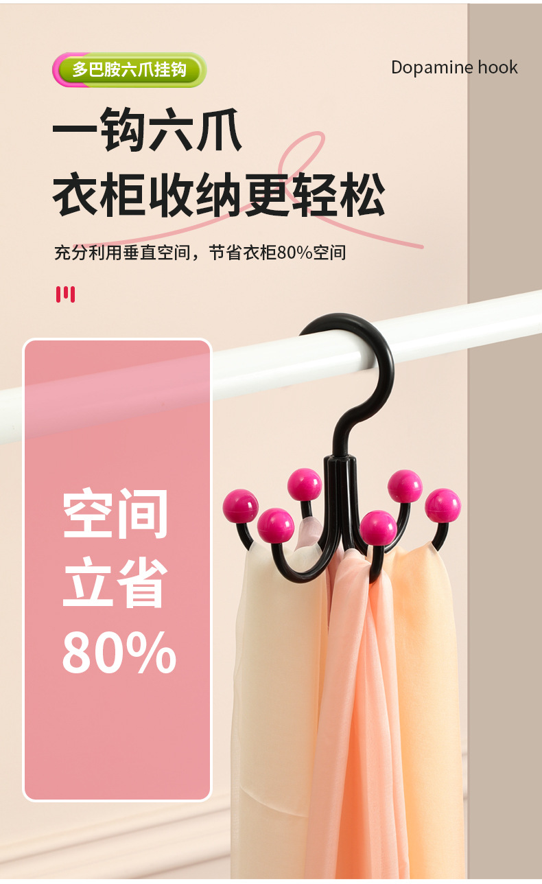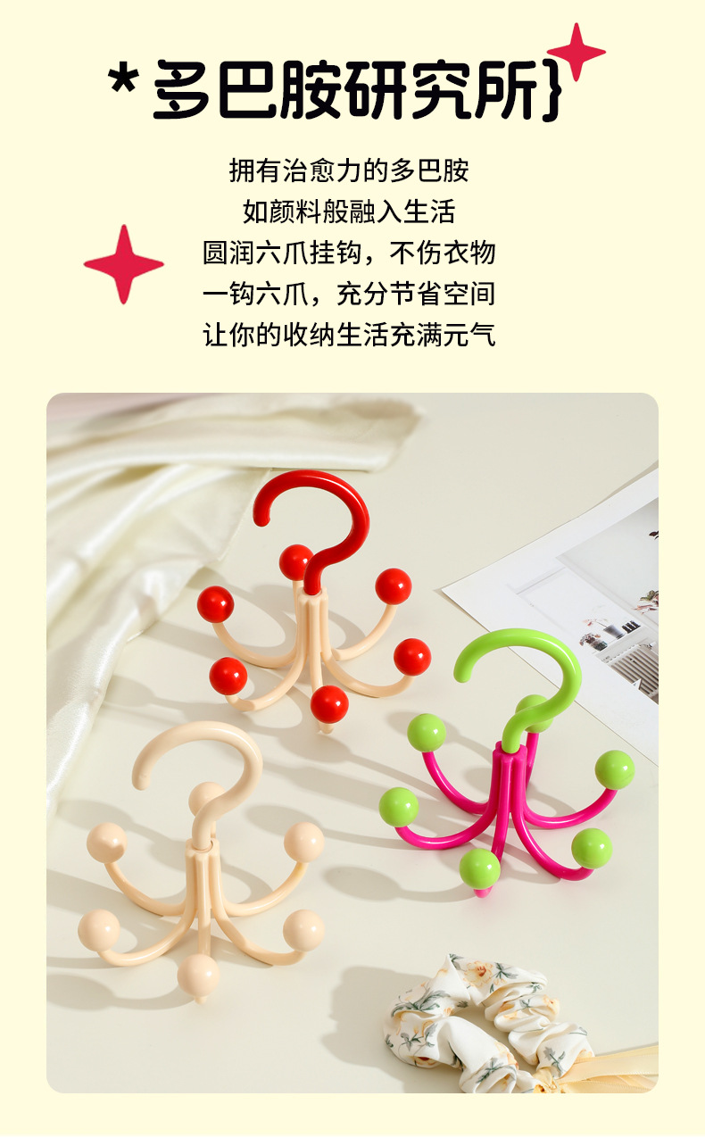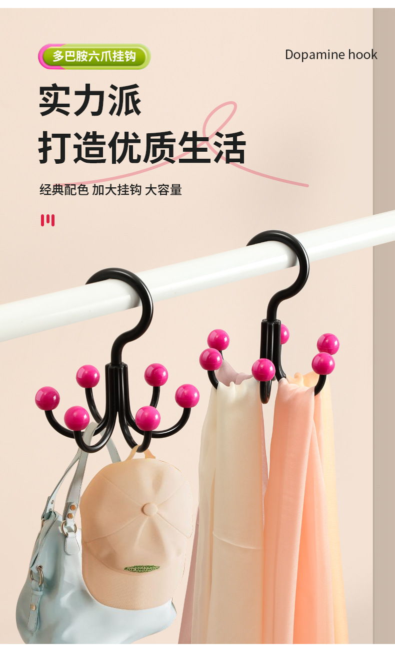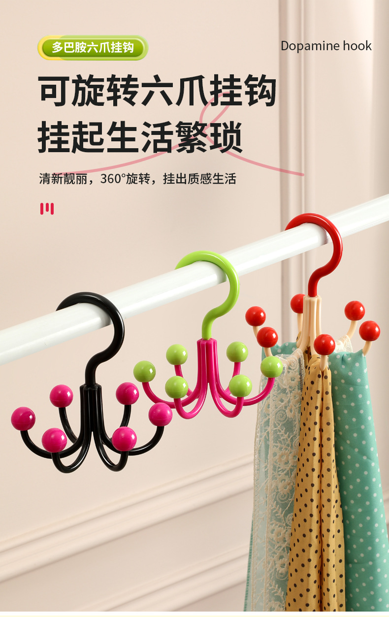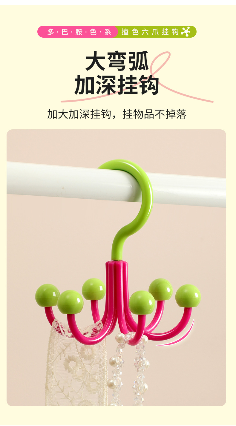 【9.9抢3个❗多巴胺六爪挂钩】创意钩360度旋转,大弯弧加深挂钩,衣物配饰晾晒收纳,承重实力派 ,多功能家用挂衣服包架衣帽挂钩宿舍QQ