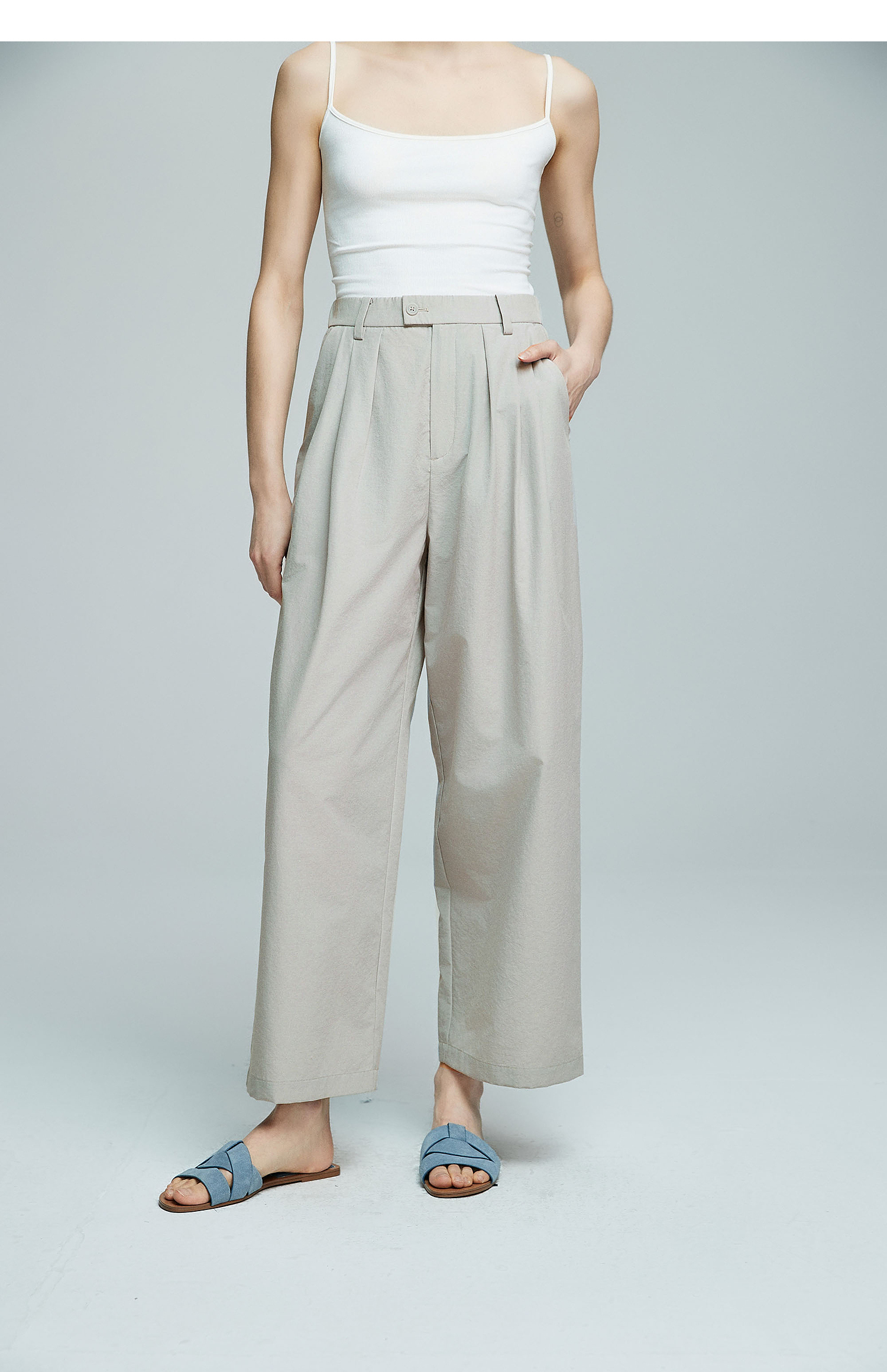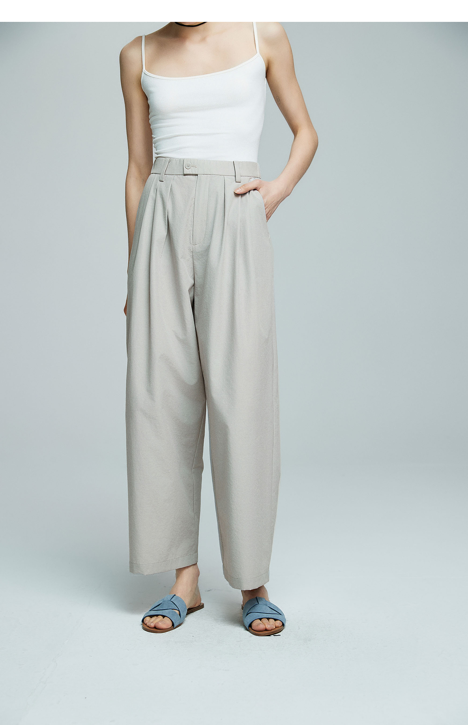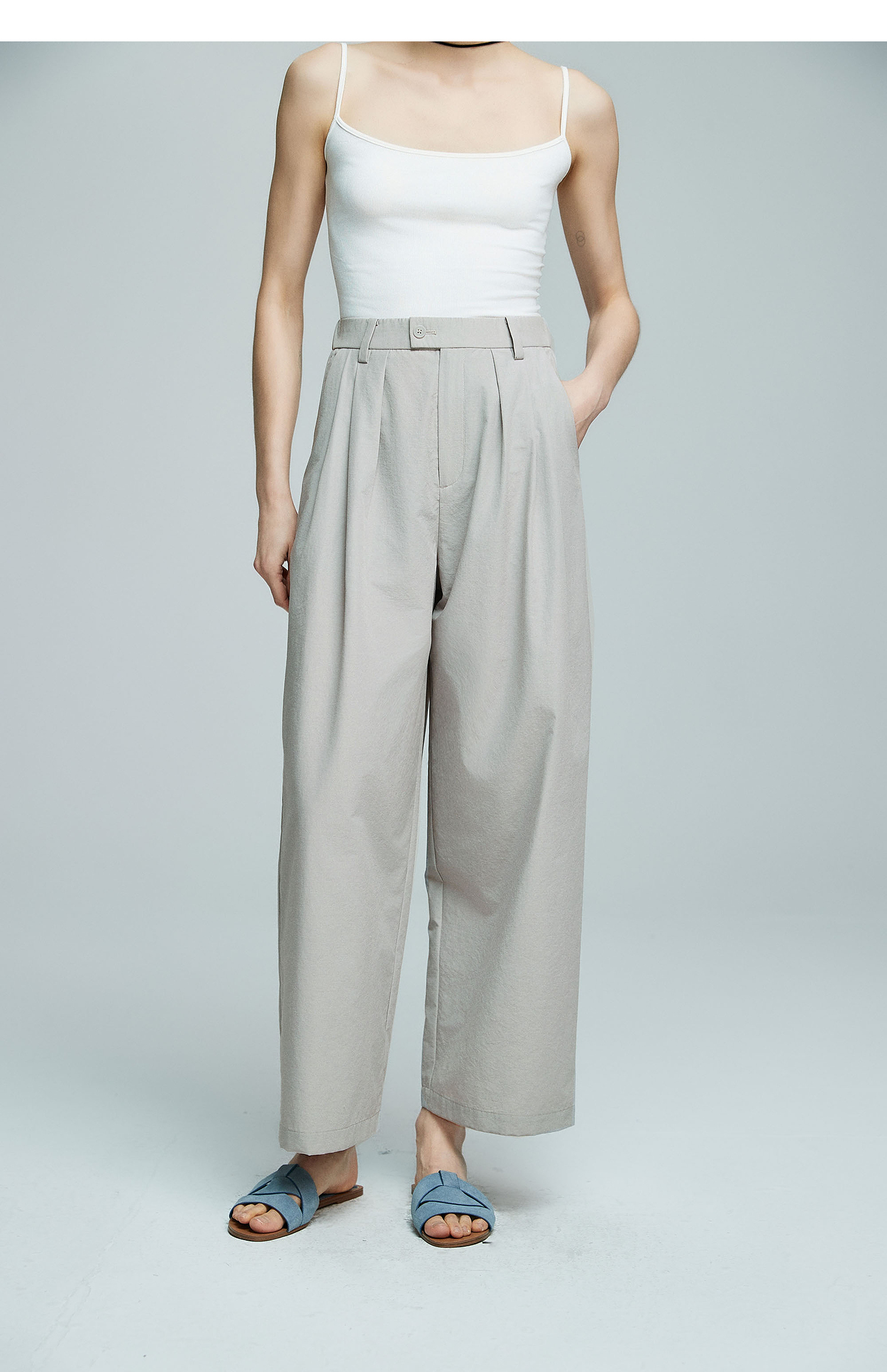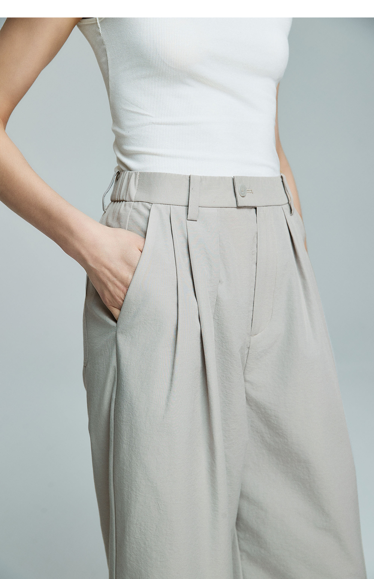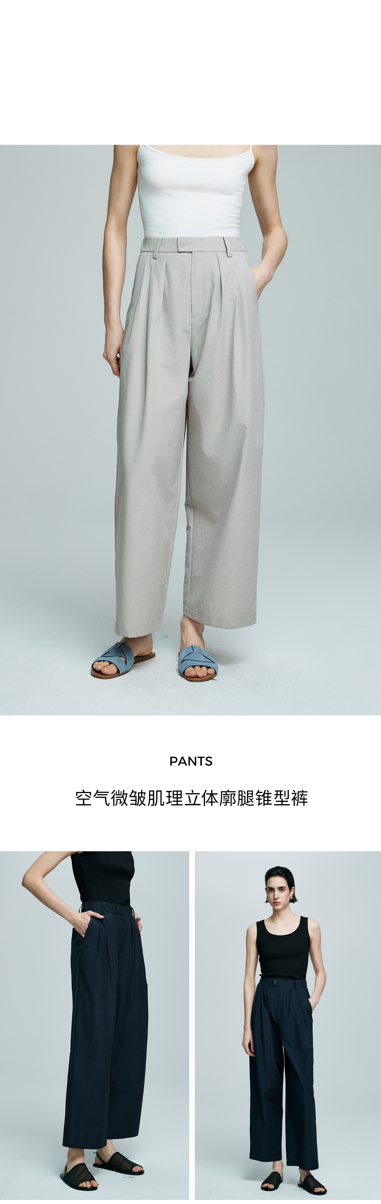 棉仓363618007初棉空气微皱肌理松弛立体廓形锥阔腿