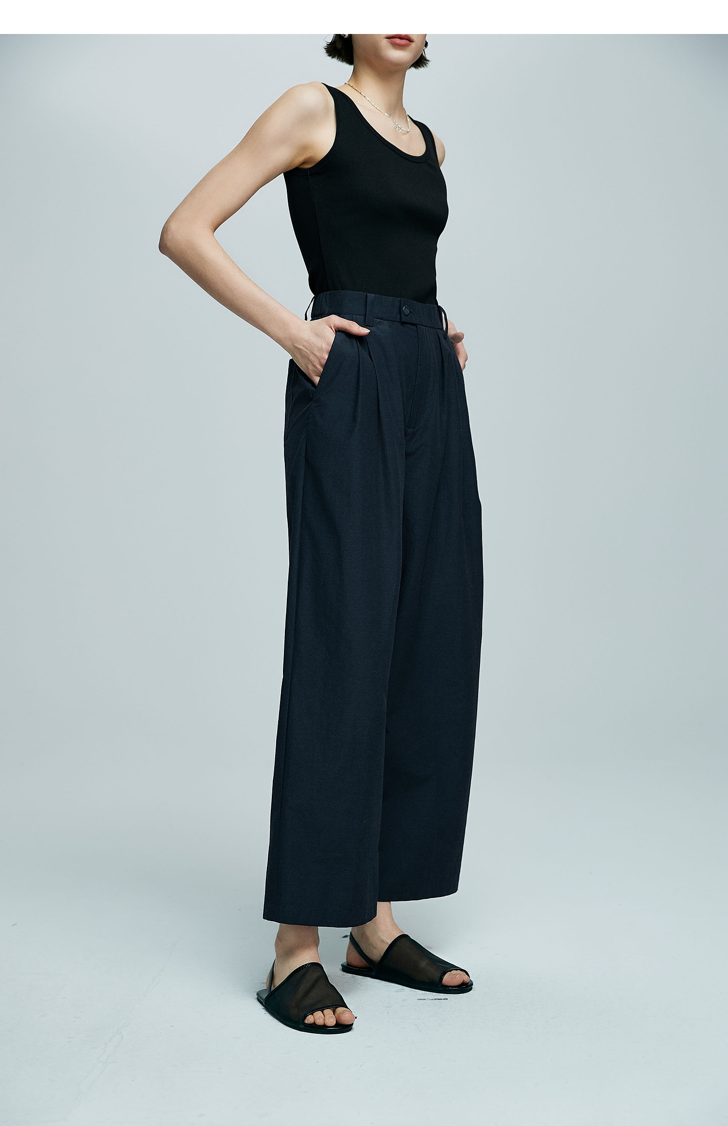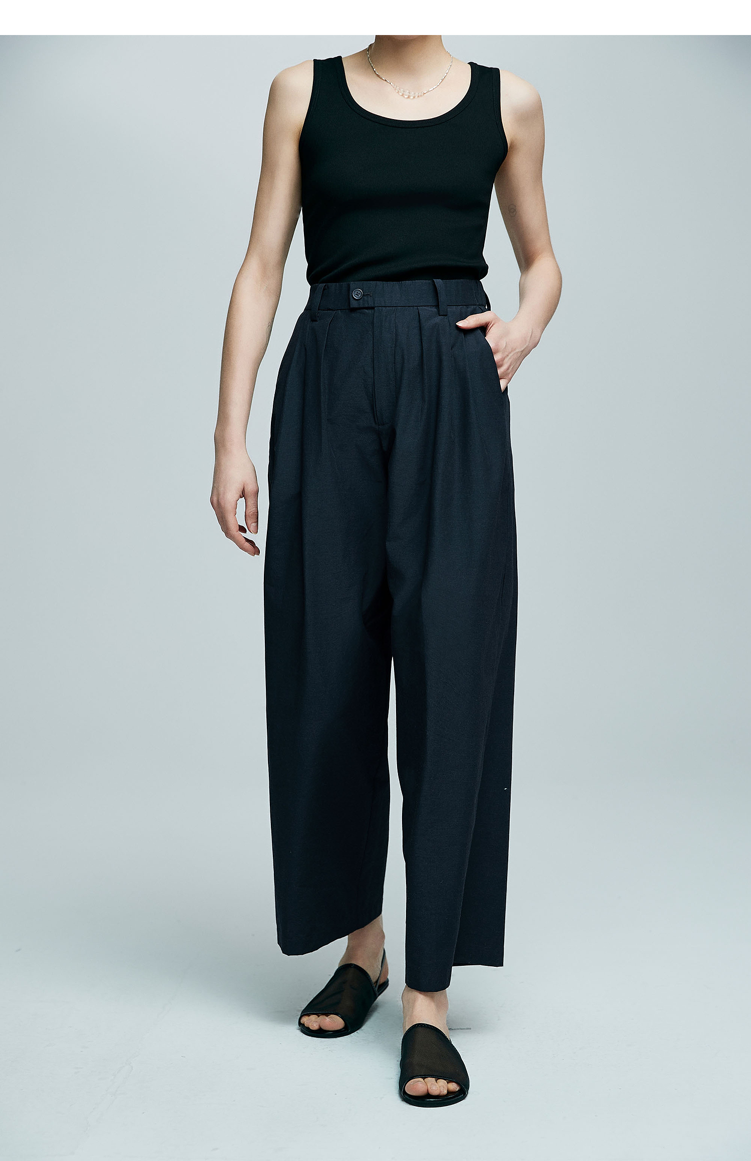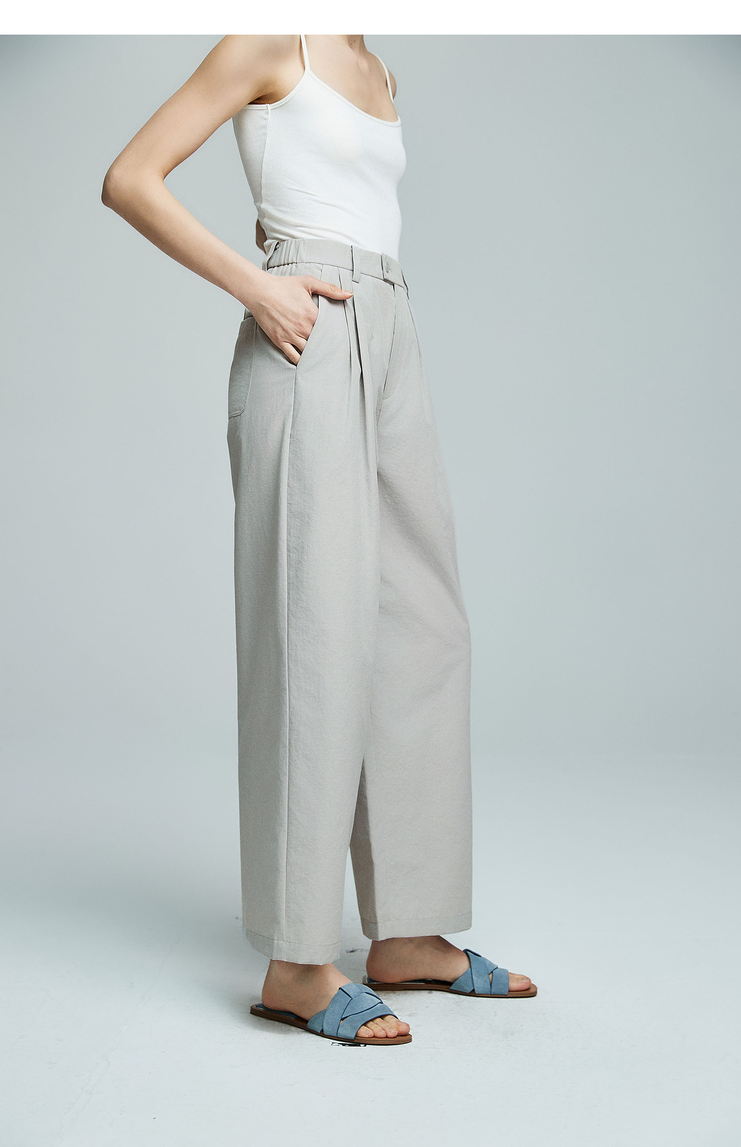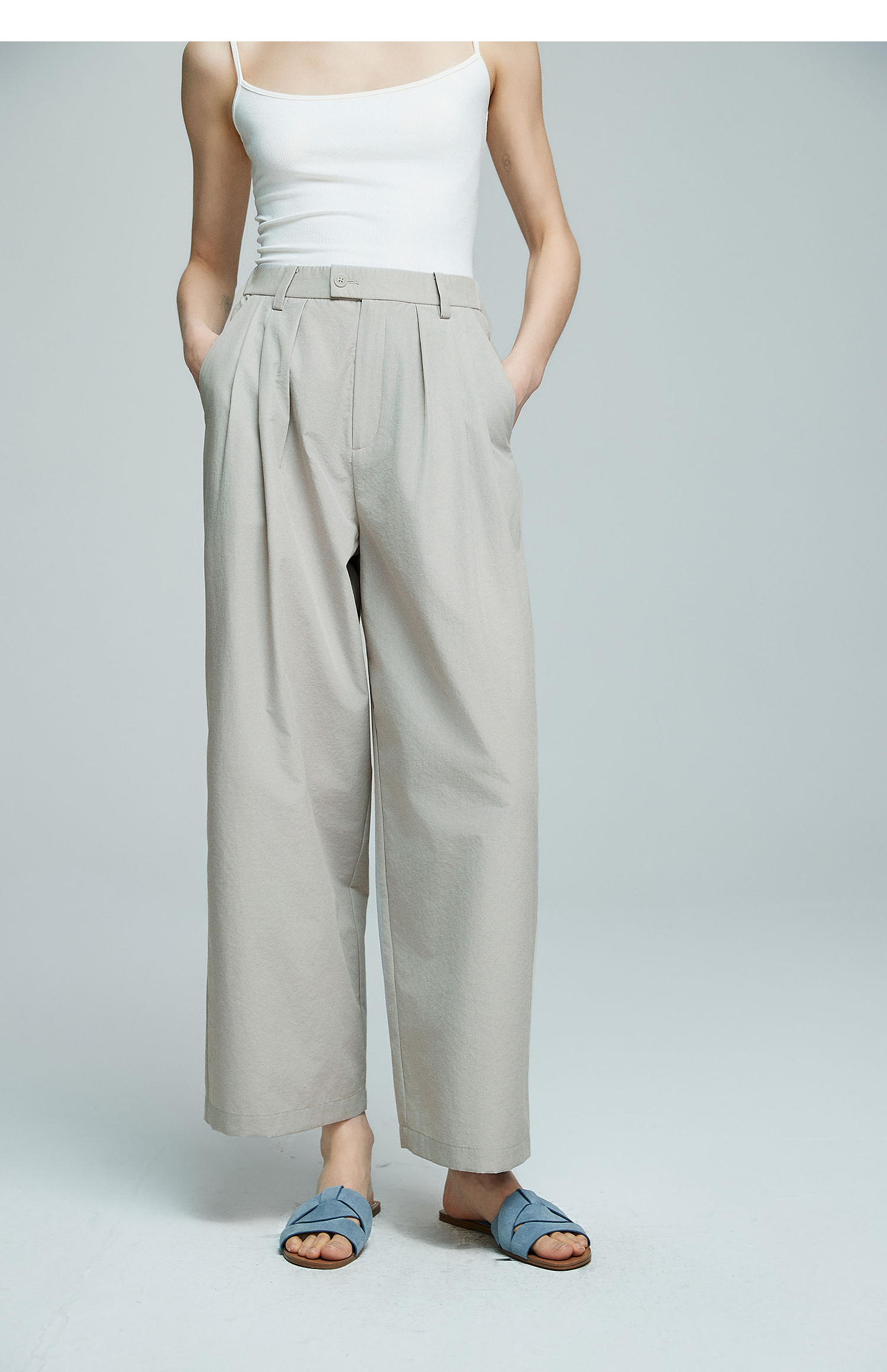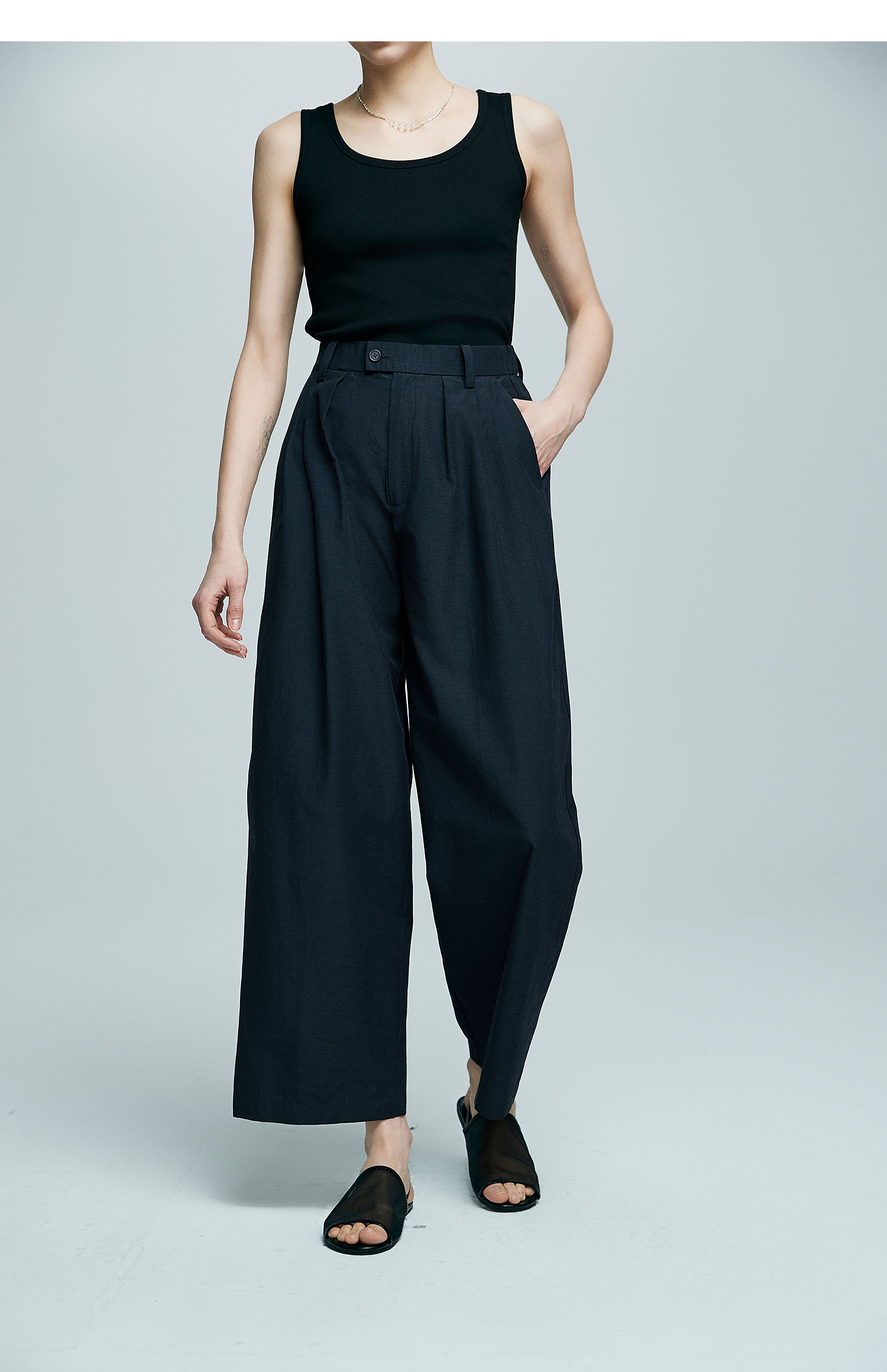 棉仓363618007初棉空气微皱肌理松弛立体廓形锥阔腿