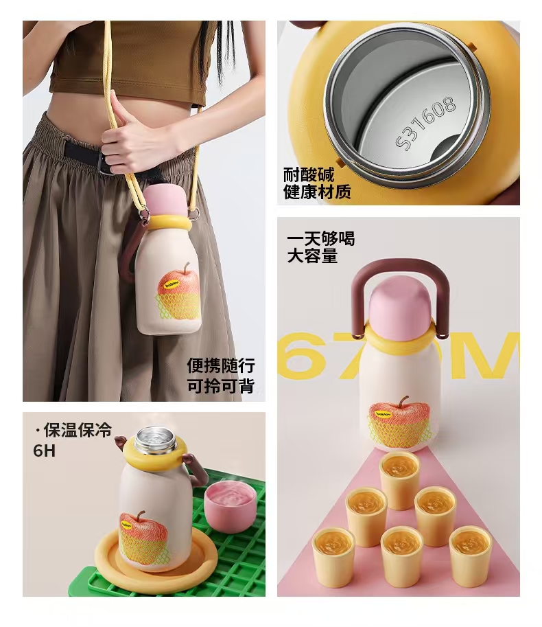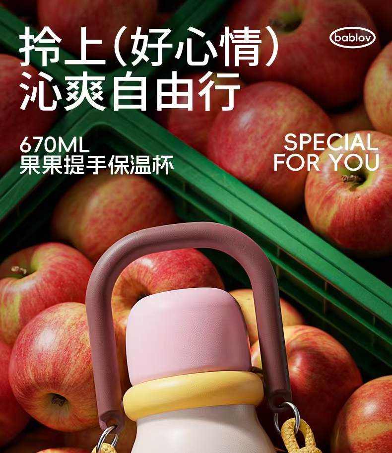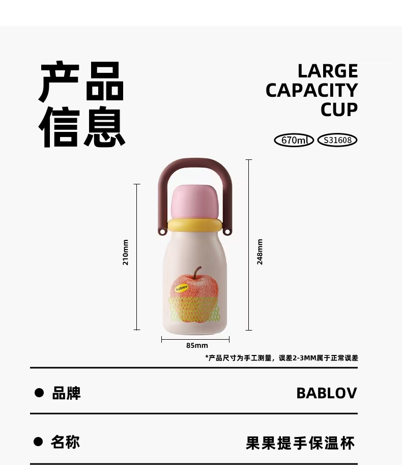 4楼Eubelle欧蓓 Bablov果果提手保温杯670ml 外出便携 吸管杯 吊牌价:119元 活动价:109元