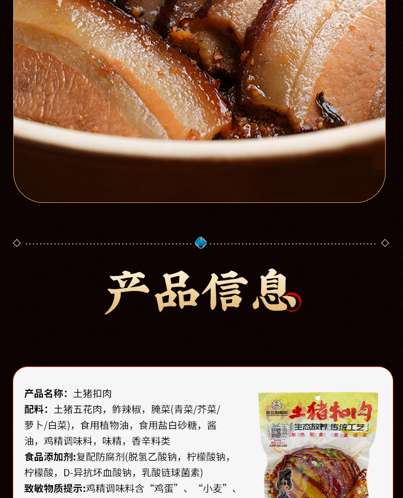 【宜昌助农馆】晓姚农夫 土家扣肉402g 肥而不腻 土家黑猪肉
