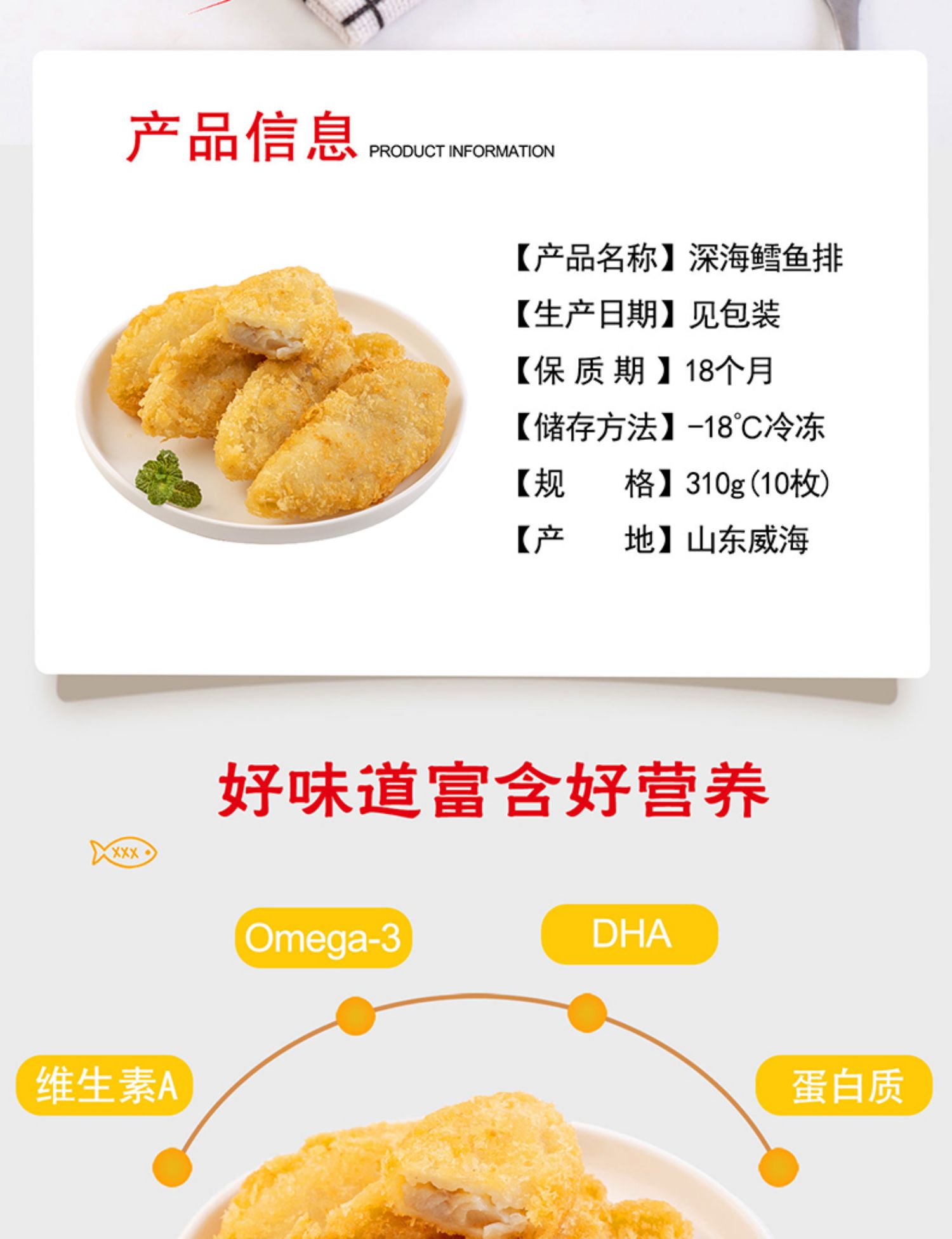 【深海鳕鱼排】4盒*310g盒装(10枚)