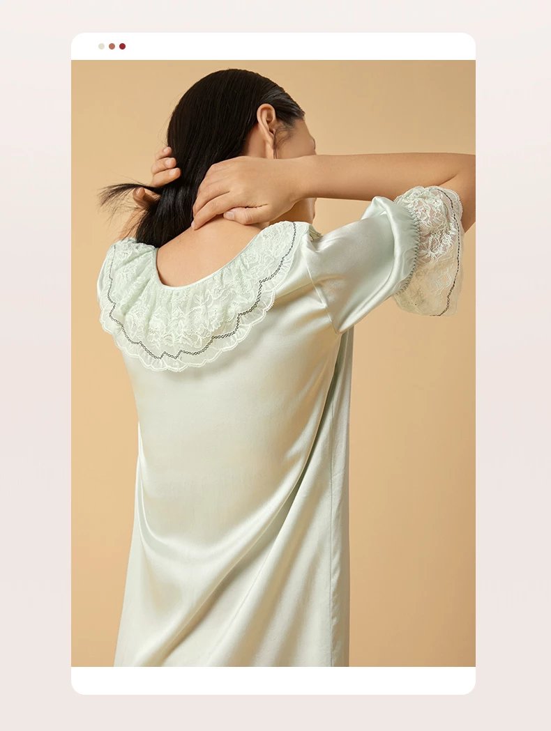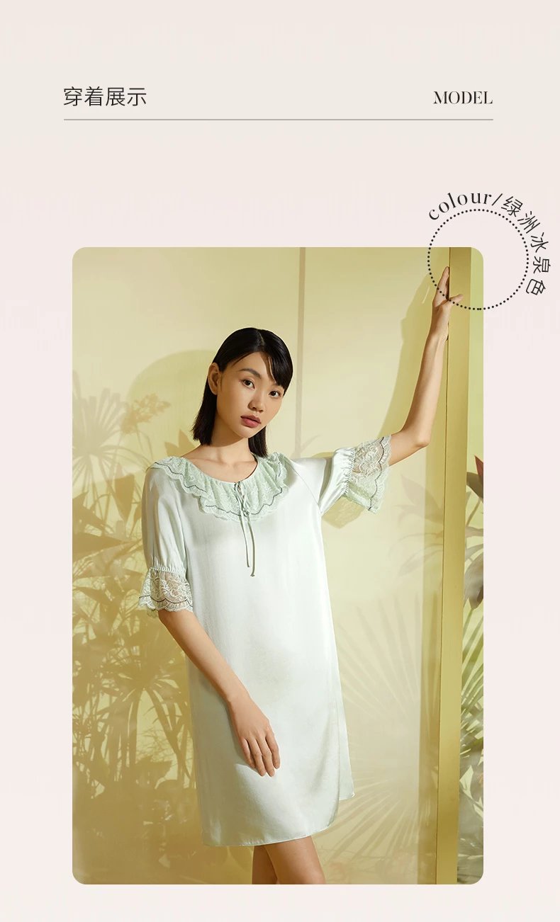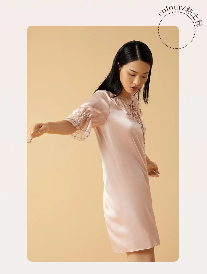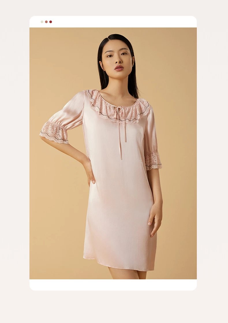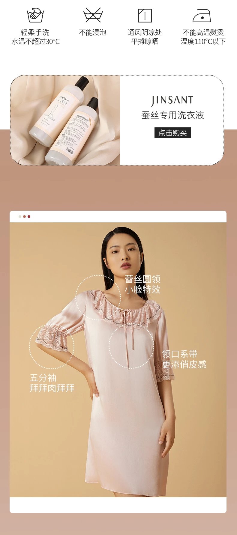 金三塔100%桑蚕丝真丝蕾丝拼接时尚甜美家居服女士睡裙2022新品 YSFCA312