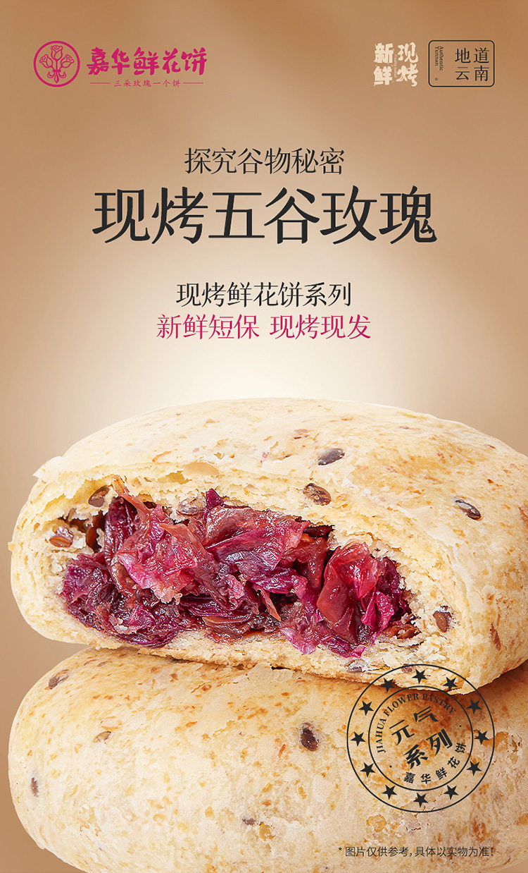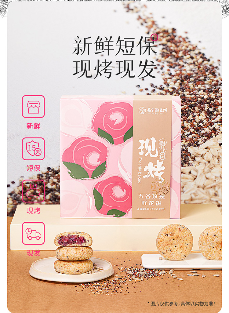 【嘉华 现烤五谷玫瑰鲜花饼 8枚盒装400g