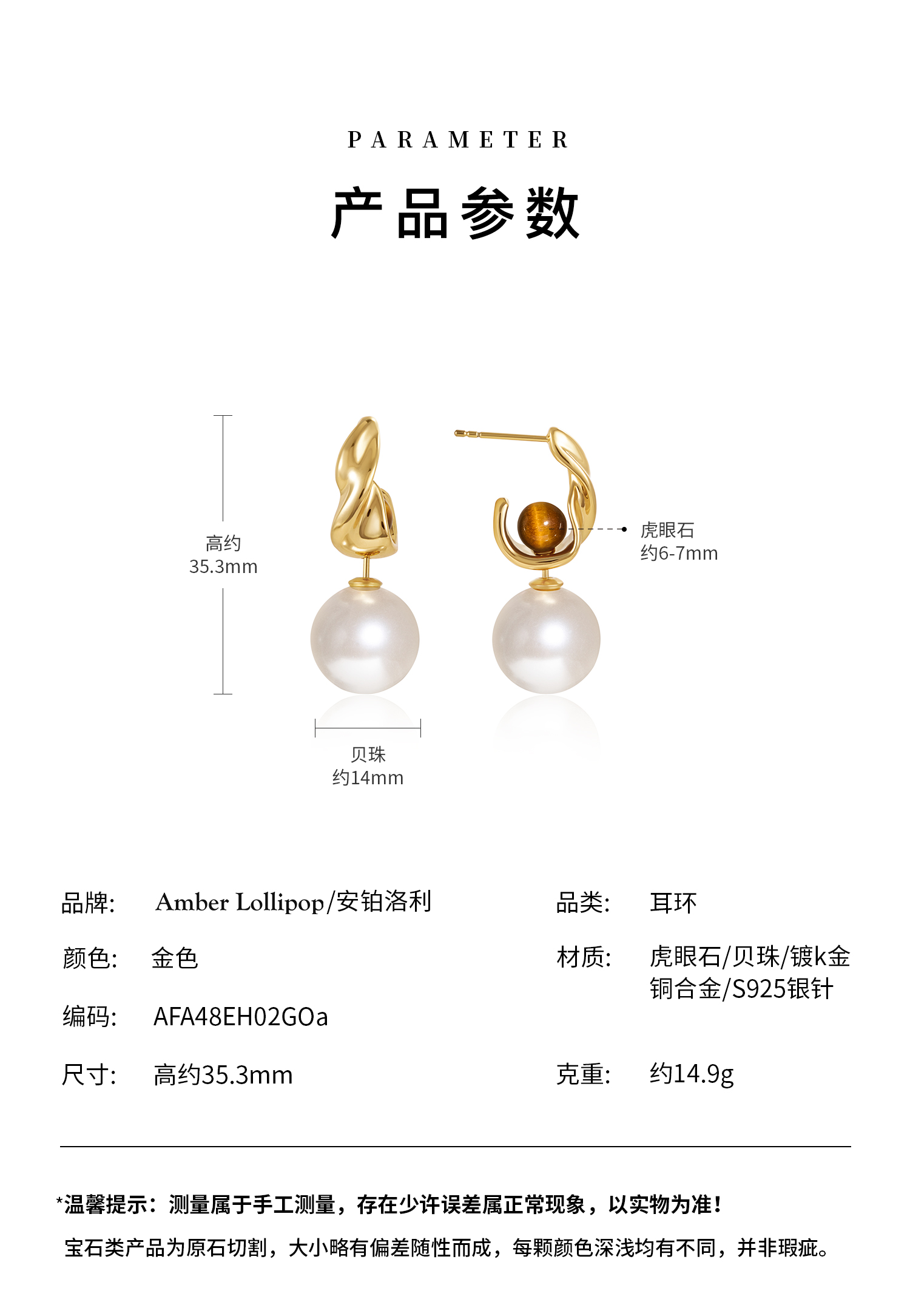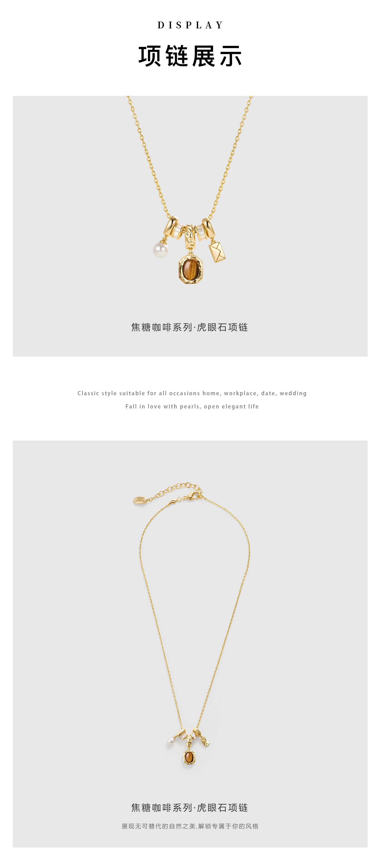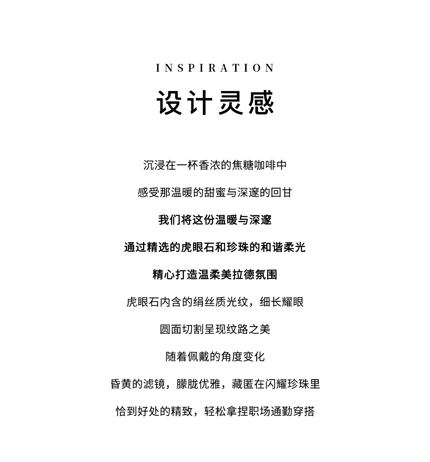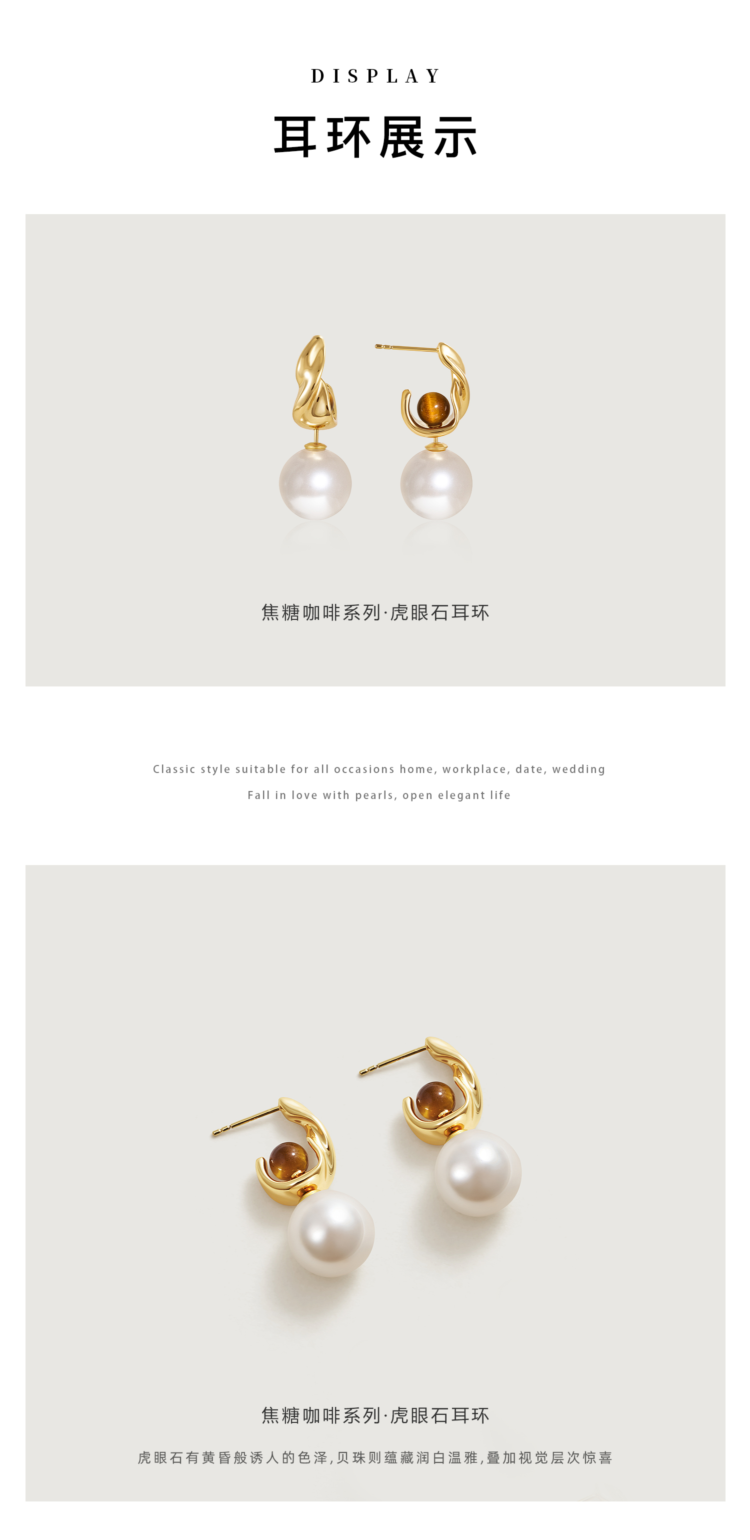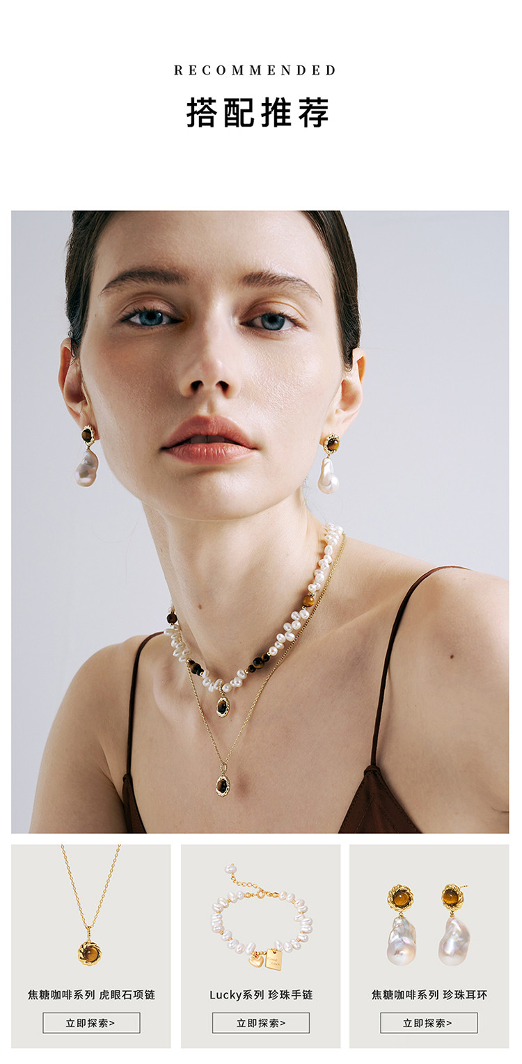 “明星同款 圣诞节礼物”安铂洛利 焦糖咖啡系列 蛇形虎眼石开口戒指/虎眼石贝珠耳钉/珍珠吊坠项链