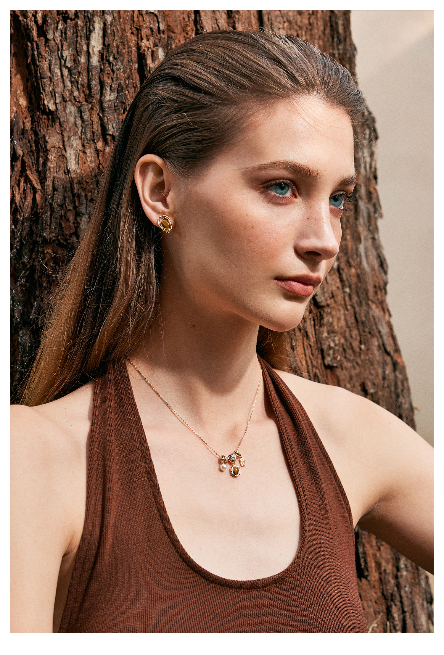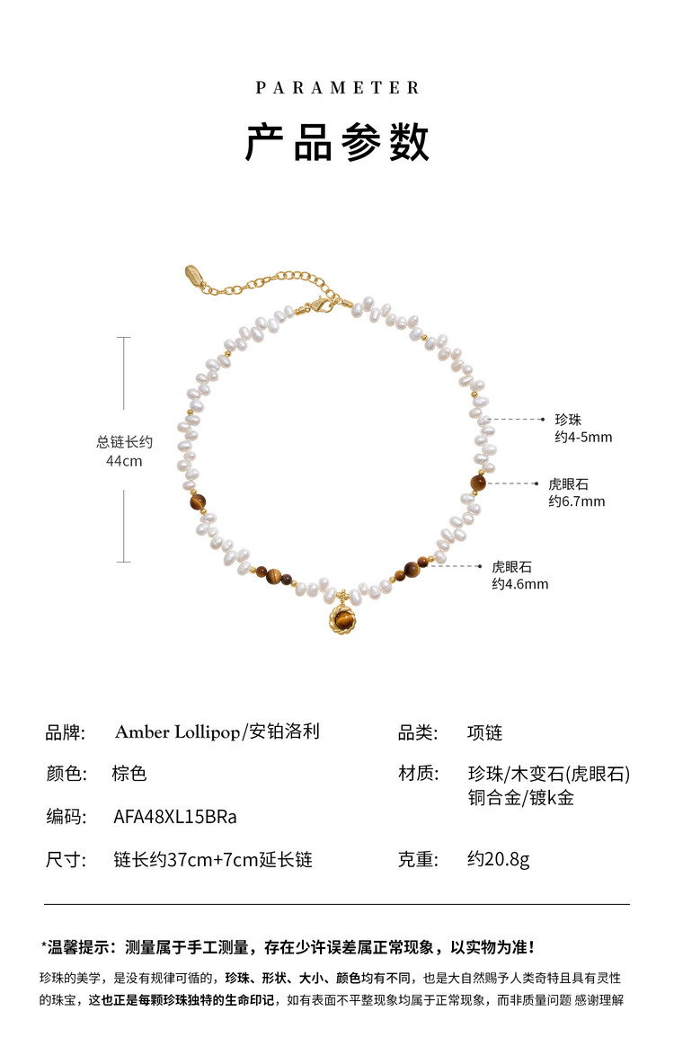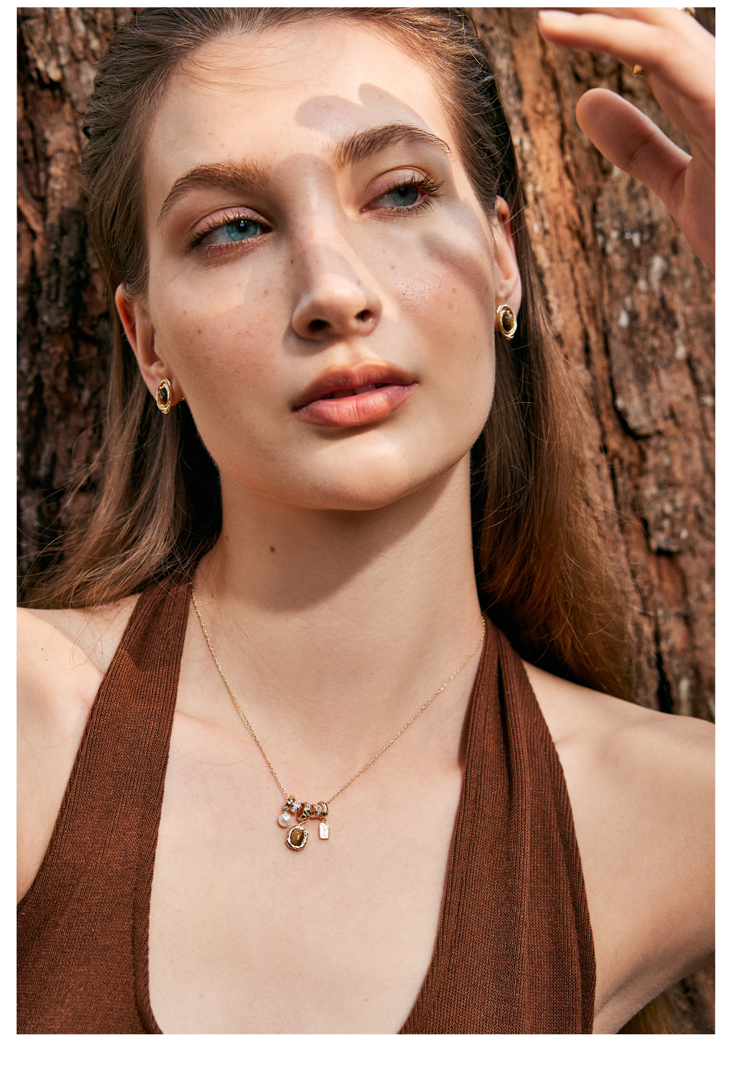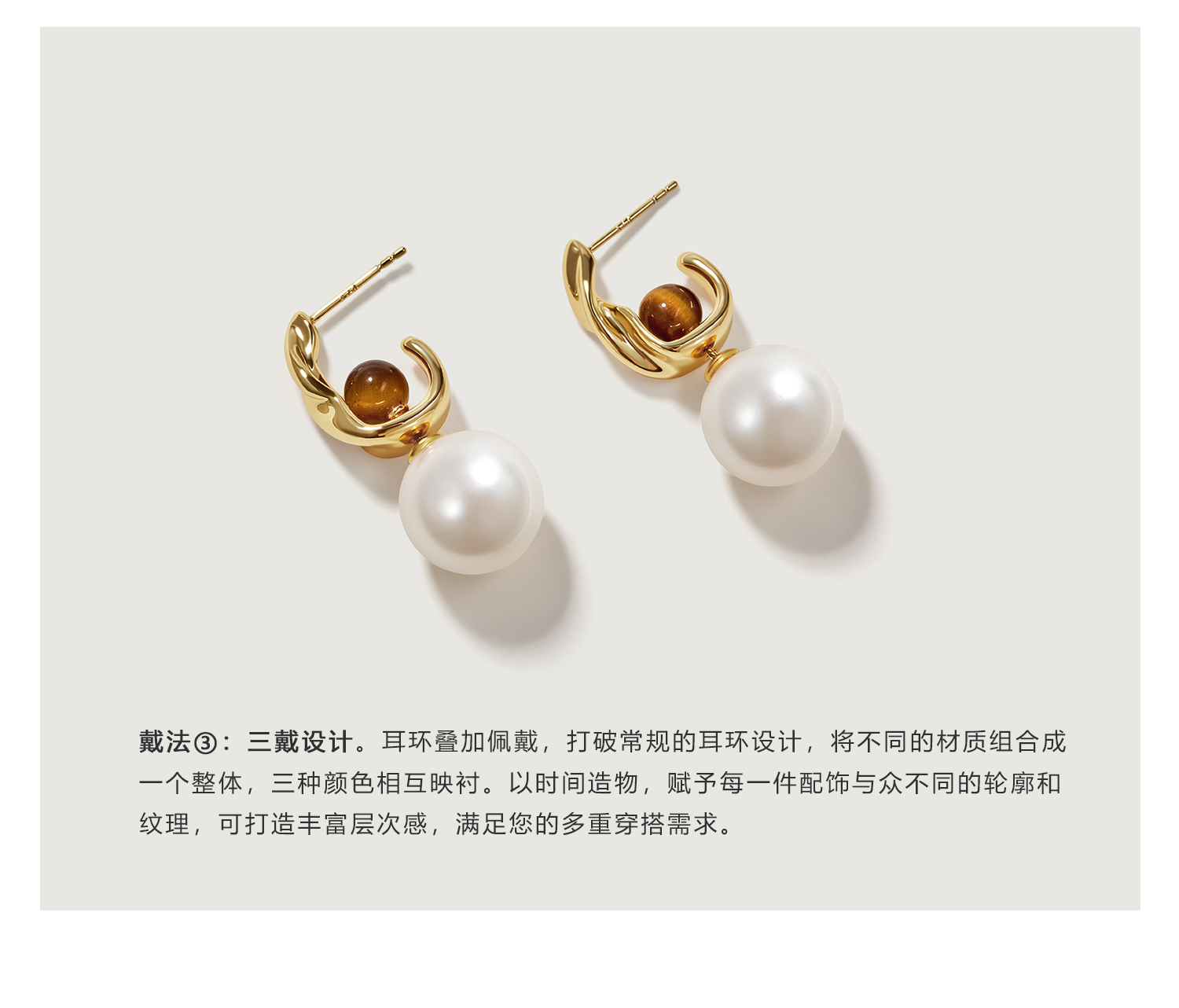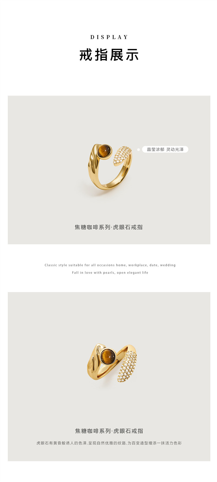 “明星同款 圣诞节礼物”安铂洛利 焦糖咖啡系列 蛇形虎眼石开口戒指/虎眼石贝珠耳钉/珍珠吊坠项链