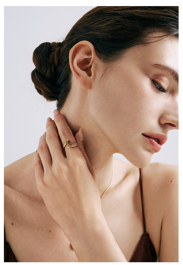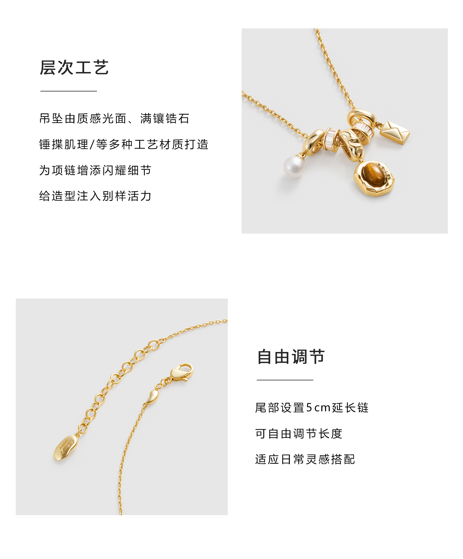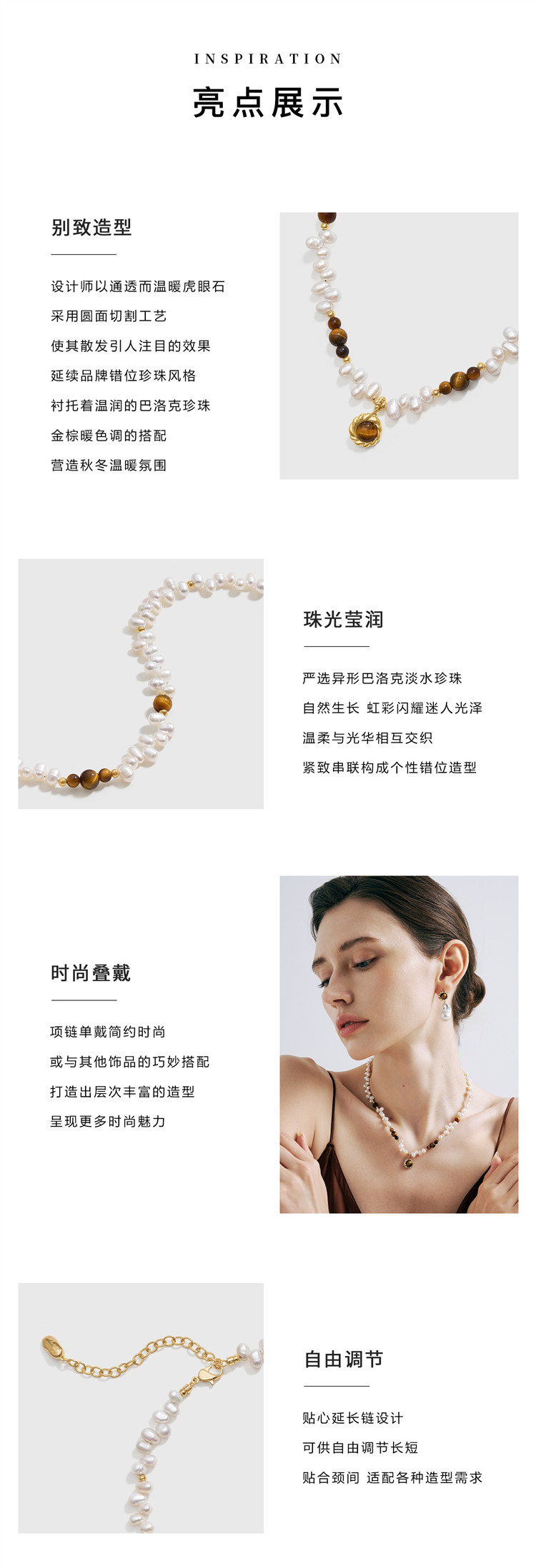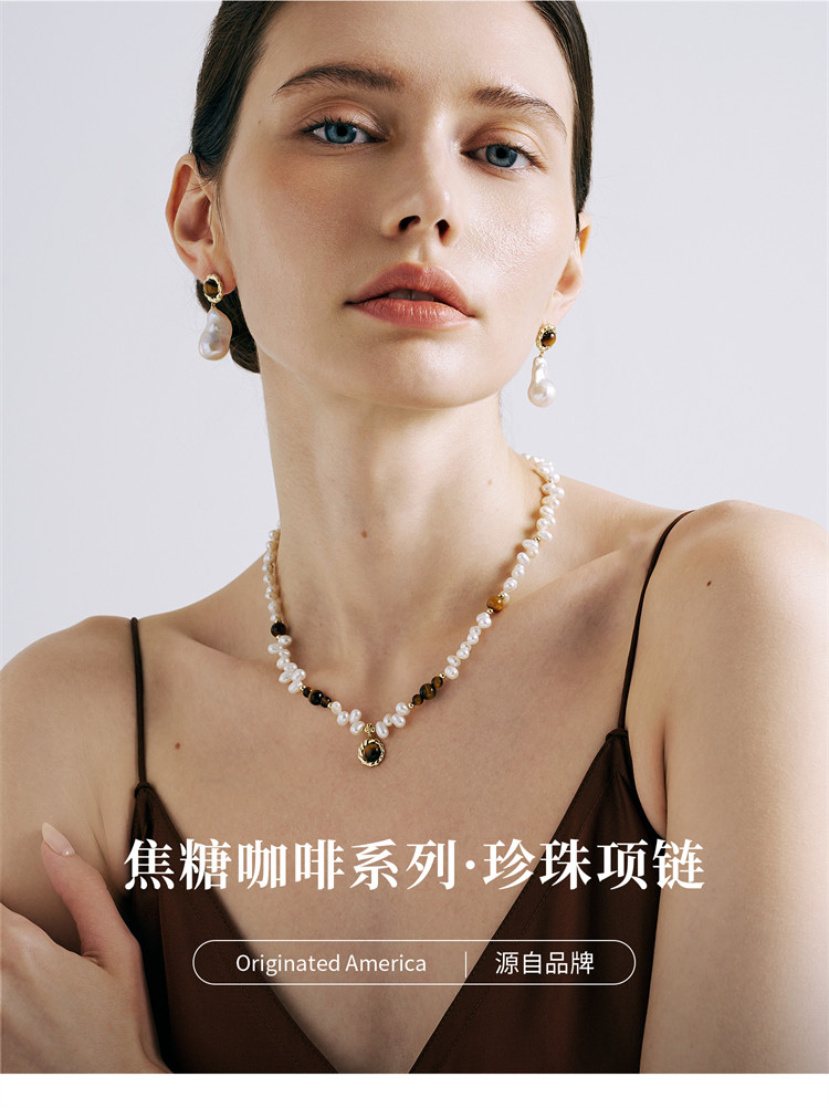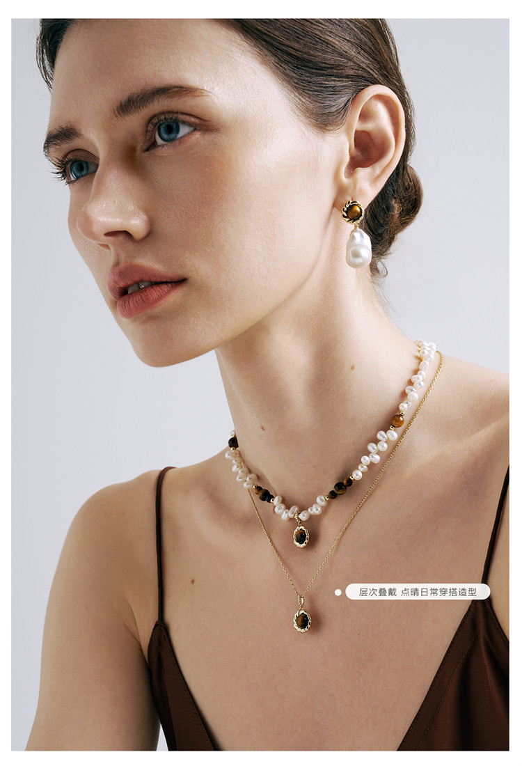 “明星同款 圣诞节礼物”安铂洛利 焦糖咖啡系列 蛇形虎眼石开口戒指/虎眼石贝珠耳钉/珍珠吊坠项链
