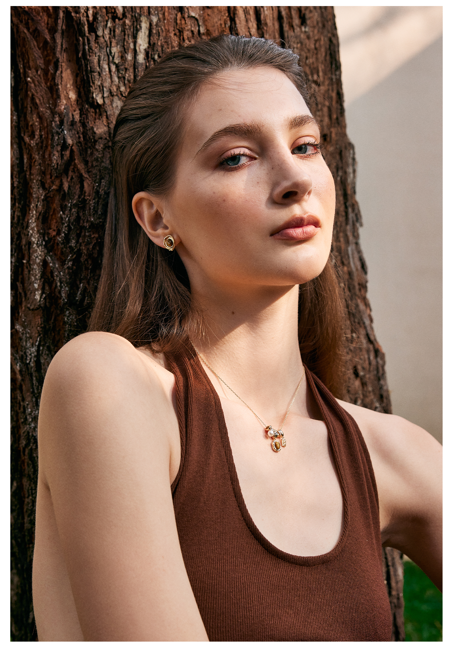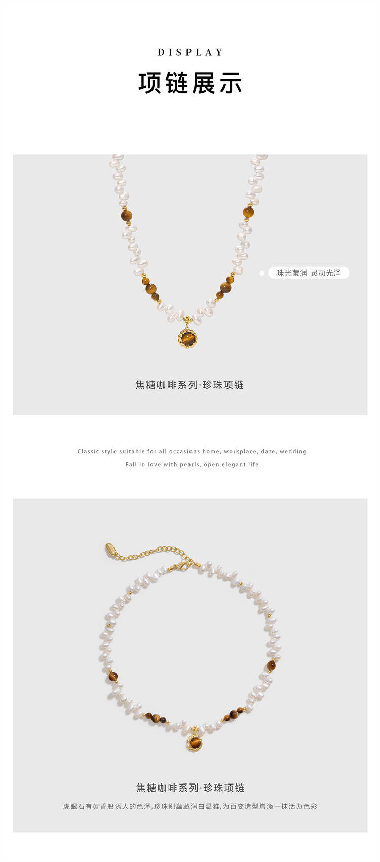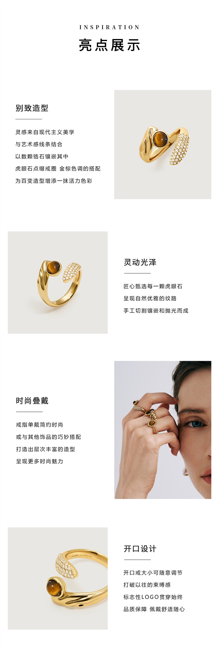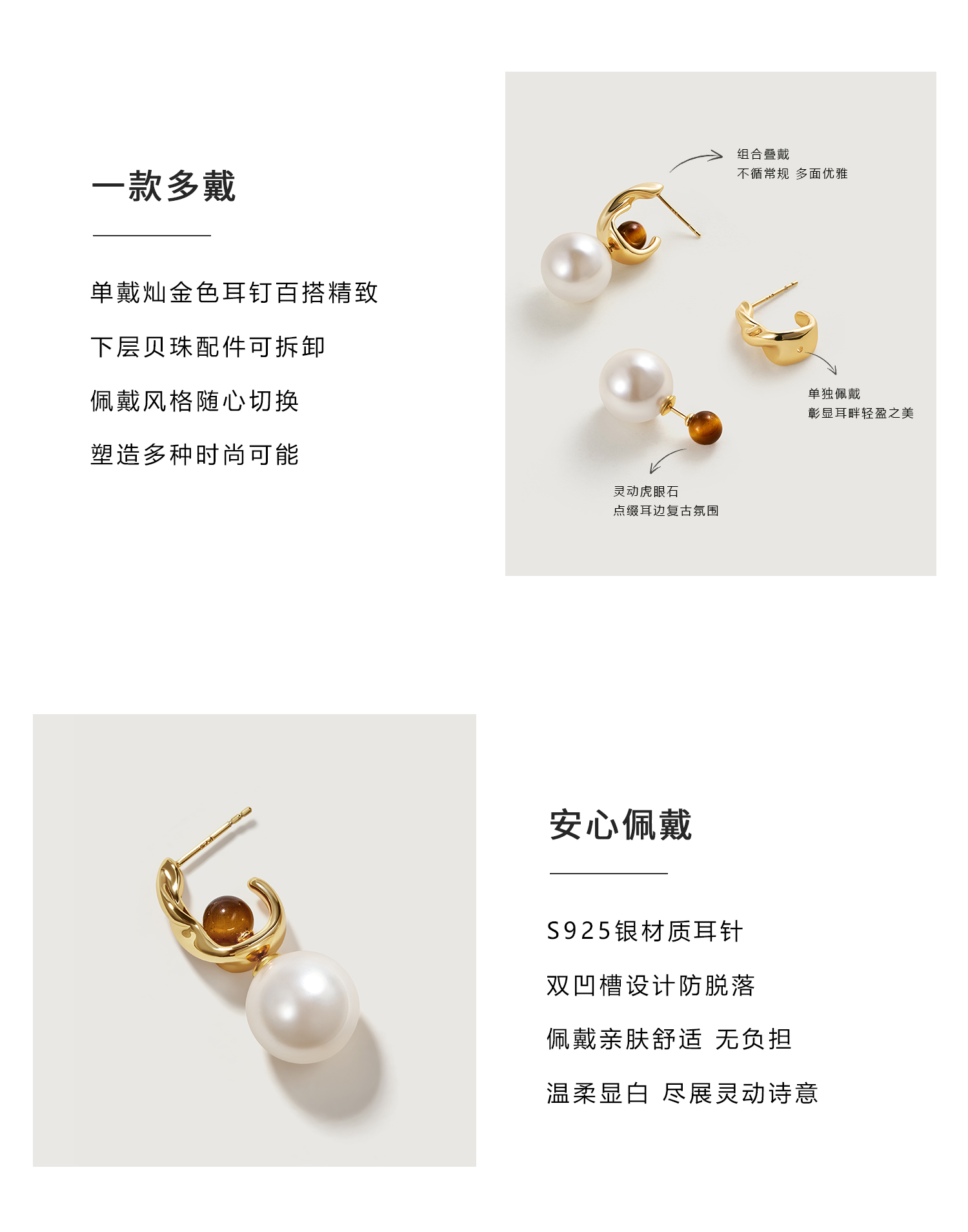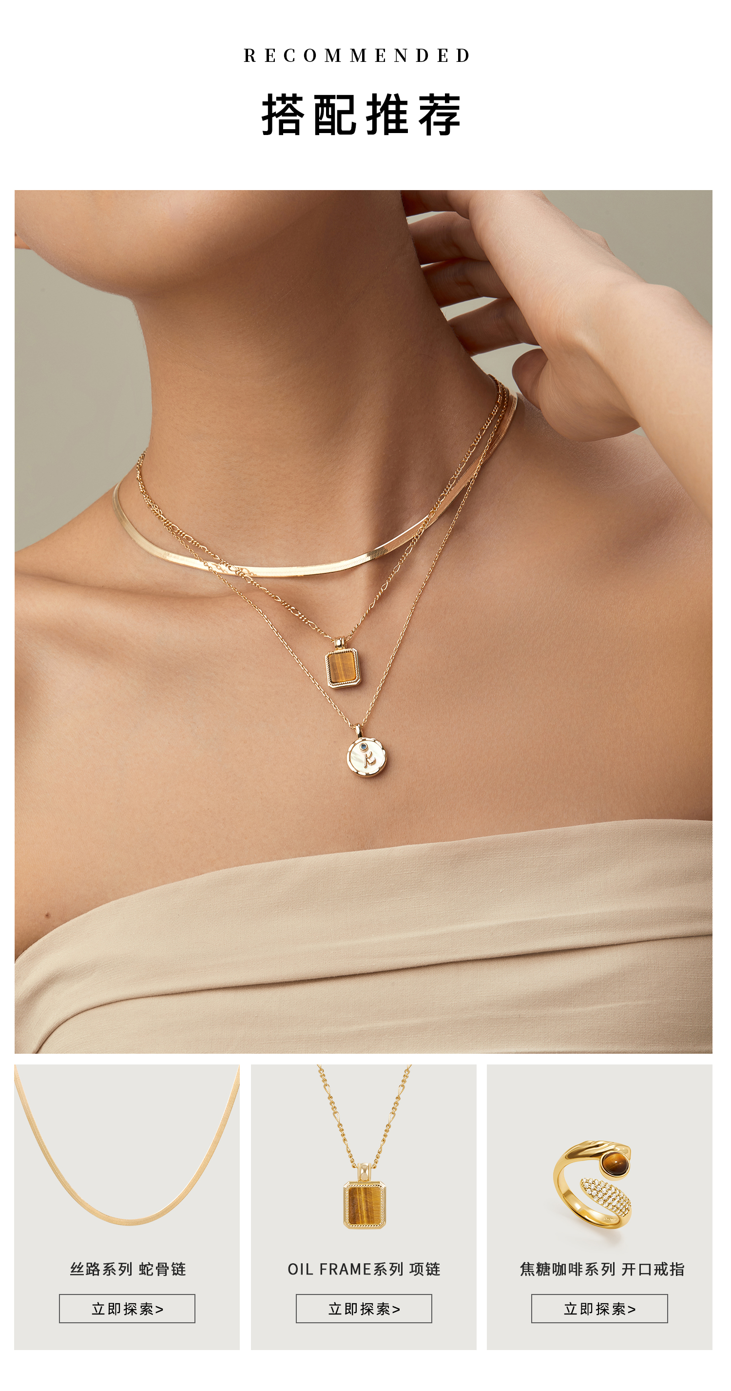 “明星同款 圣诞节礼物”安铂洛利 焦糖咖啡系列 蛇形虎眼石开口戒指/虎眼石贝珠耳钉/珍珠吊坠项链
